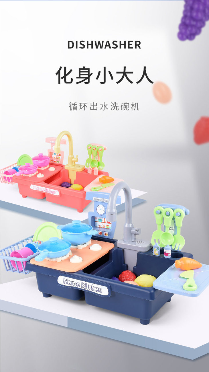 【满满心选商城】【玩具绘本】儿童过家家厨房玩具套装电动洗碗机循环出水男女孩六一儿童节礼物七夕情人节