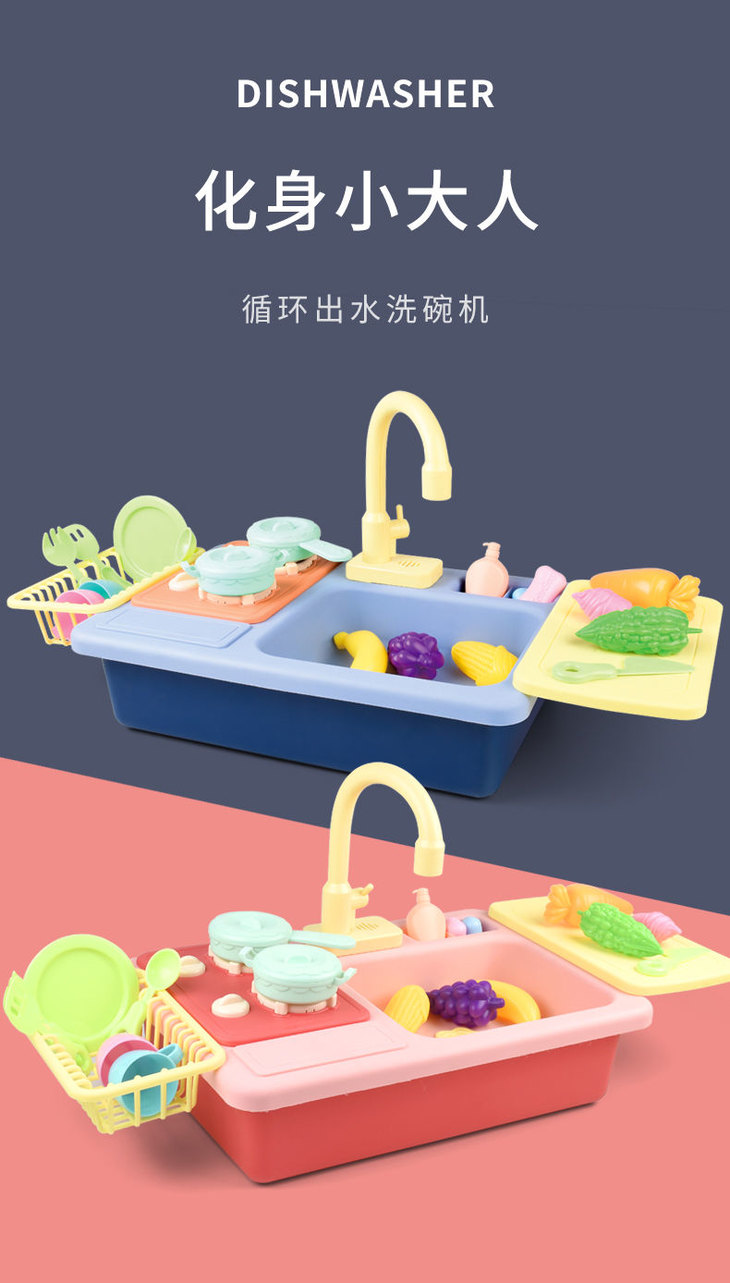 儿童过家家厨房电动洗碗机玩具,电动循环出水,可加温水