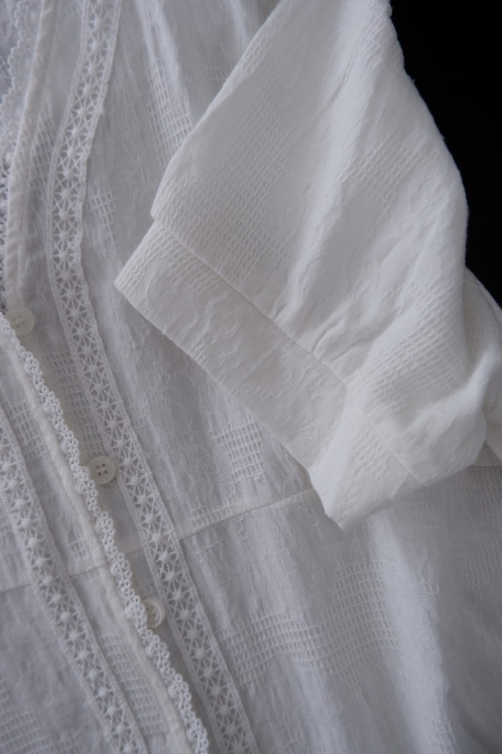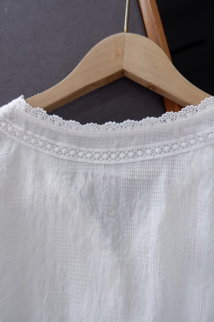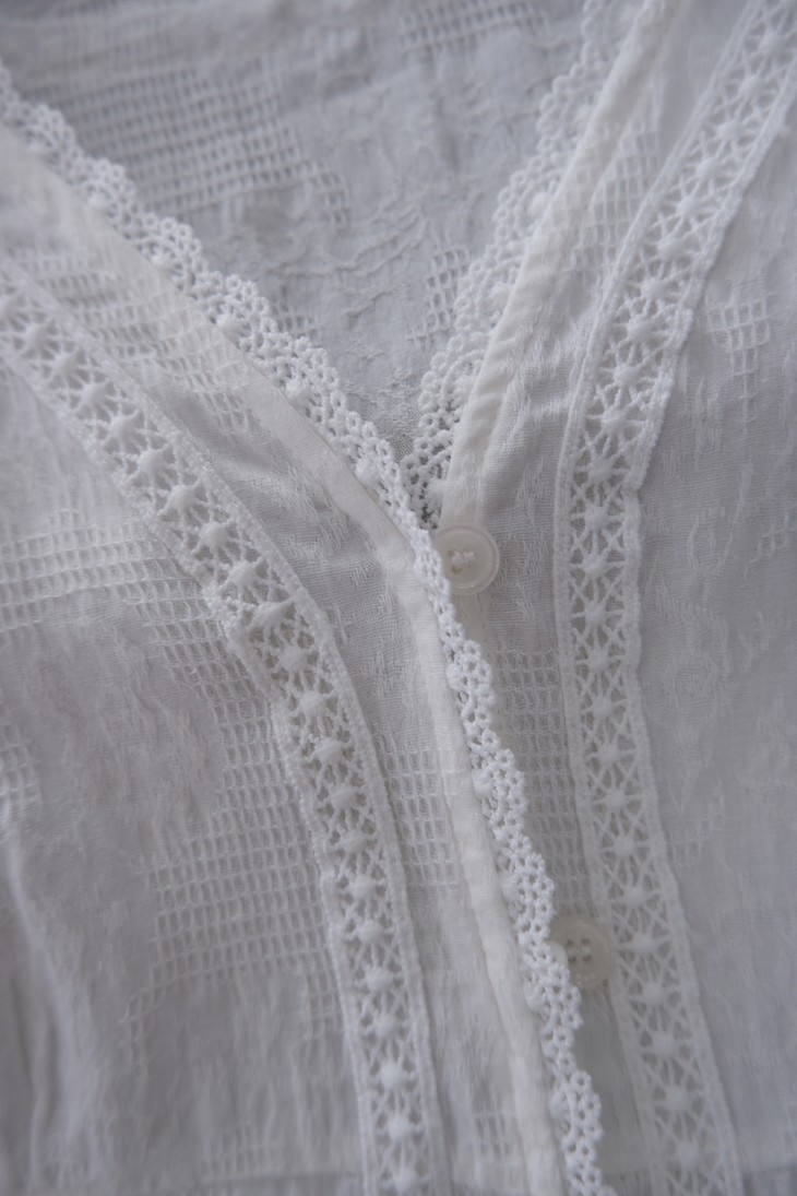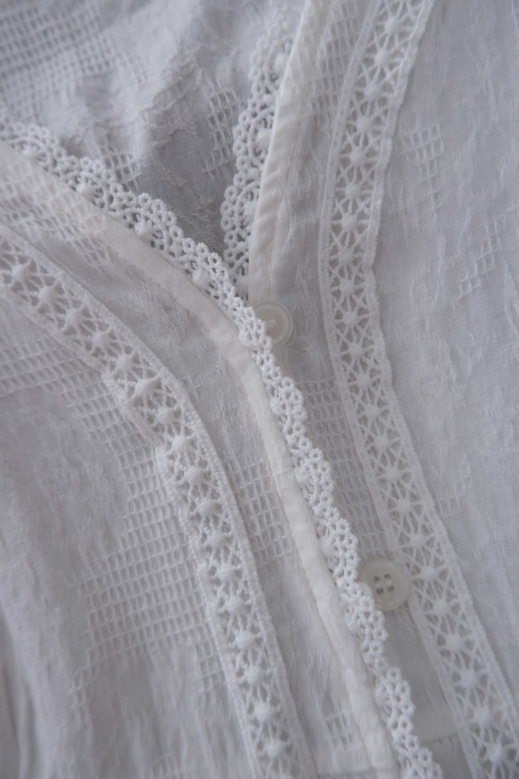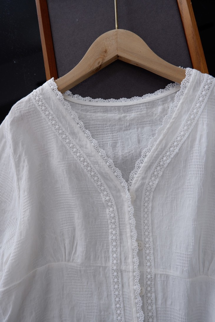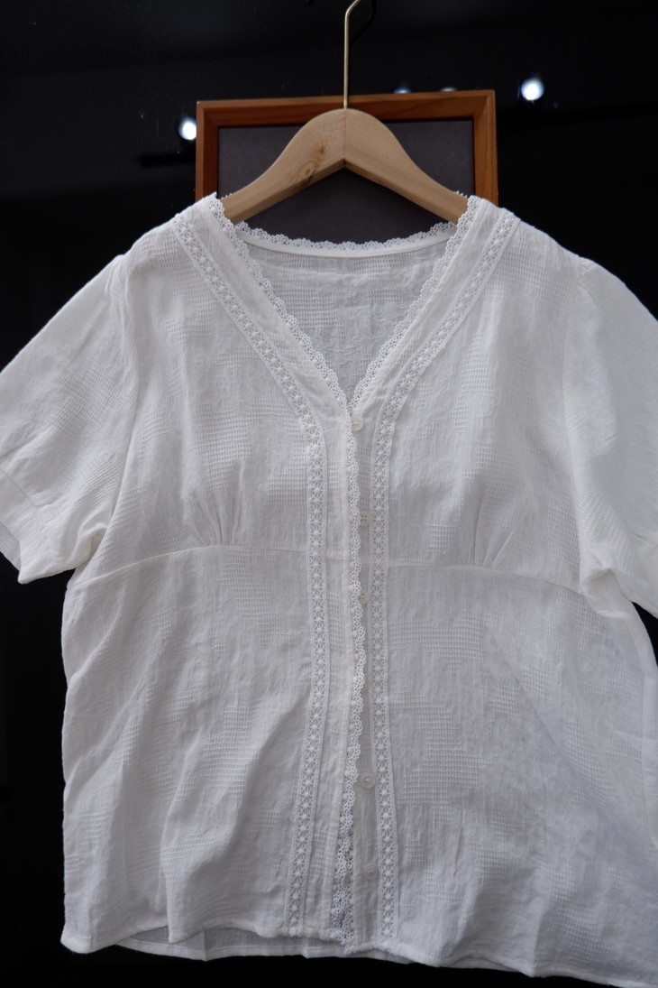 💰85元包邮, 【2387】法式泡泡袖100%棉肌理小众设计感V领短袖衬衫 温柔法式风的一款衬衫上身也太仙气了吧 肌理蕾丝衬衫 ,轻盈有质感
