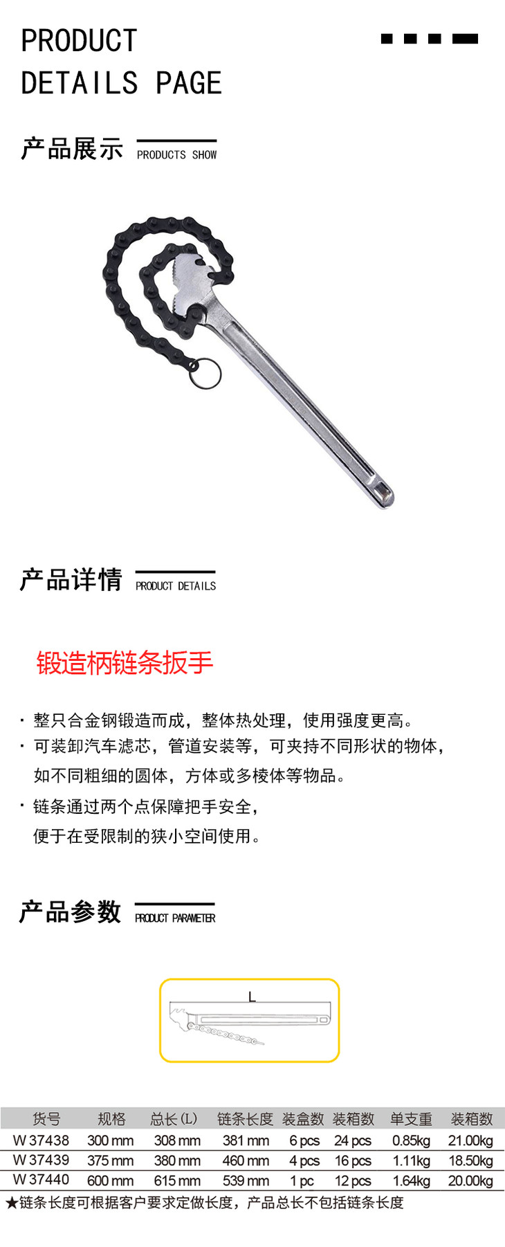 威达锻造柄链条扳手
