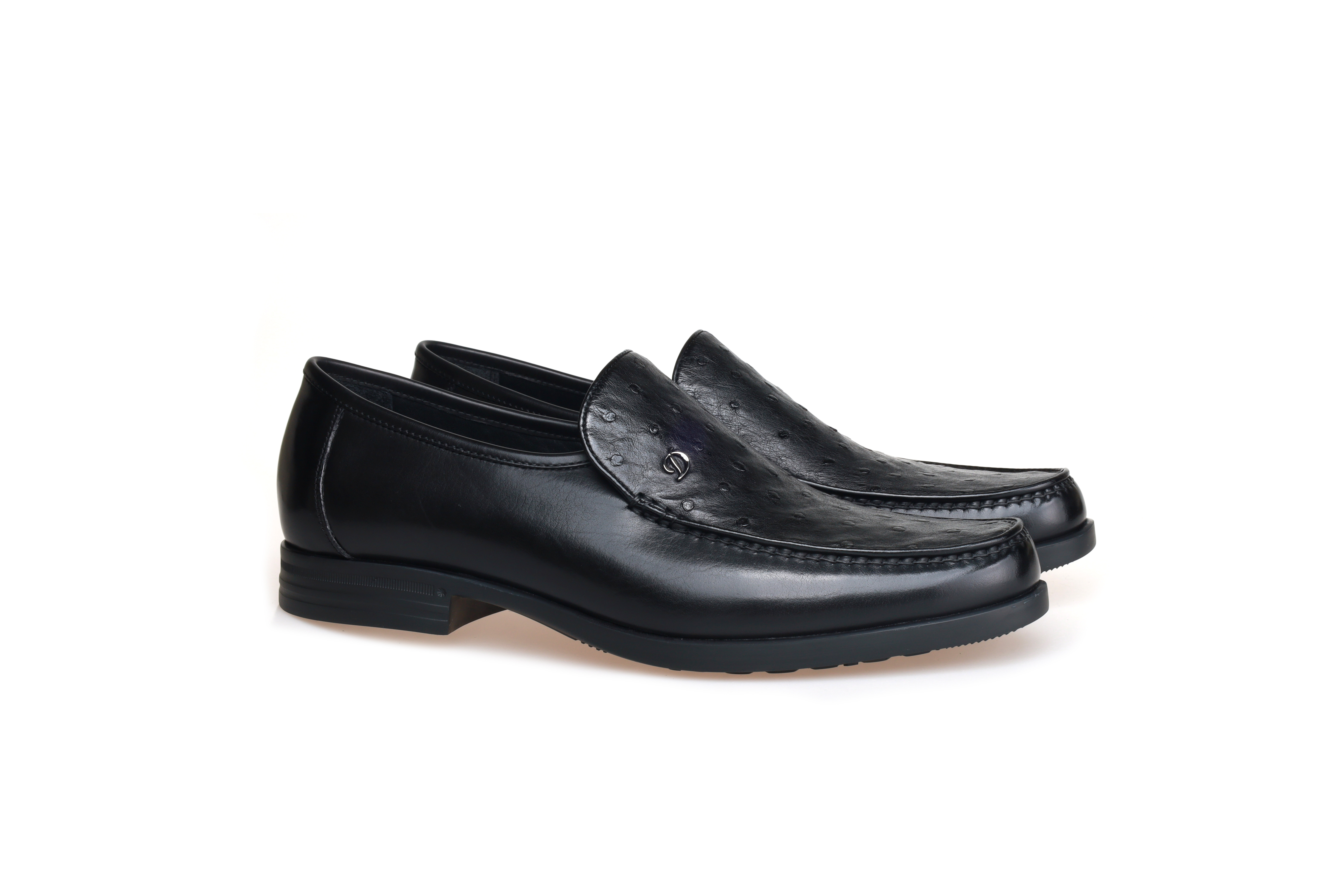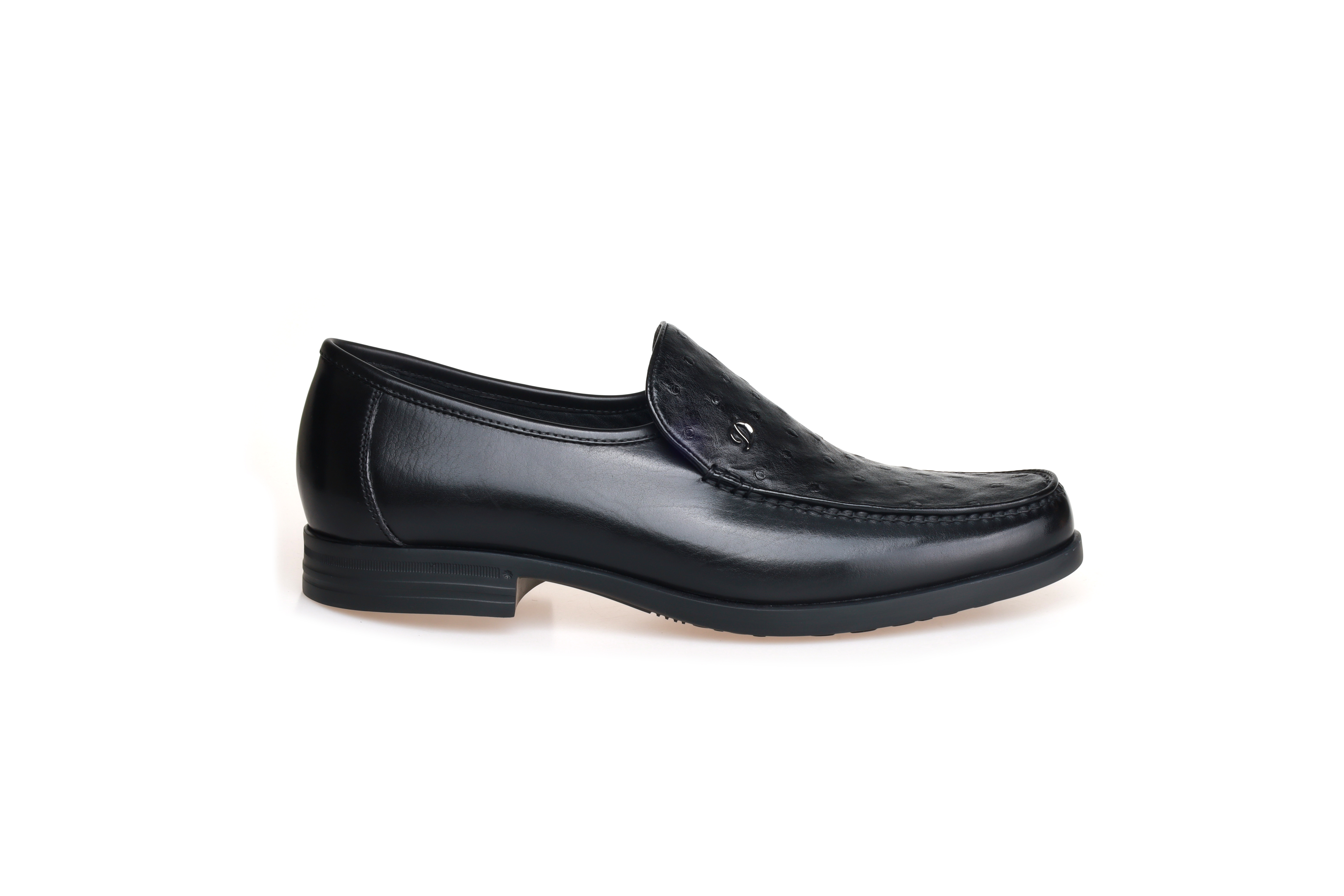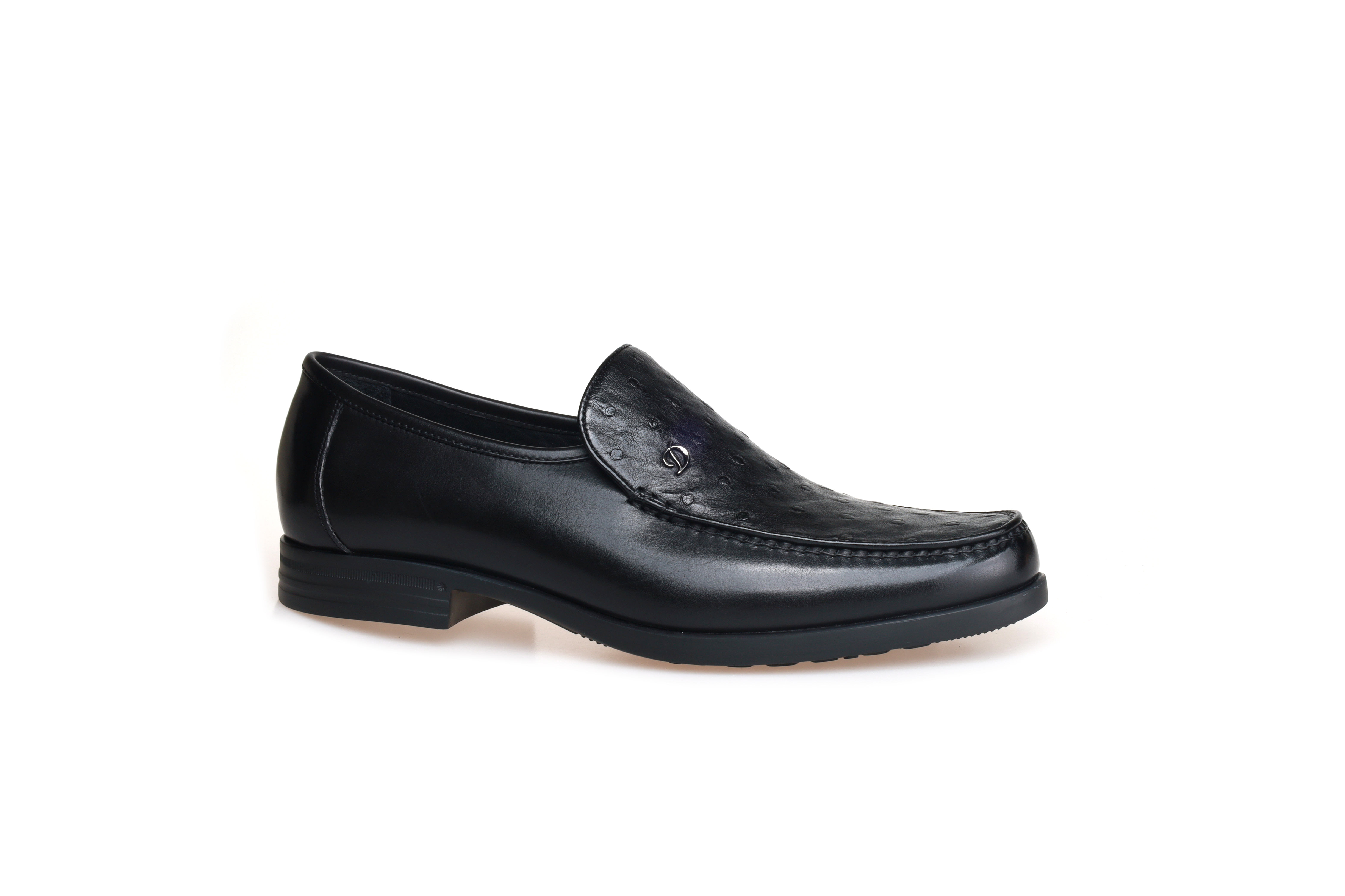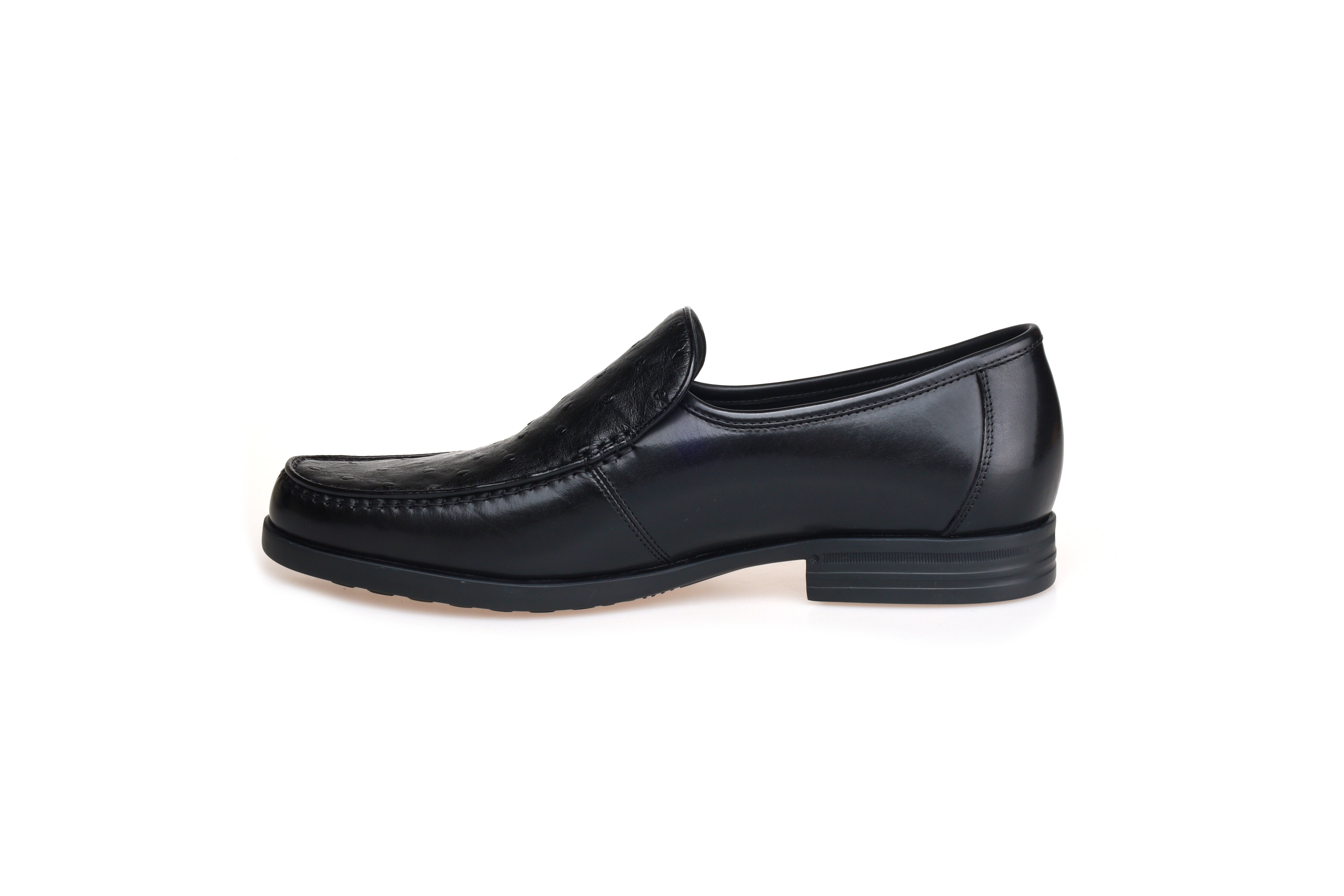 豪麟名鞋都彭男鞋商务鞋牛皮革+鸵鸟皮革E34250945黑色