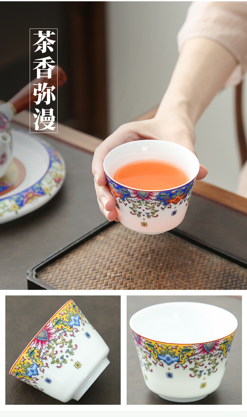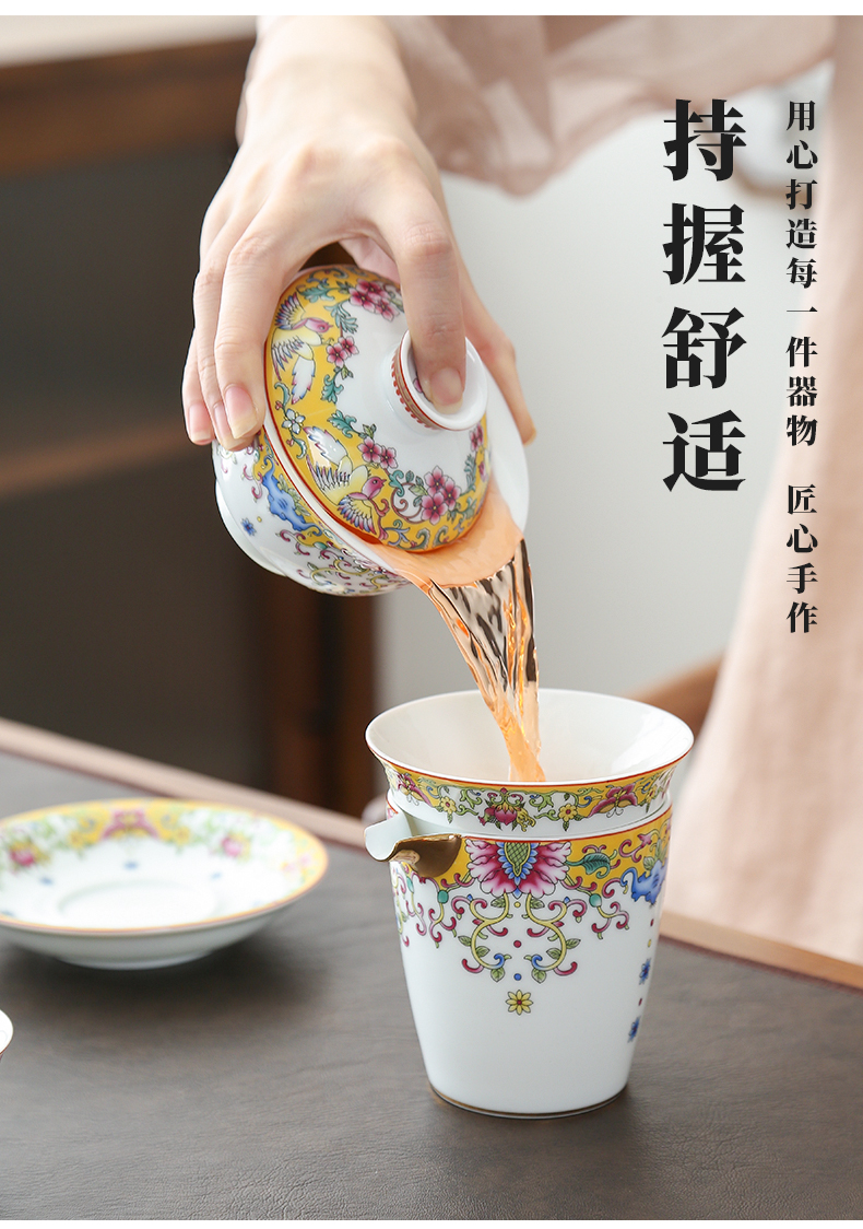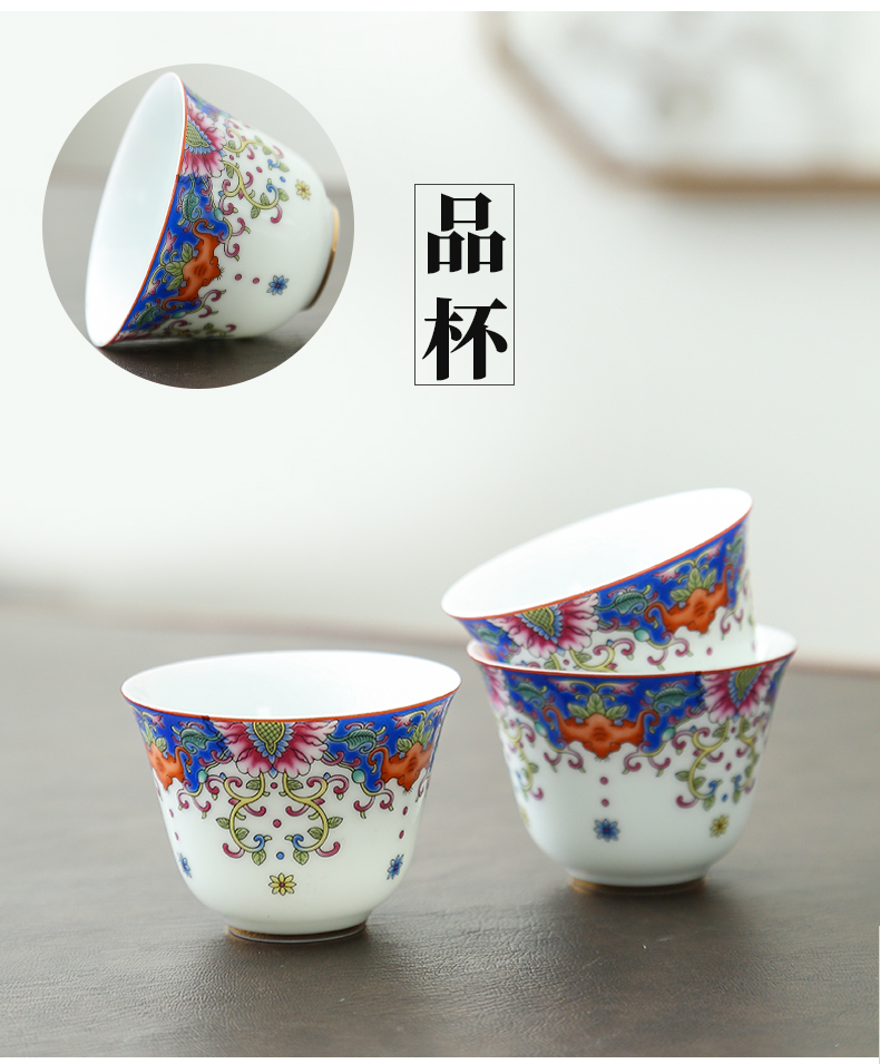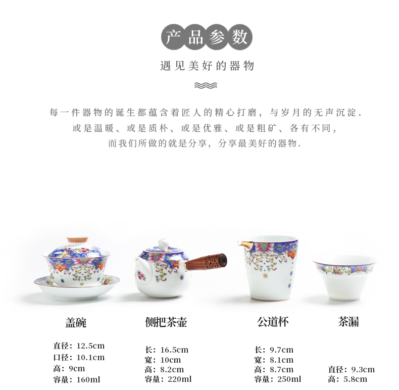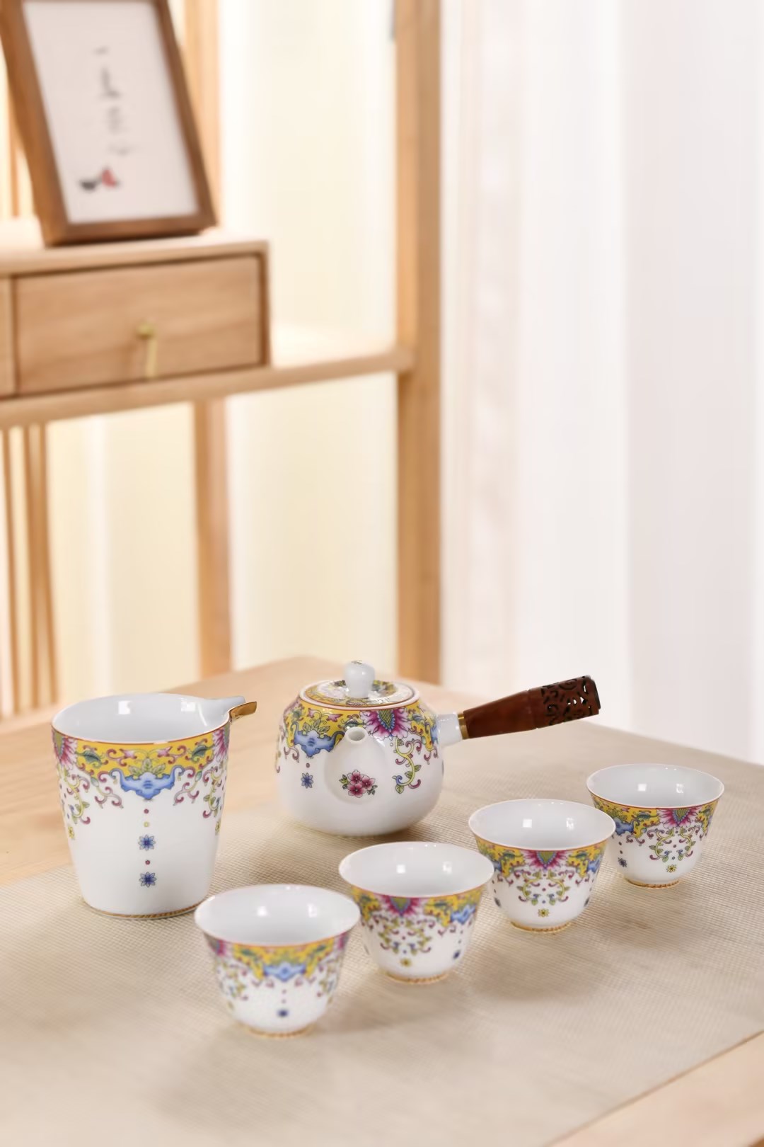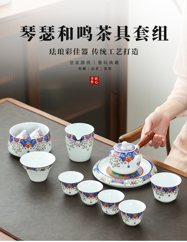 成艺珐琅彩功夫茶具琴瑟和鸣侧把壶茶具组