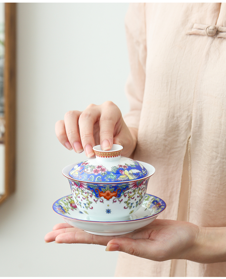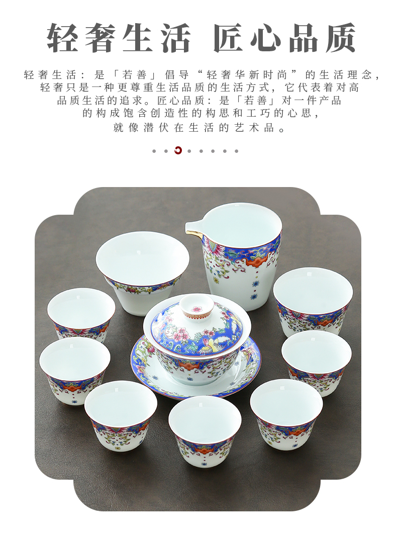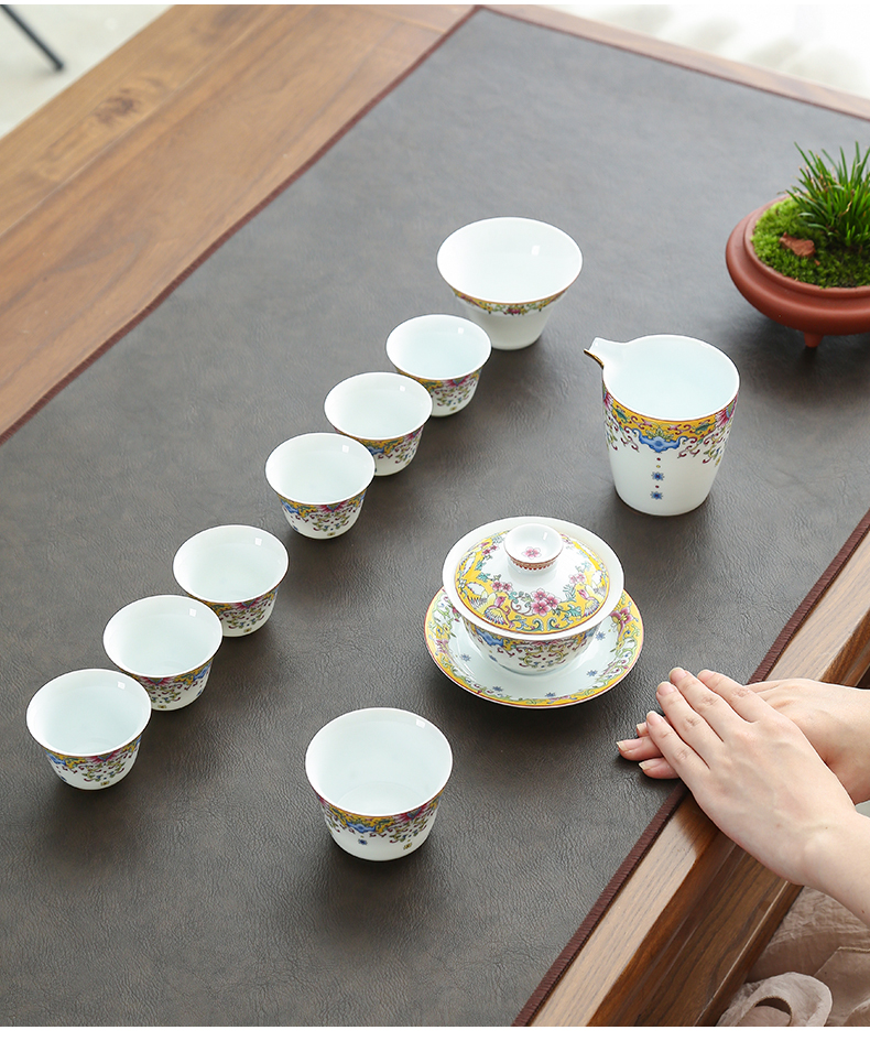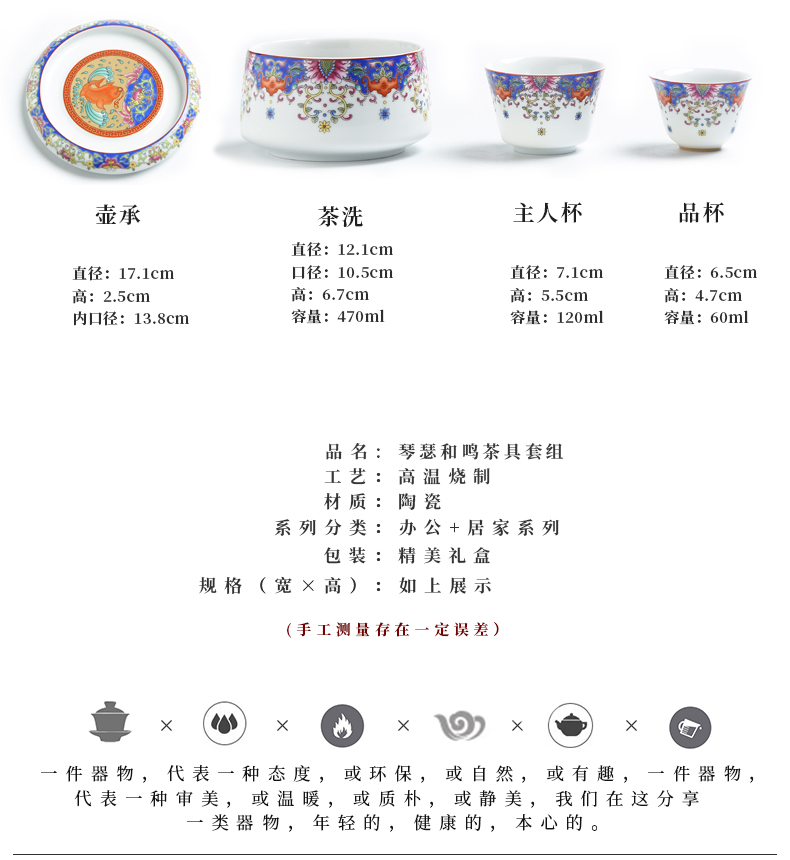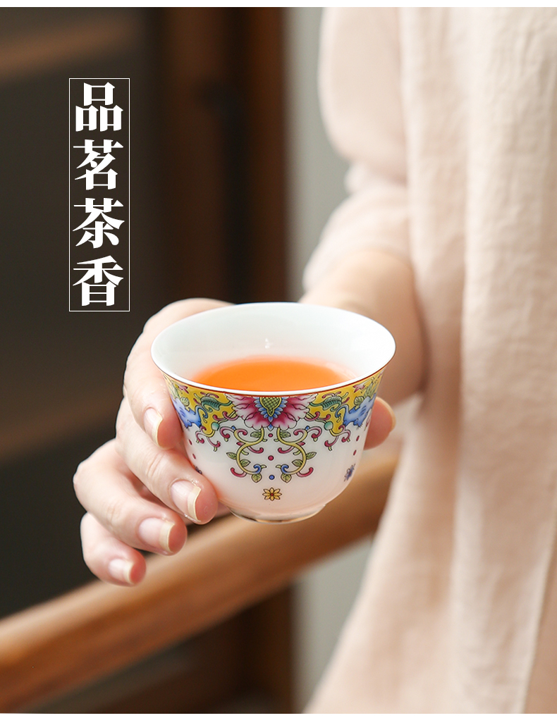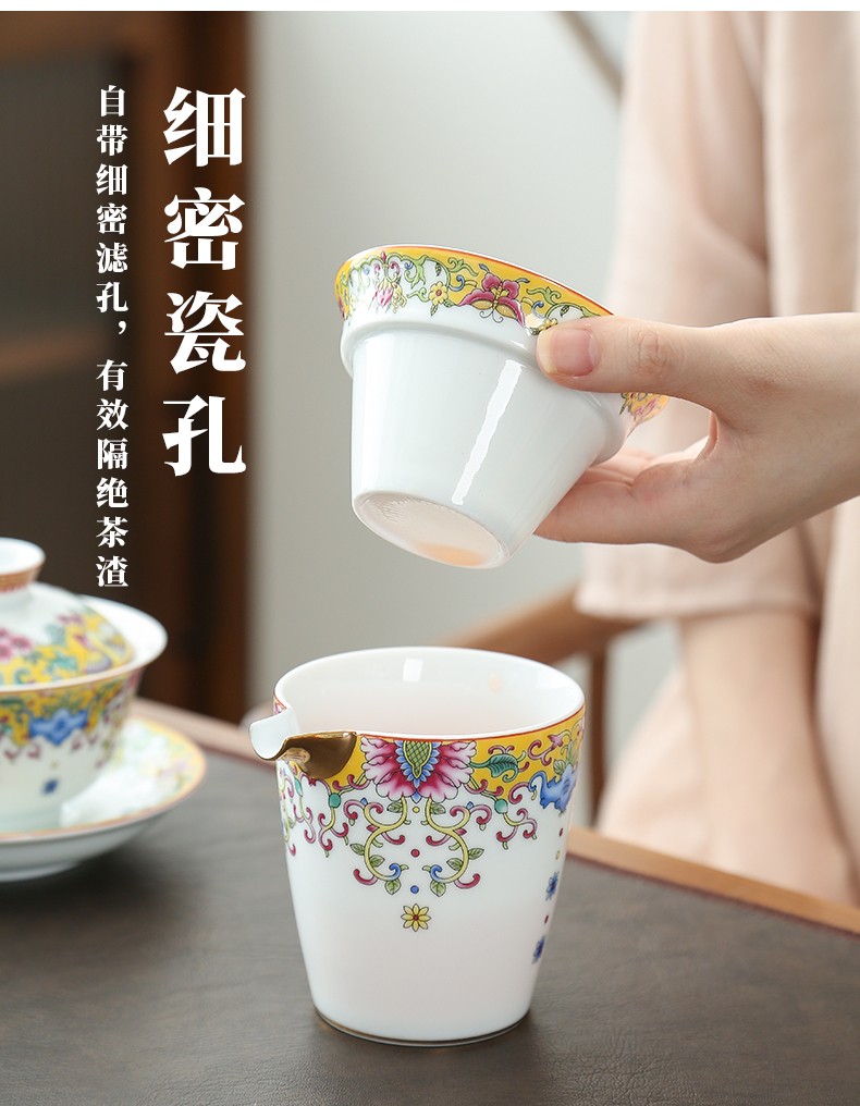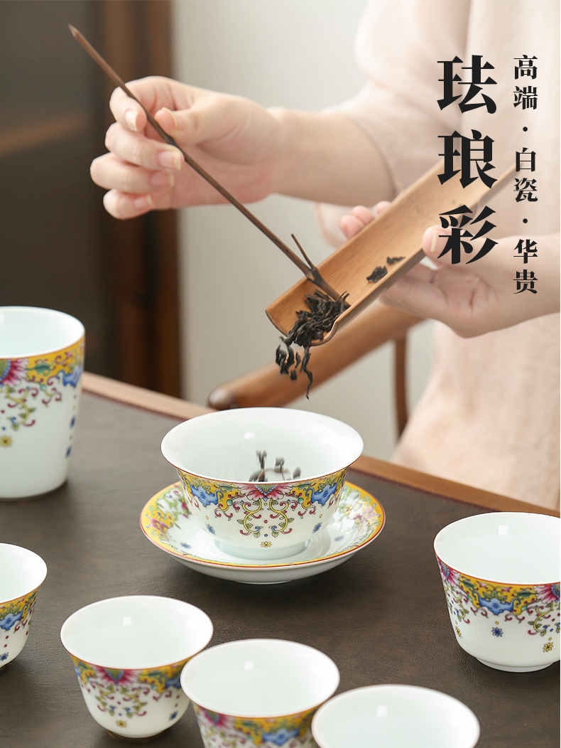 成艺珐琅彩功夫茶具琴瑟和鸣侧把壶茶具组
