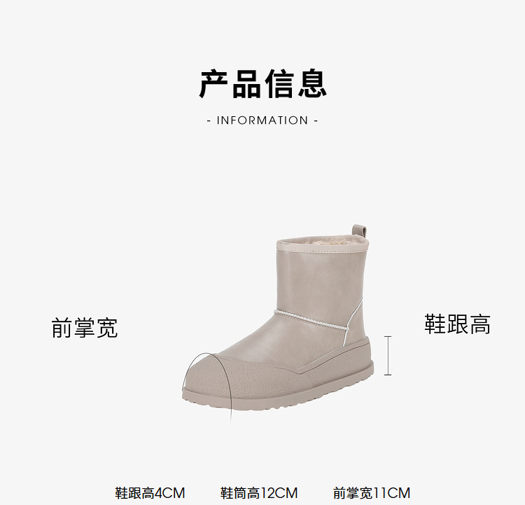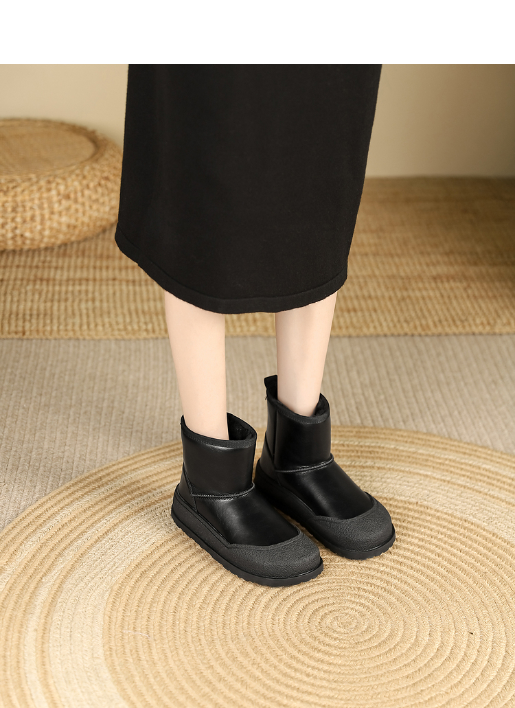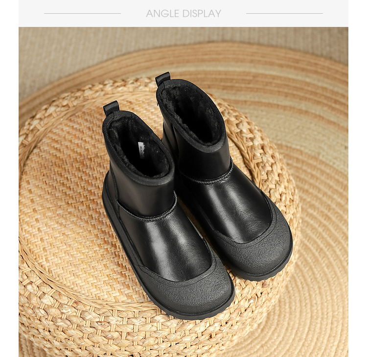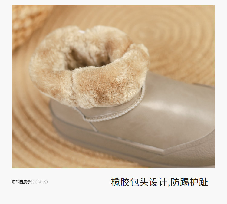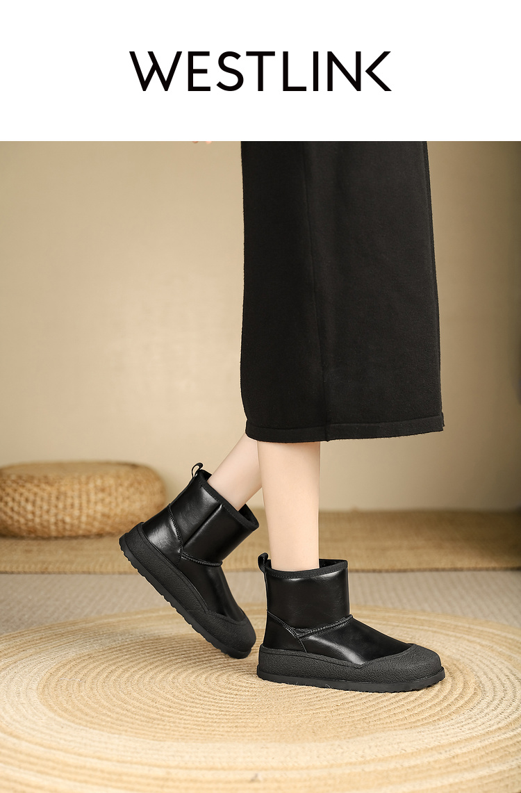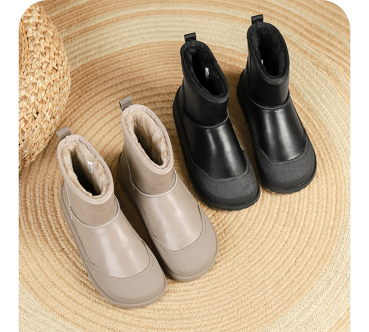 西遇防水雪地靴女新款冬季户外短靴东北外穿黑色保暖加绒棉鞋V0034180