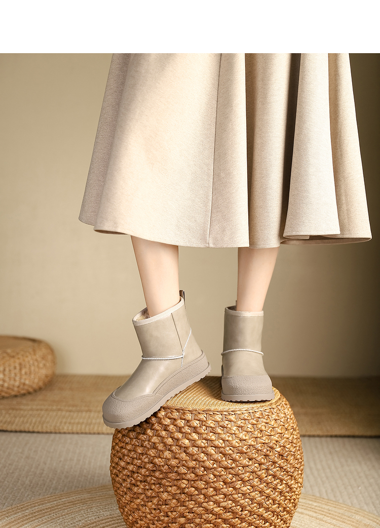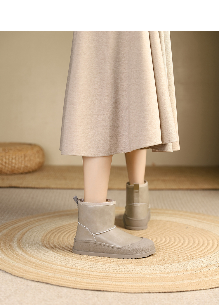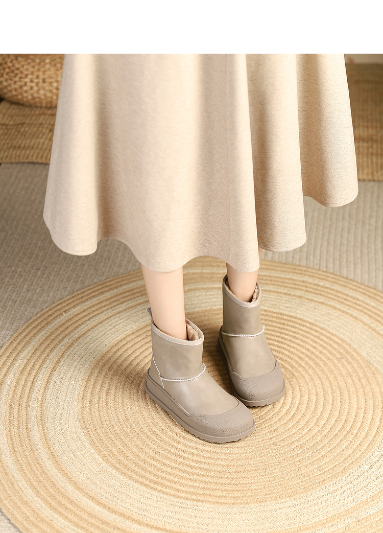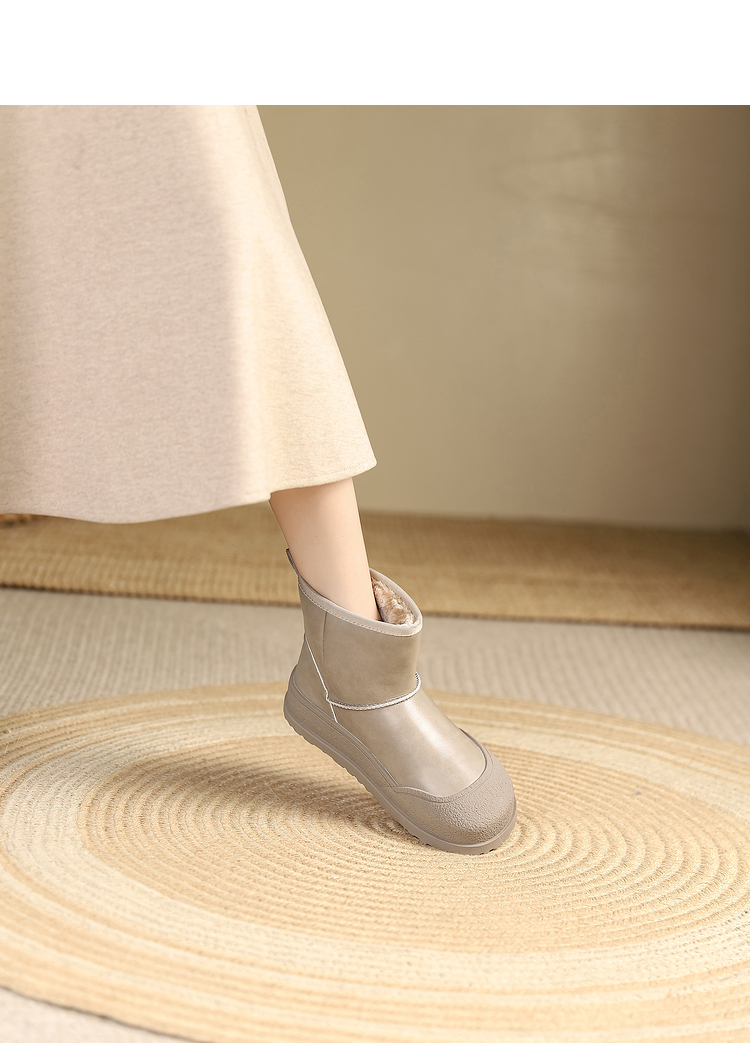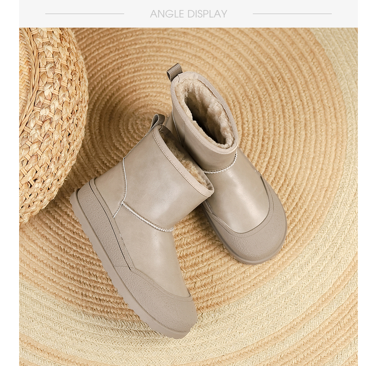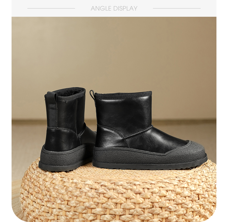 西遇防水雪地靴女新款冬季户外短靴东北外穿黑色保暖加绒棉鞋V0034180