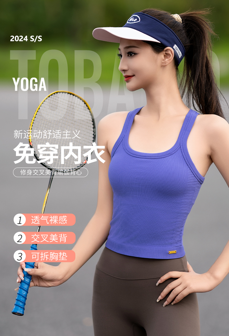 elina一恋2024高弹无缝交叉美背瑜伽运动背心 EYF2001