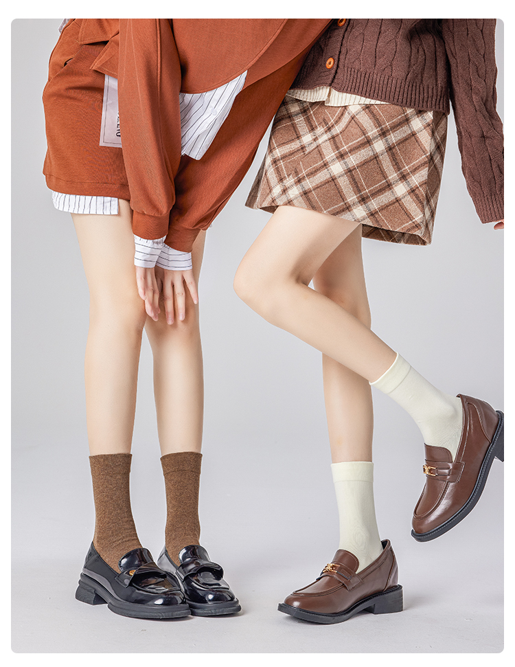 左分之右袜子女堆堆袜月子袜中筒乐福鞋10A长袜纯棉春夏款松口袜