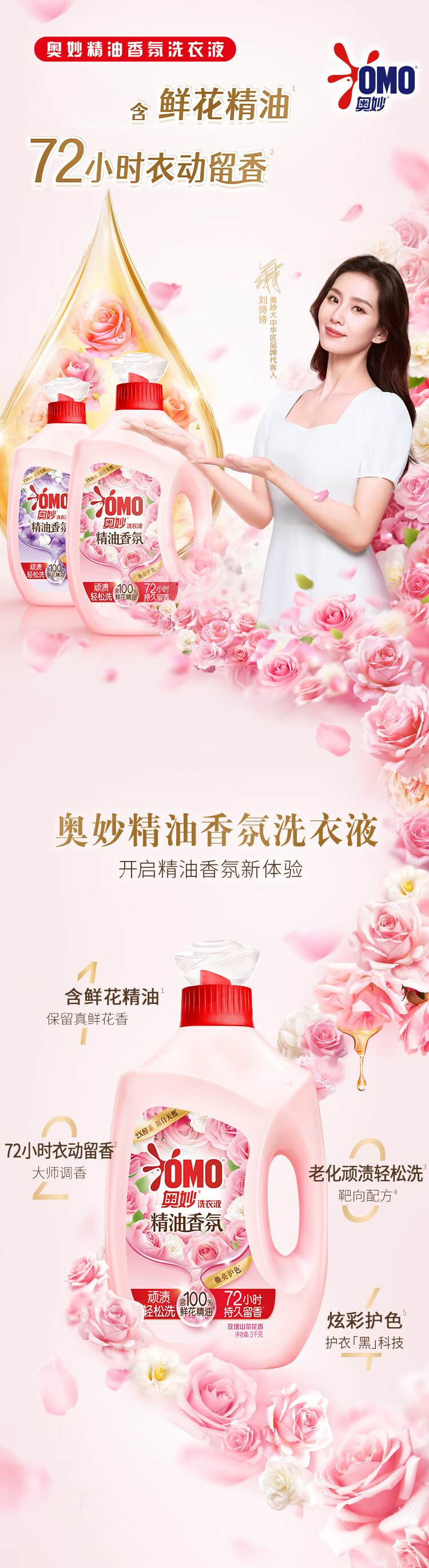 【秒杀特惠】奥妙精油香氛洗衣液2kg*2瓶 送金纺400g*3袋