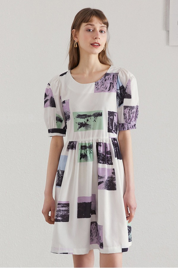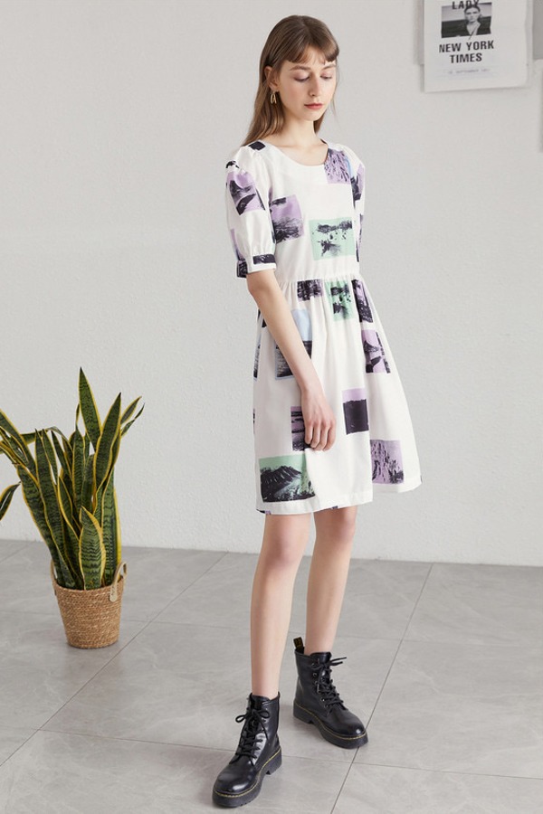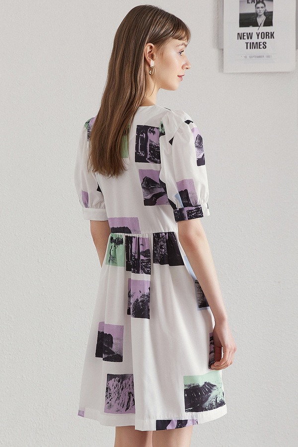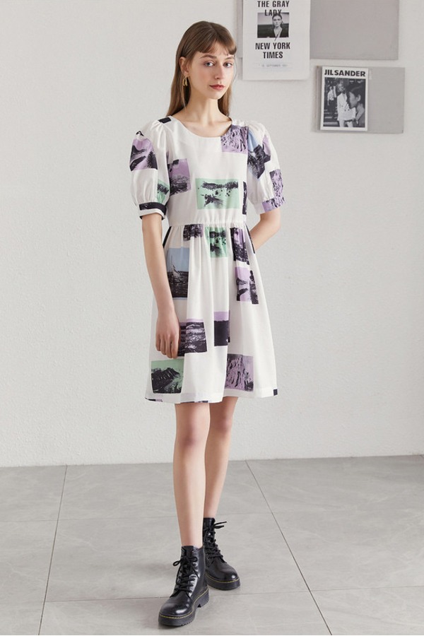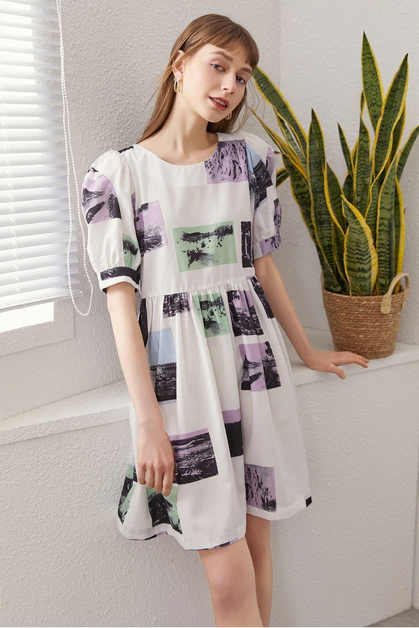 Y.SING衣香丽影 泡泡袖印花连衣裙 12470