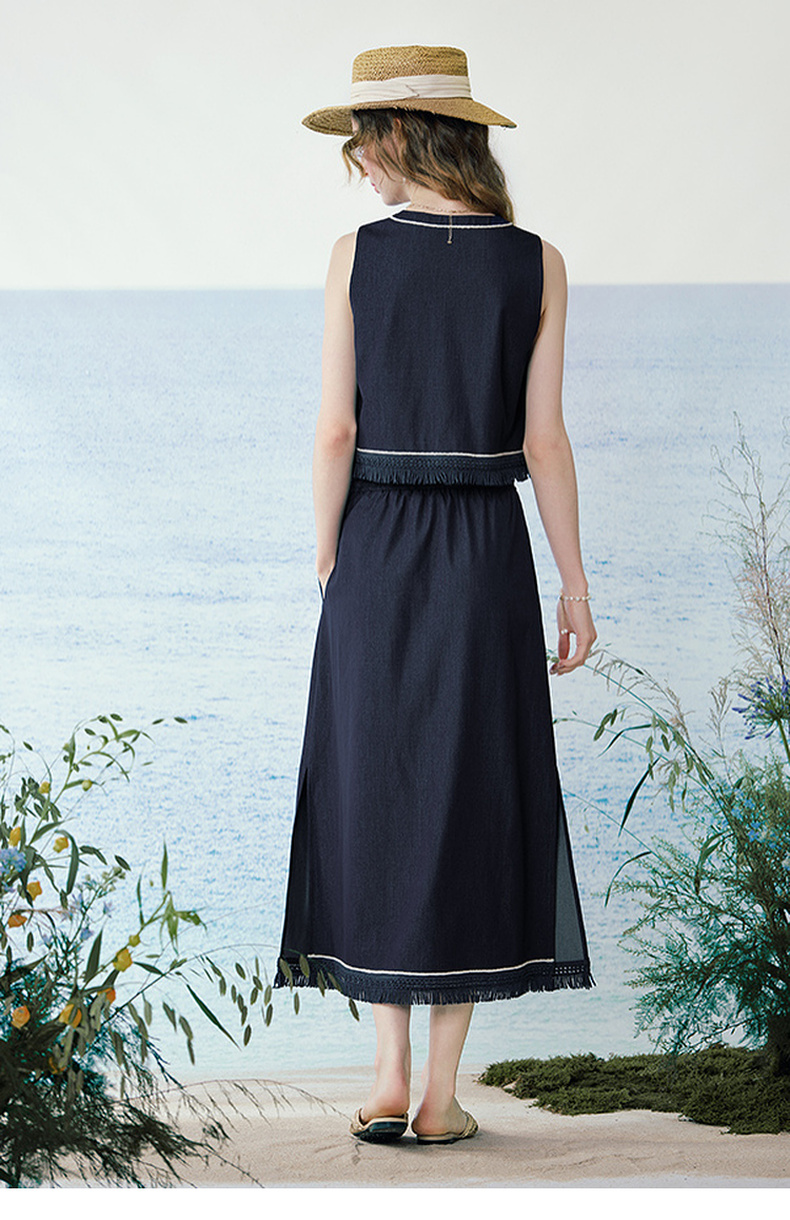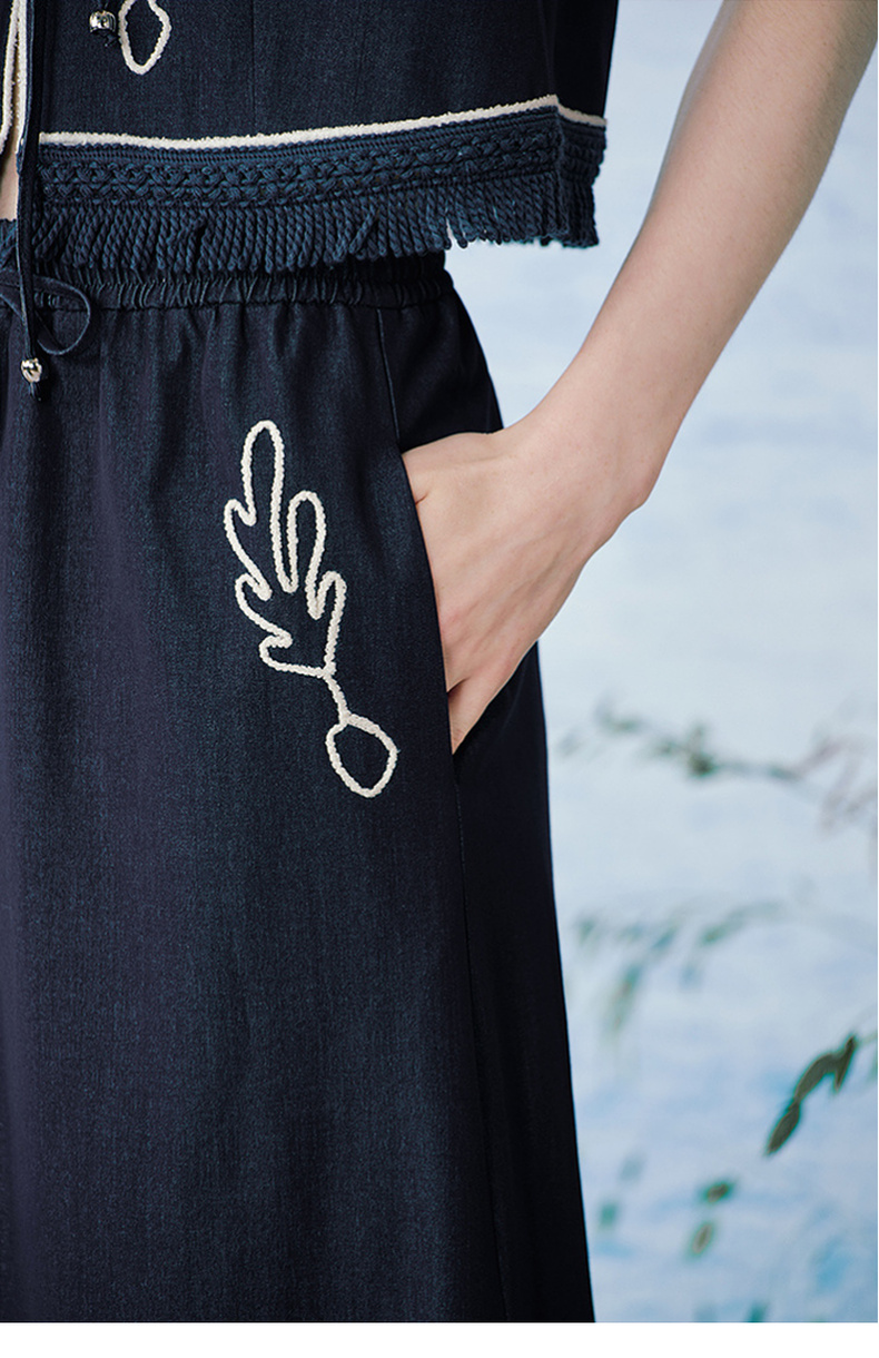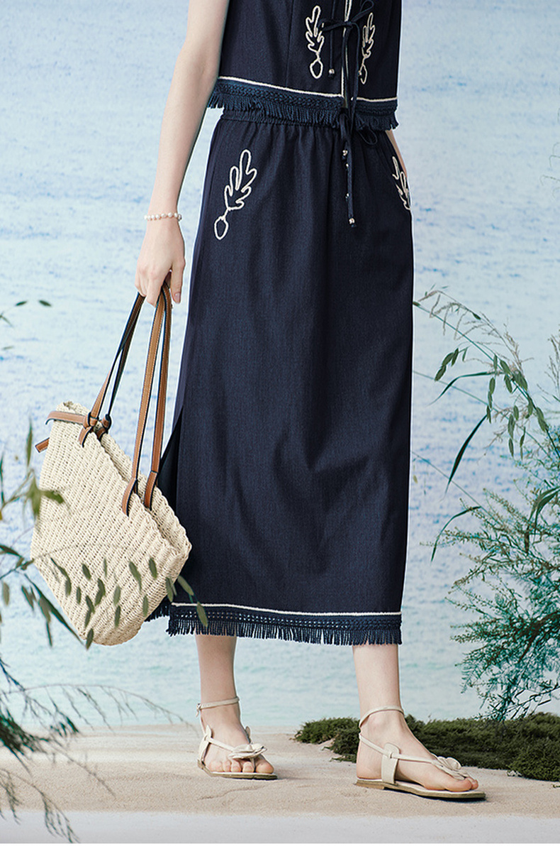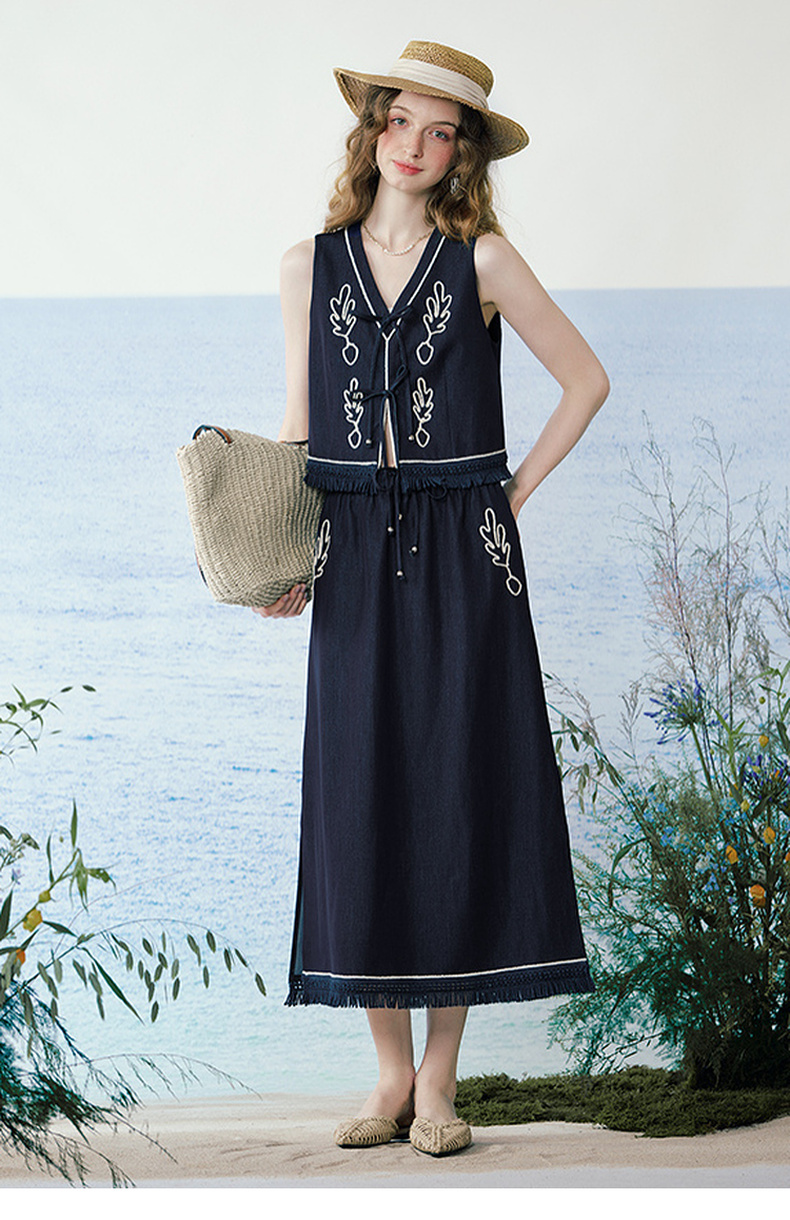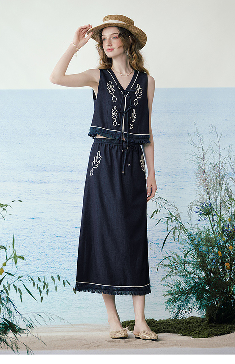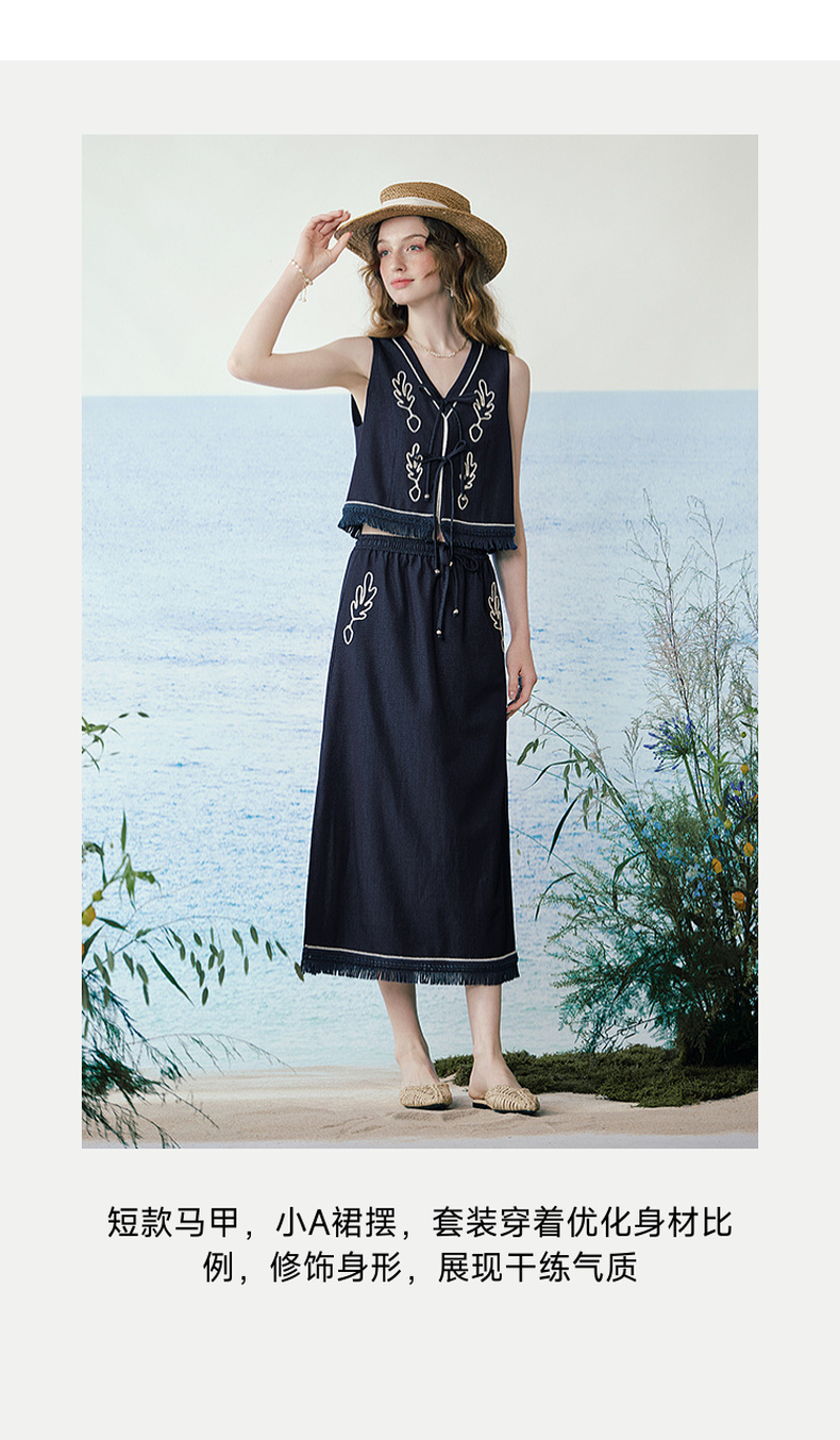 两三事 跳动诗行 2025夏季新款复古绣花流苏装饰两件套女时尚套装