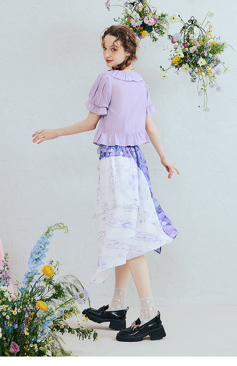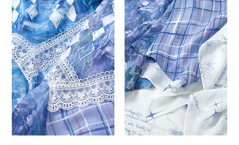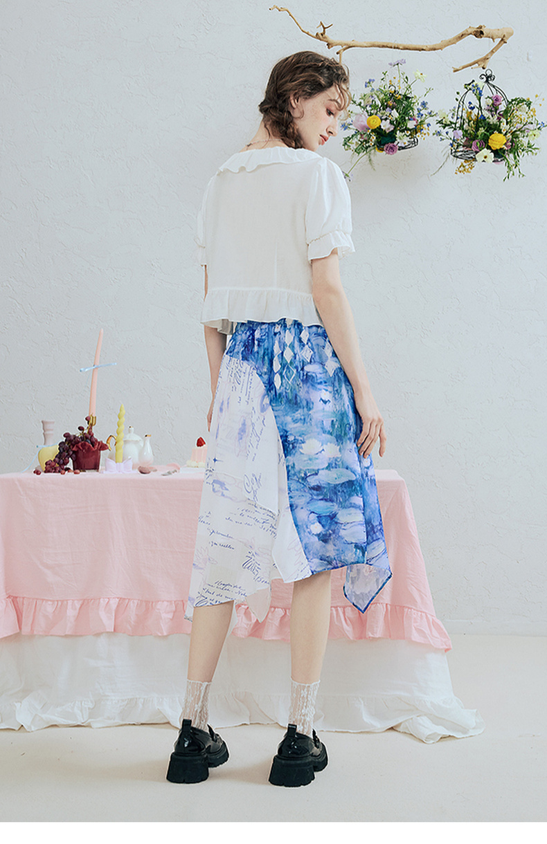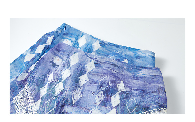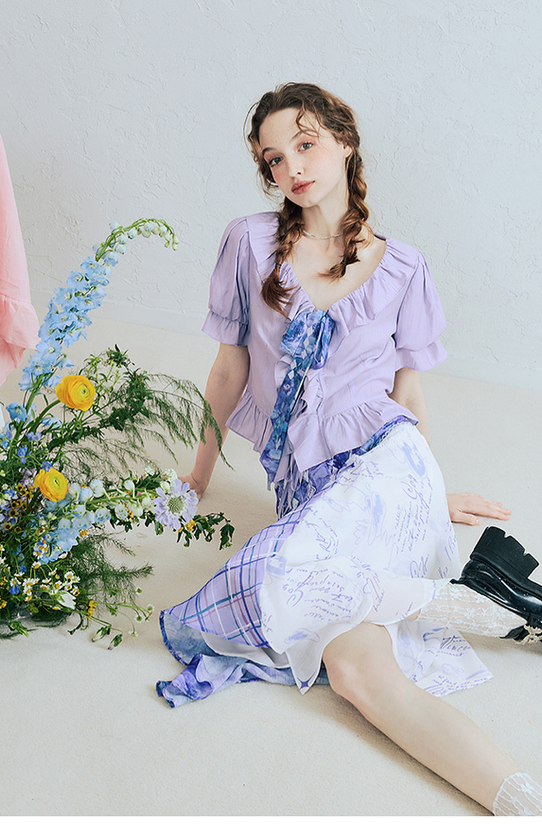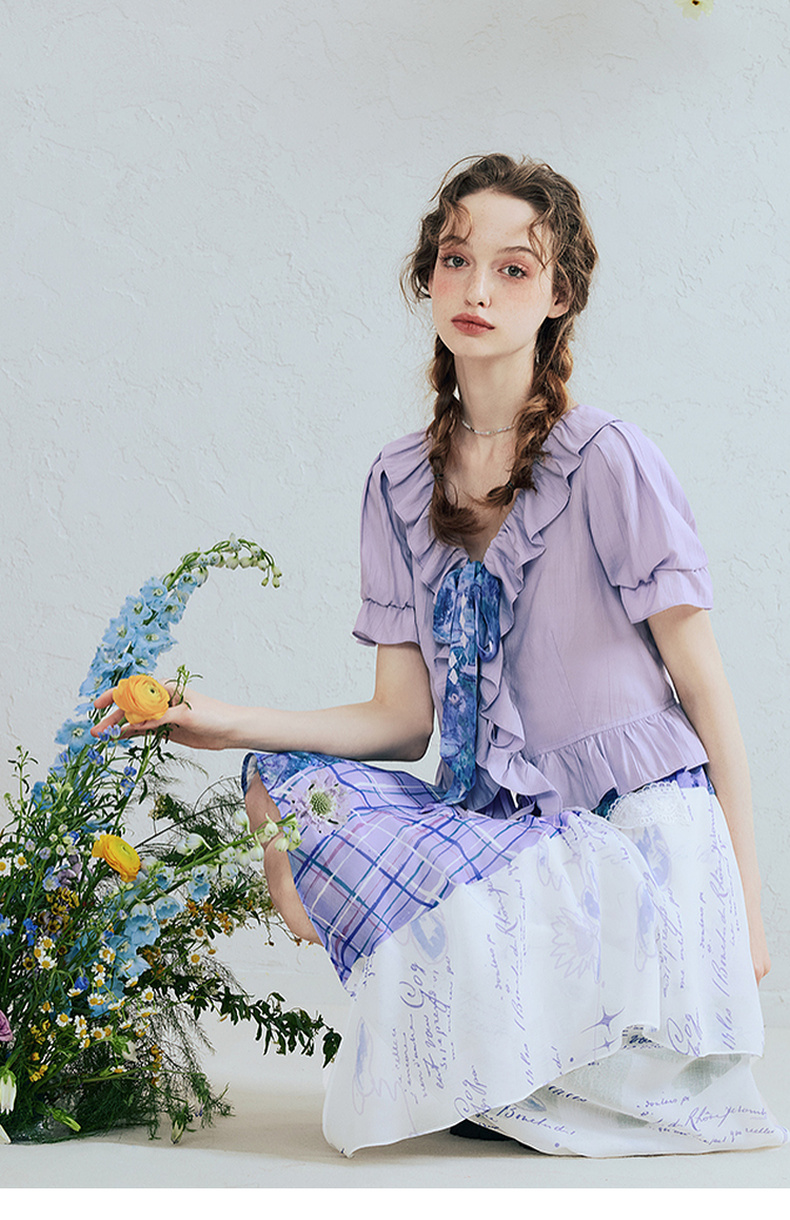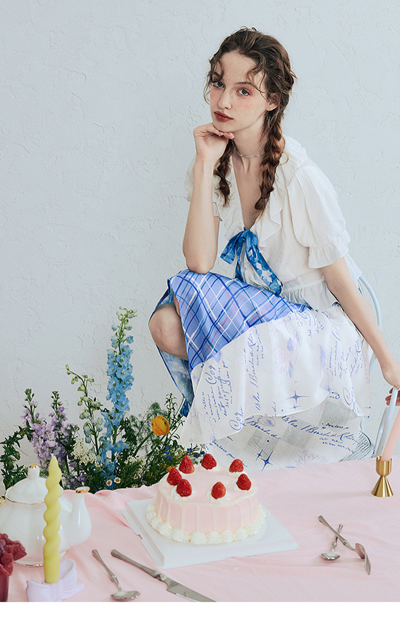 两三事 花田错 2025夏季新款复古格子印花蕾丝拼接不规则半身裙