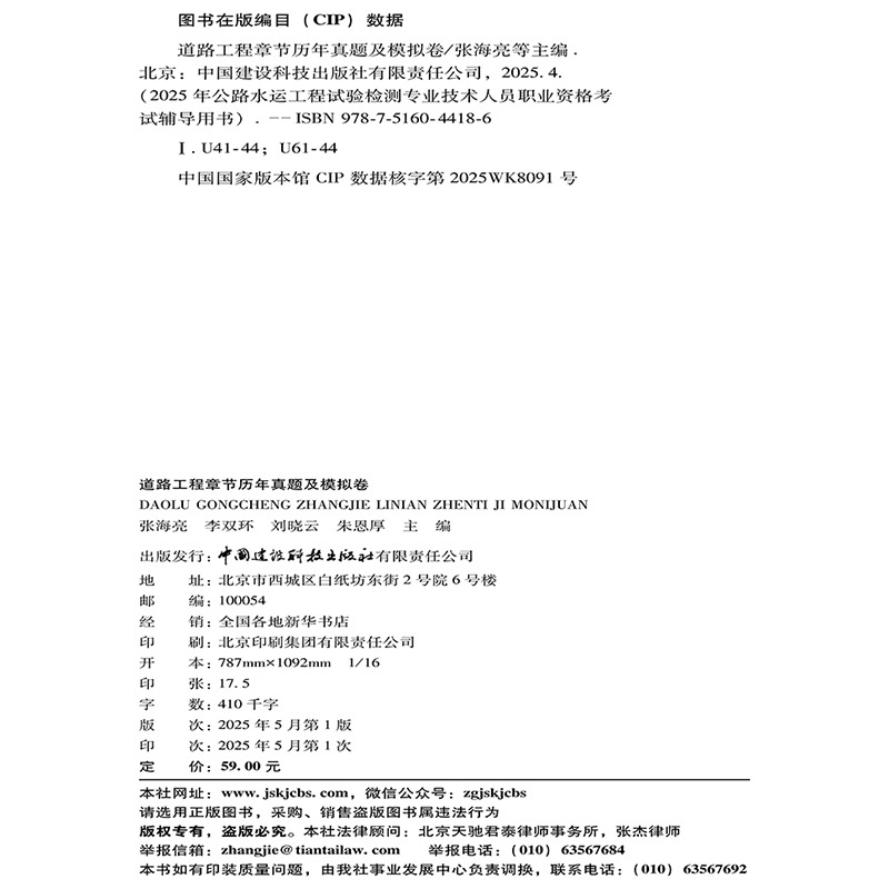 书名:2025年公路水运工程试验检测专业技术人员职业资格考试辅导用书 道路工程章节历年真题及模拟卷
