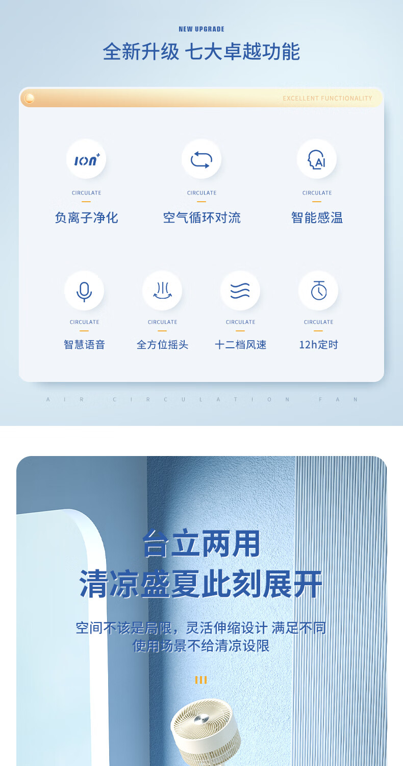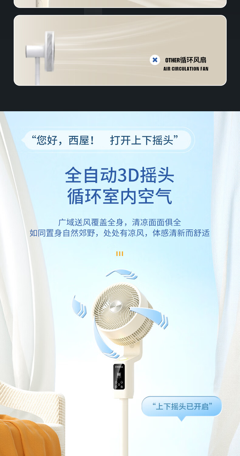 【西屋台立两用循环扇】西屋(Westinghouse)空气循环扇家用电风扇大风量落地扇静音低噪电扇台立两用风扇换气扇宿舍卧室客厅排风扇WTH-XH025 白色