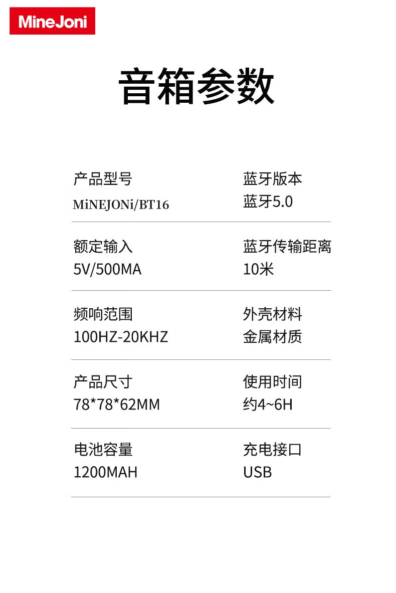 MINEJONIMiNEJONi 蓝牙音响新款迷你车载蓝牙音箱 家用Tws无线收款音箱 户外便携式智能音响 BT16蓝牙音响