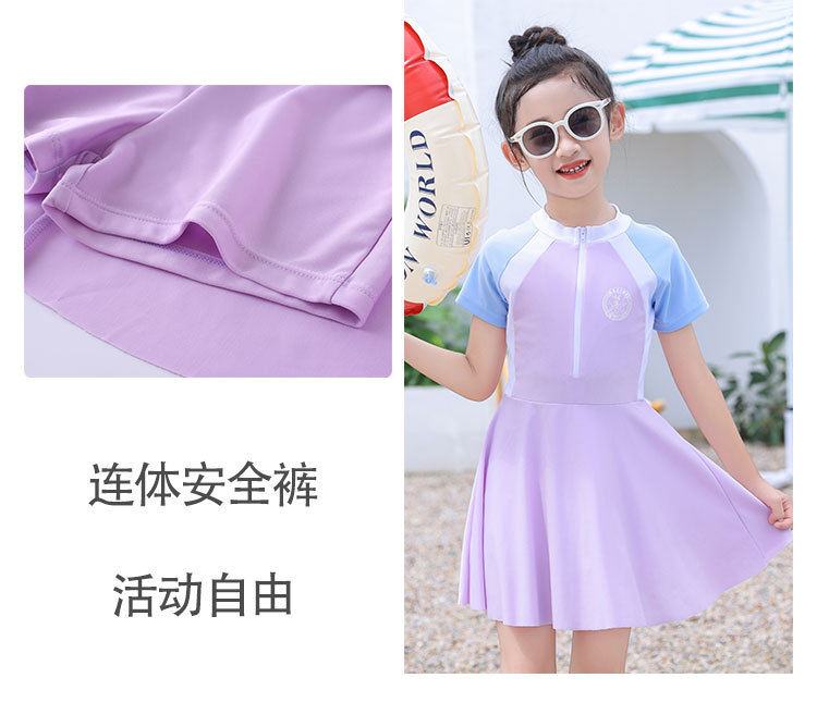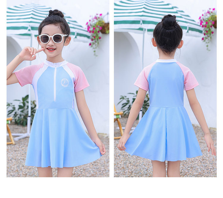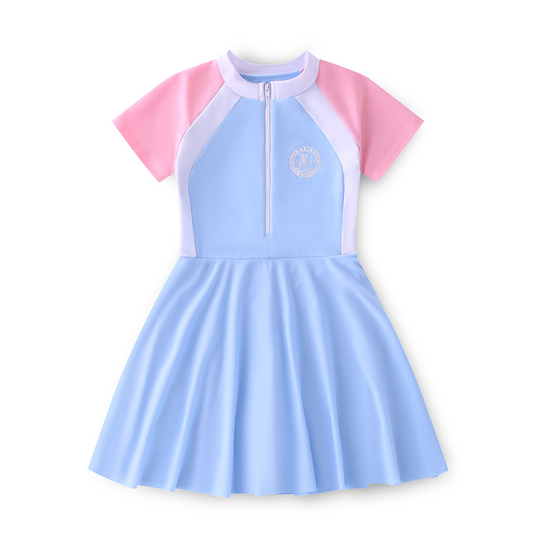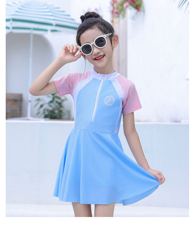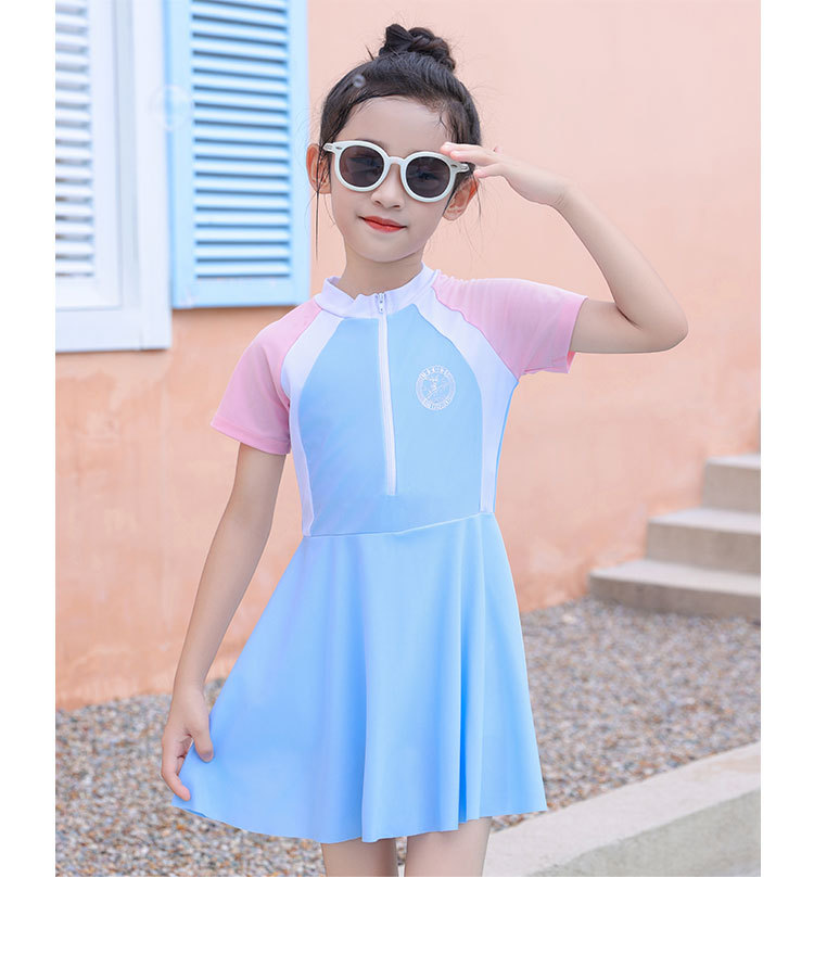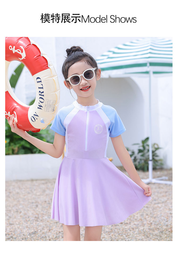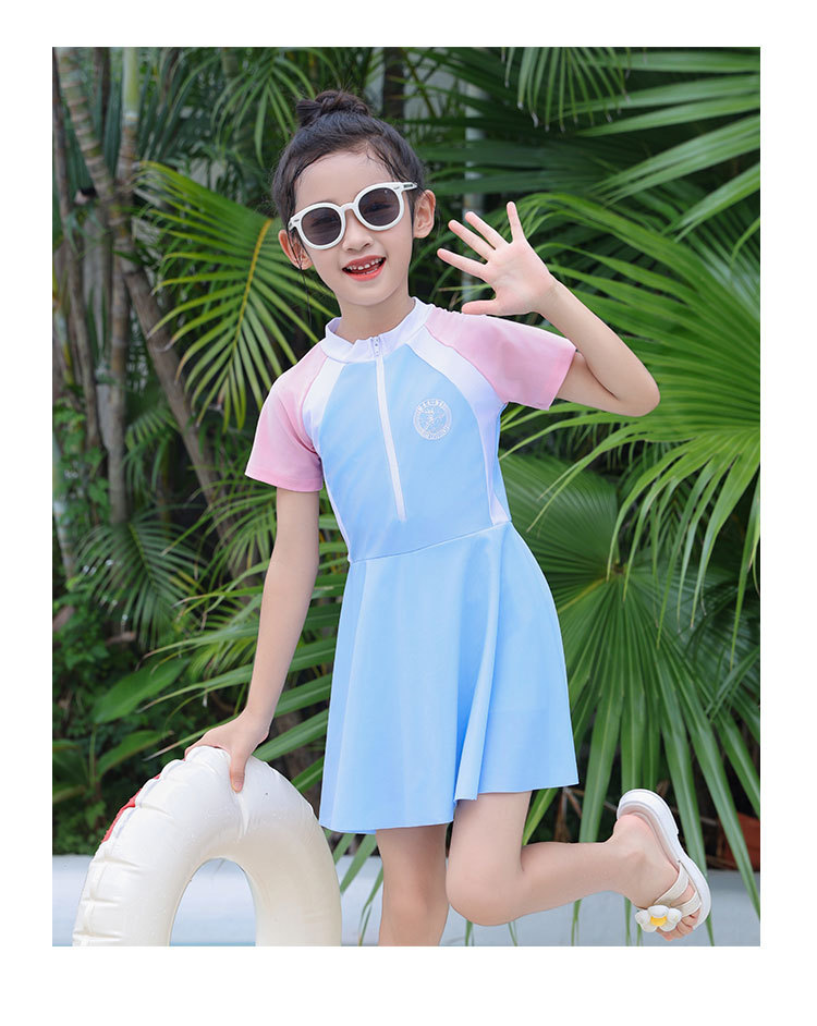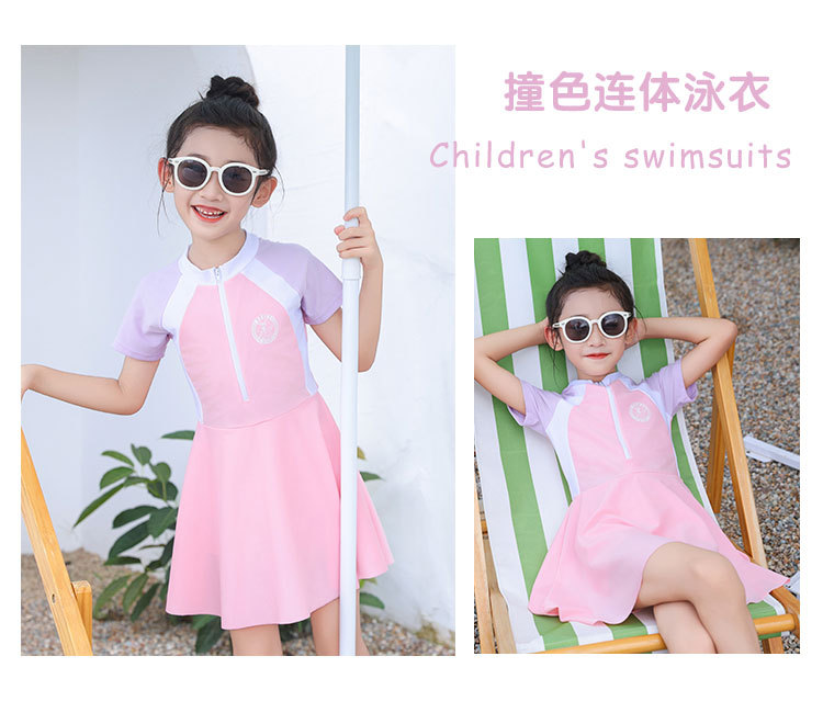 儿童泳衣女童游泳衣儿童女孩洋气运动连体拼色公主裙式兒童泳装