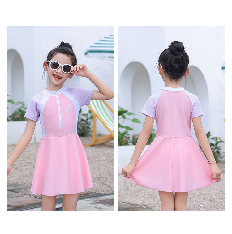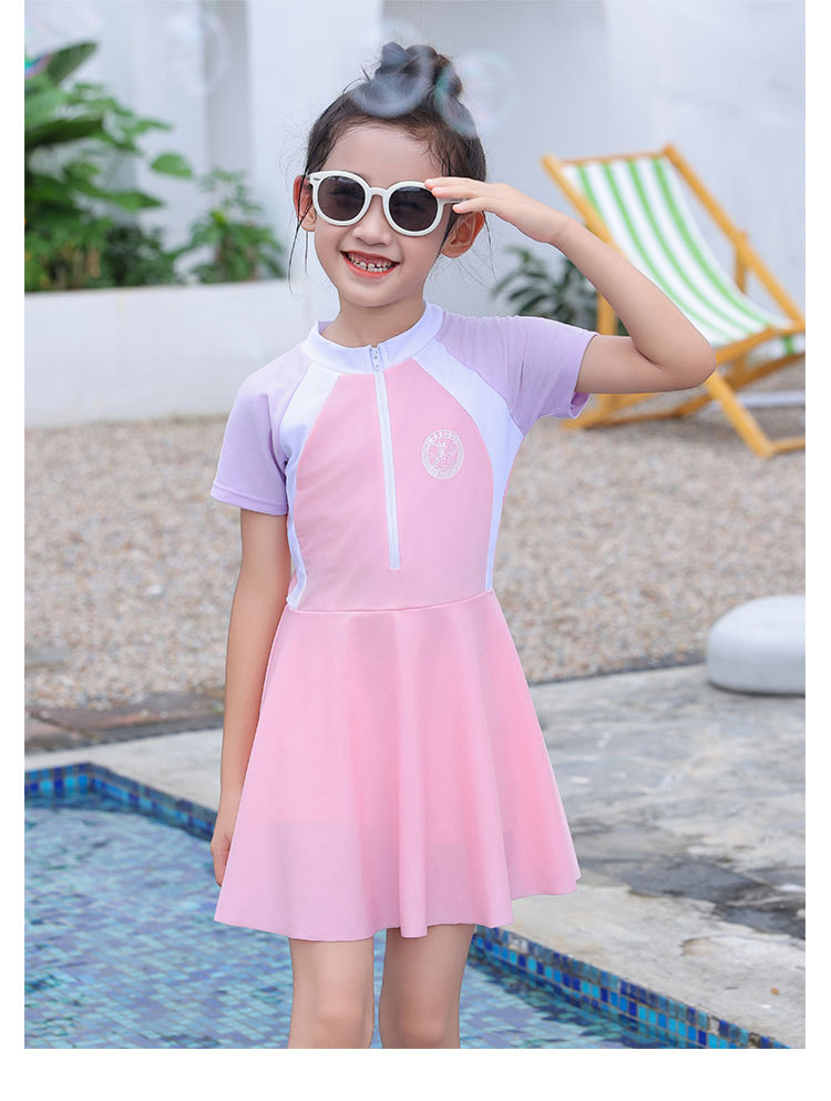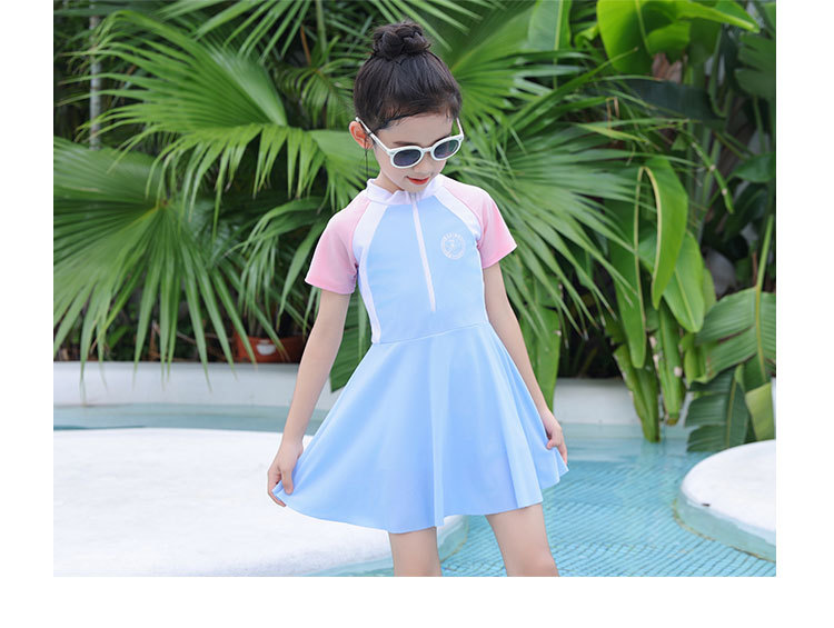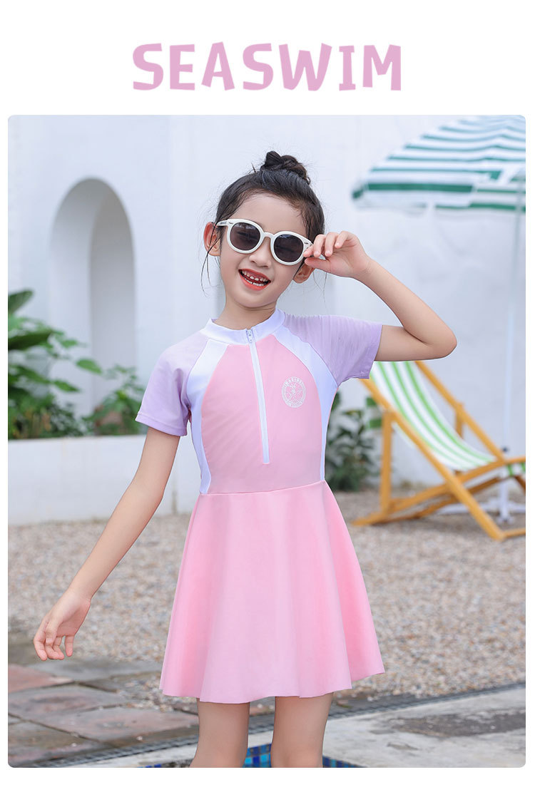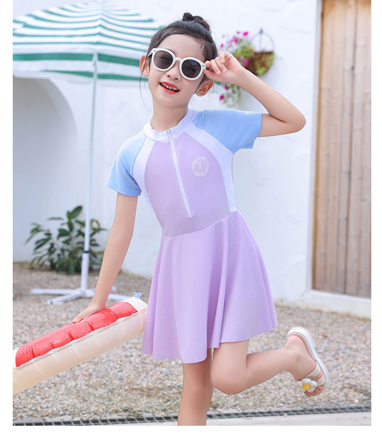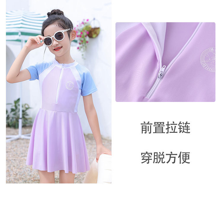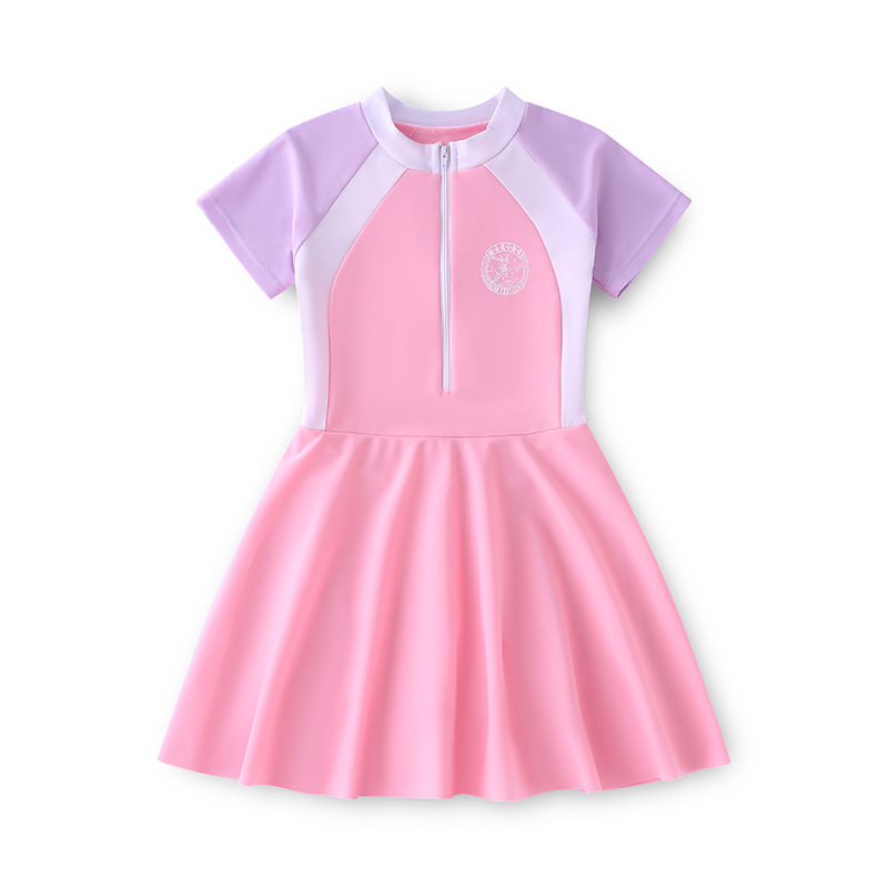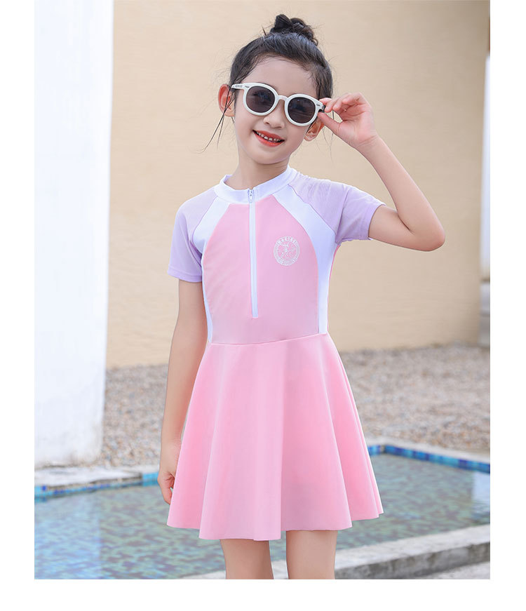 儿童泳衣女童游泳衣儿童女孩洋气运动连体拼色公主裙式兒童泳装
