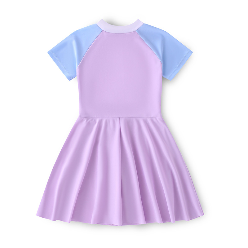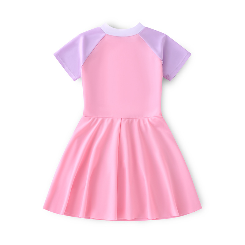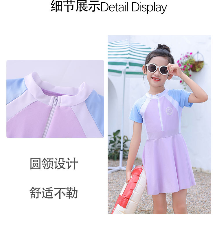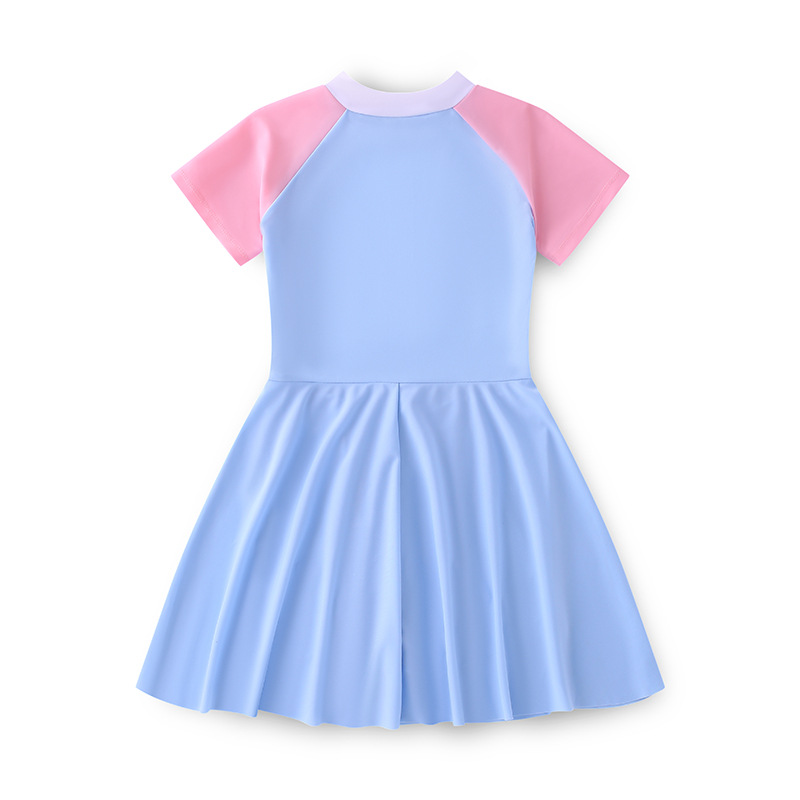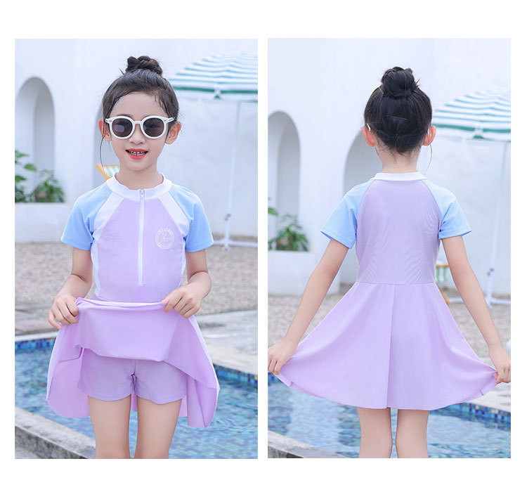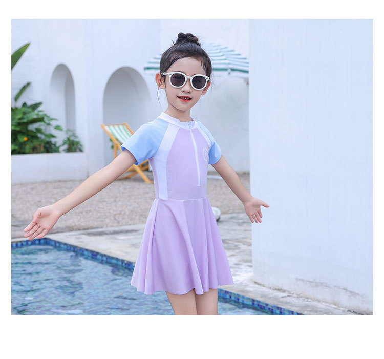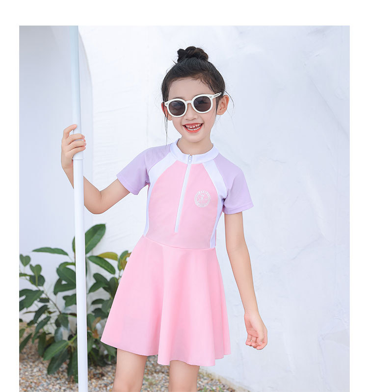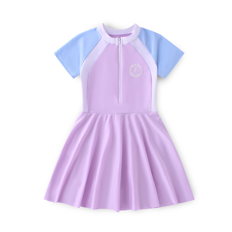 儿童泳衣女童游泳衣儿童女孩洋气运动连体拼色公主裙式兒童泳装