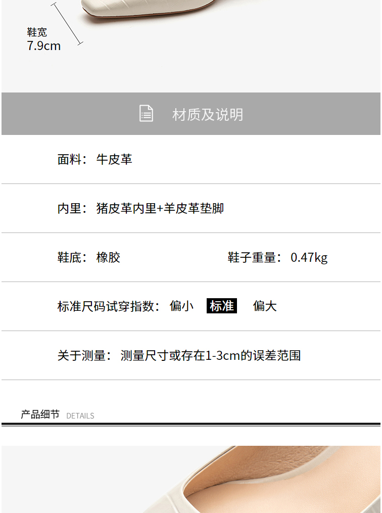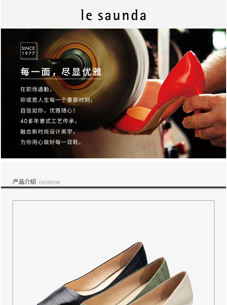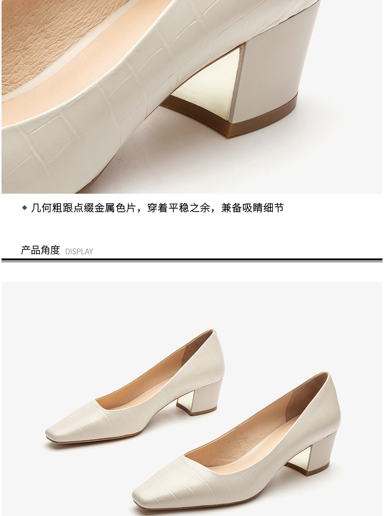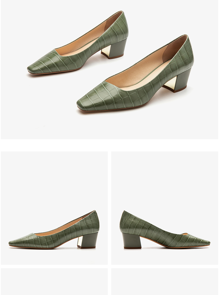 莱尔斯丹2022春夏新款优雅方头纯色压纹中跟单鞋3M40901