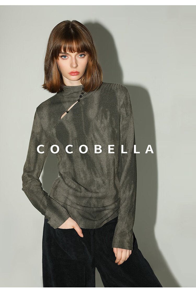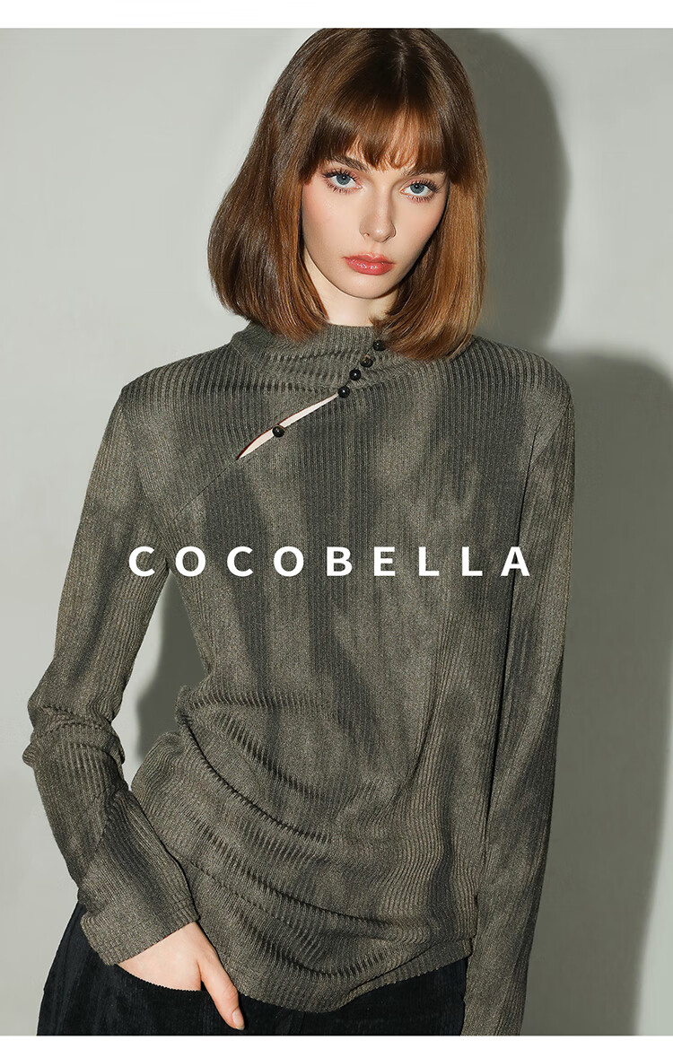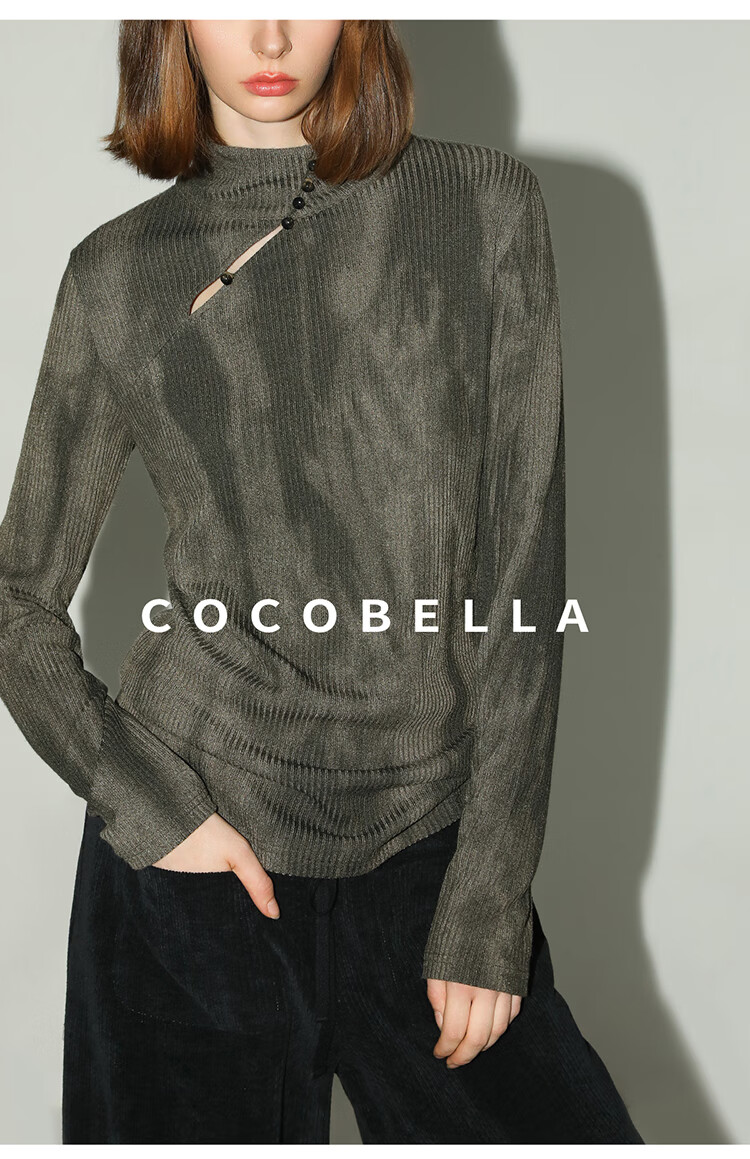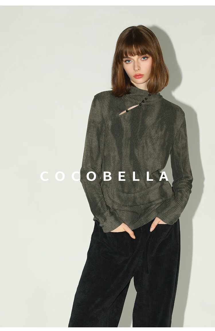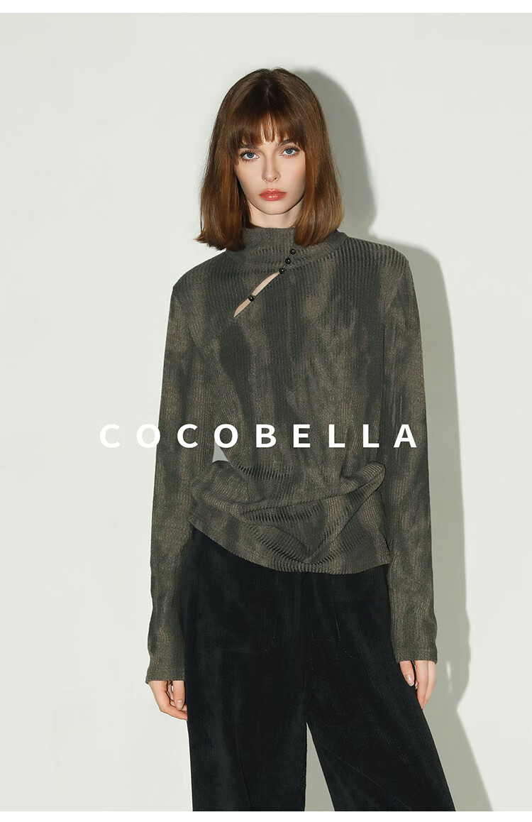 【秒杀】COCOBELLA新中式扎染针织衫设计感温柔气质高领打底衫TS7062