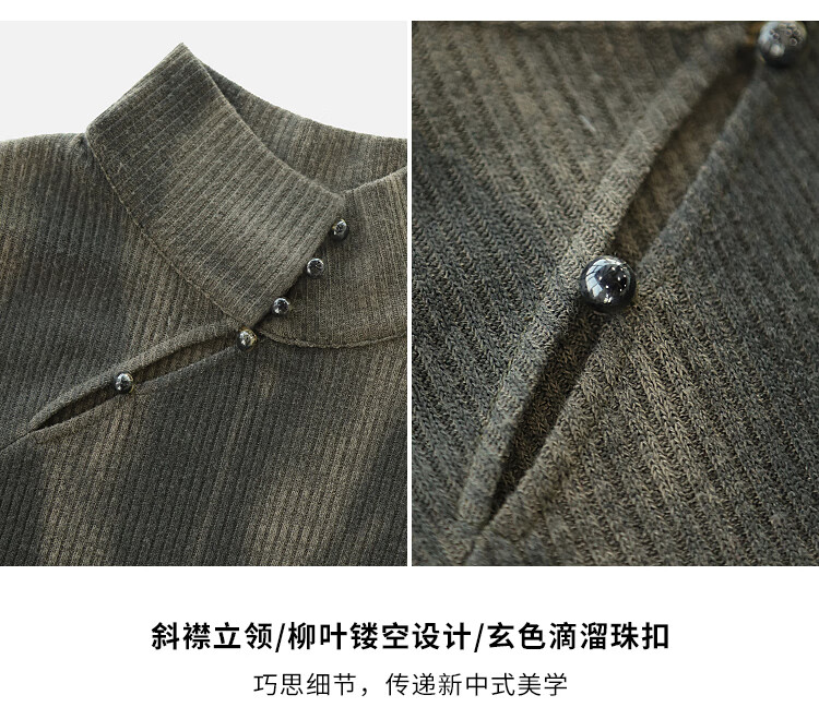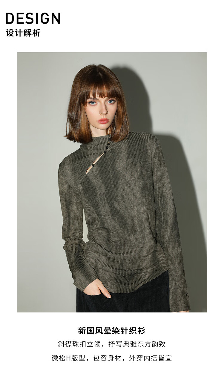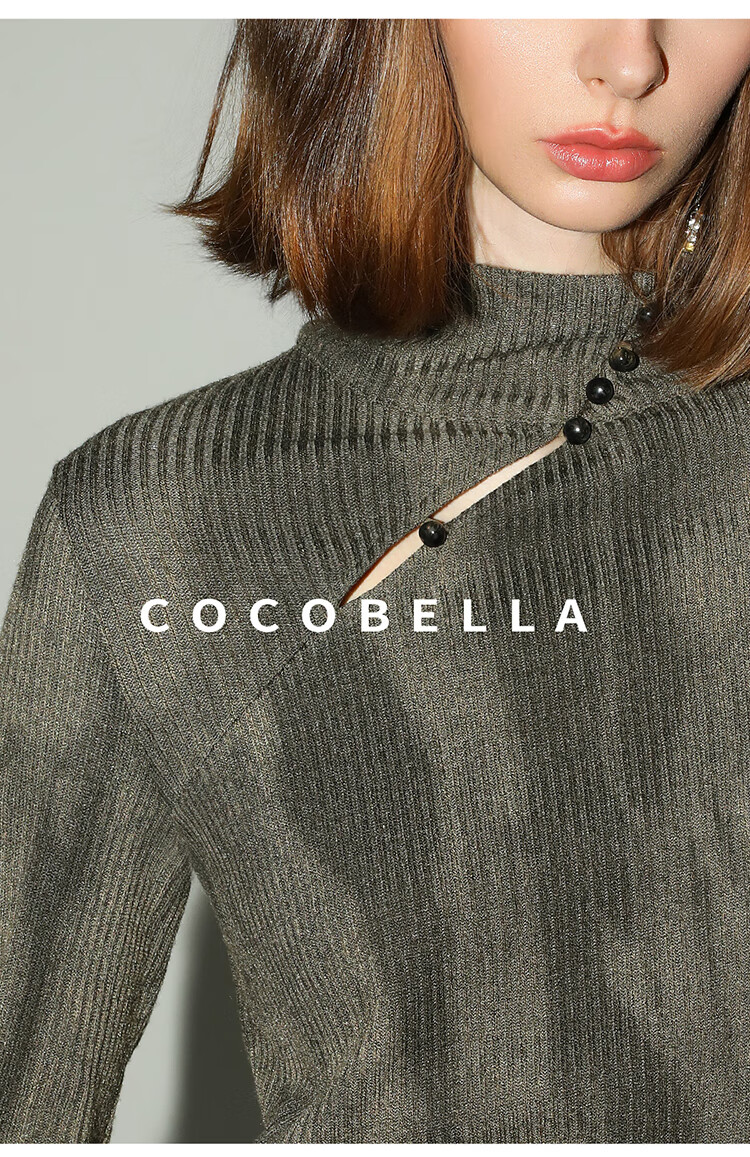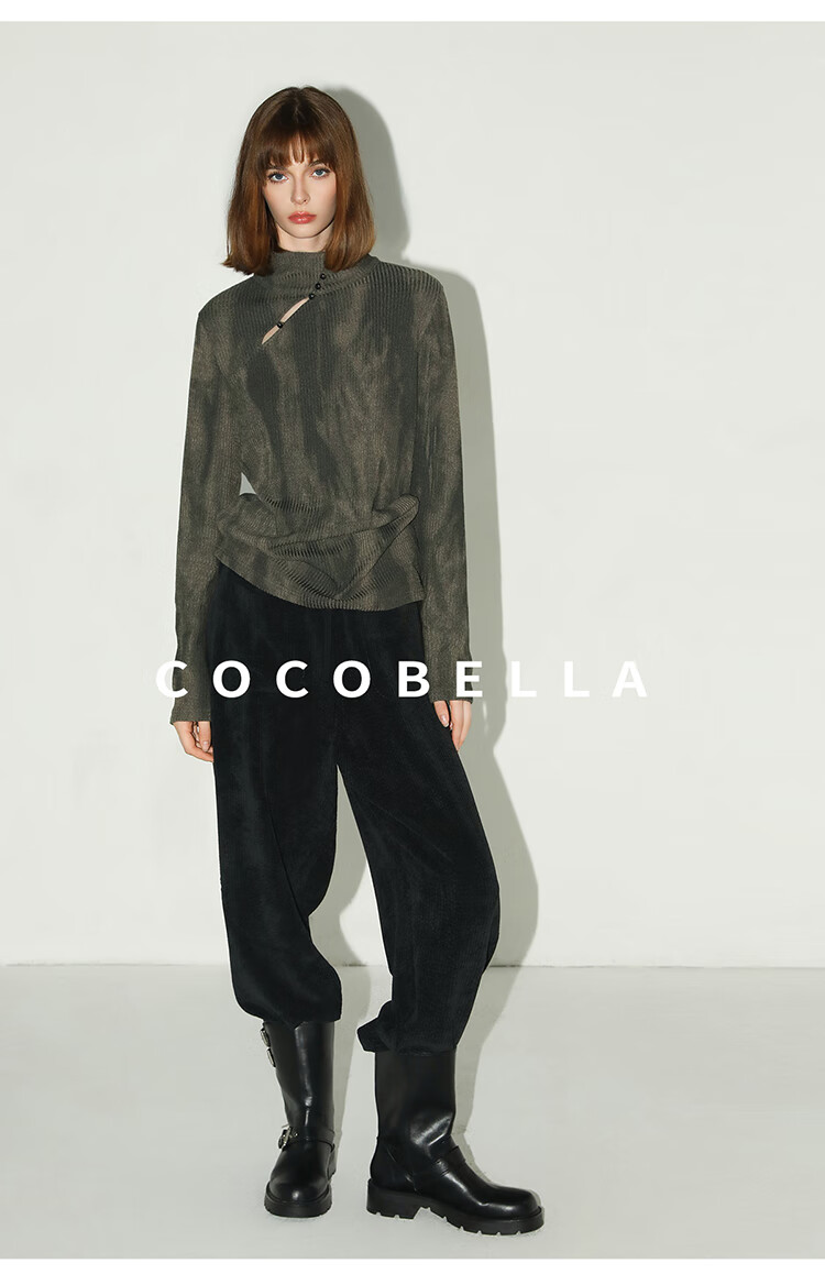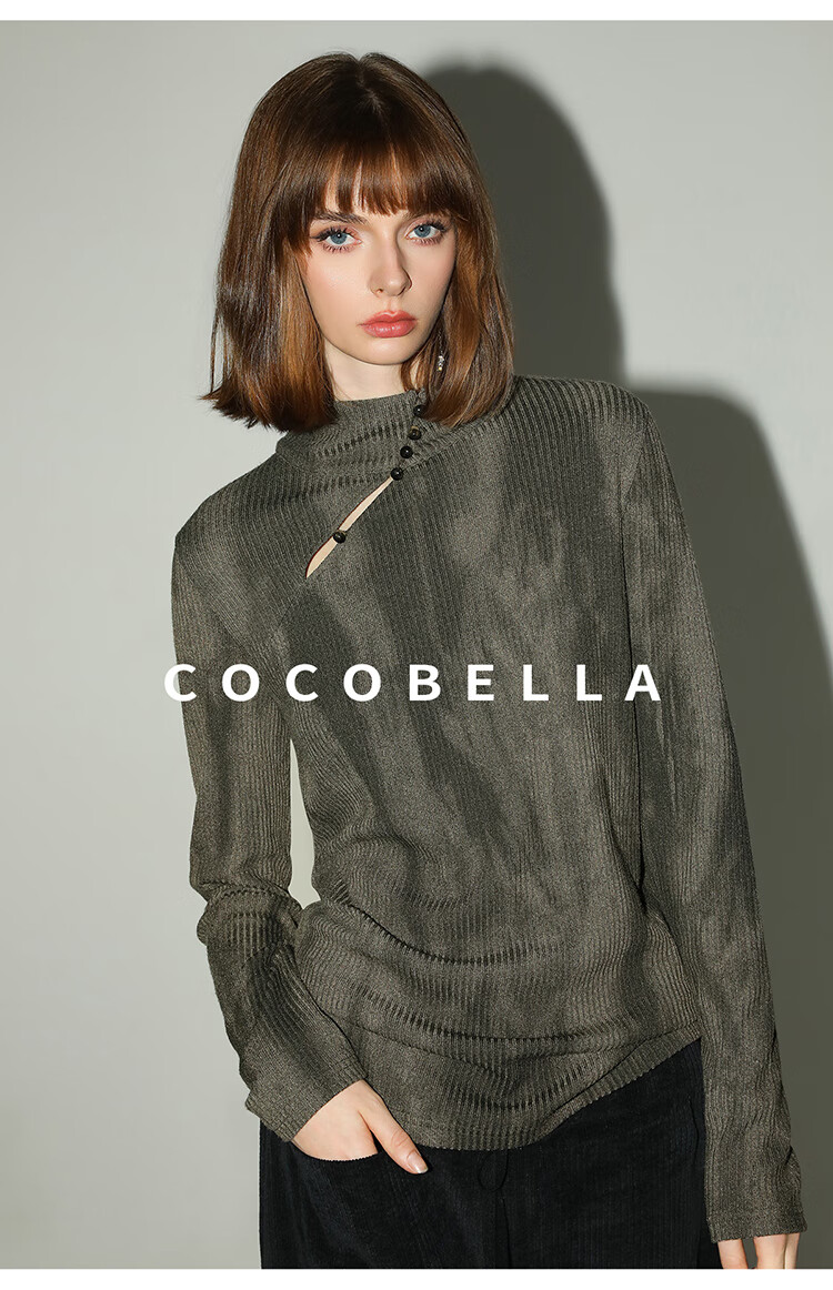 【秒杀】COCOBELLA新中式扎染针织衫设计感温柔气质高领打底衫TS7062