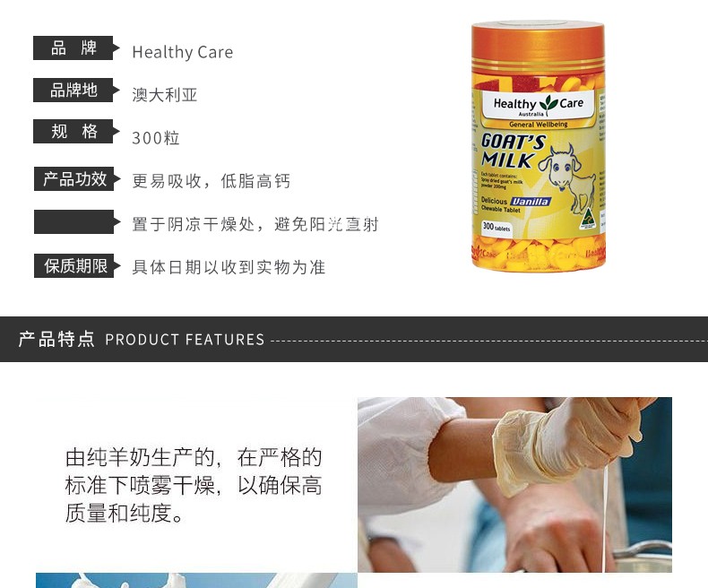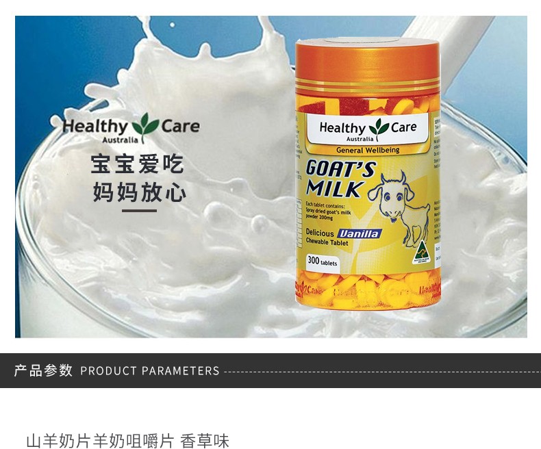 HealthyCare 羊奶片补钙咀嚼片300粒 香草味 澳大利亚