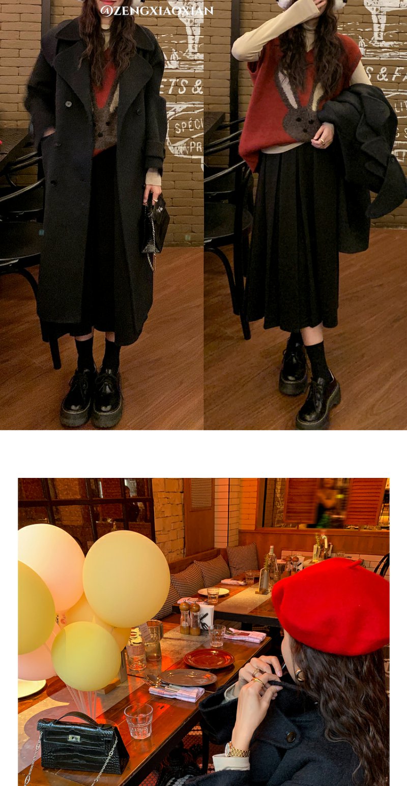 <曾小咸推荐> 【暖冬季宠爱】黑色大衣+红色马甲