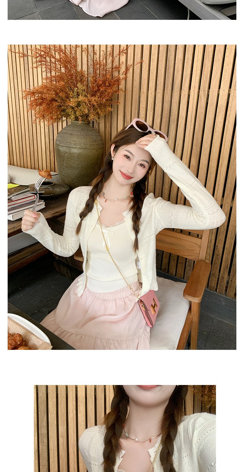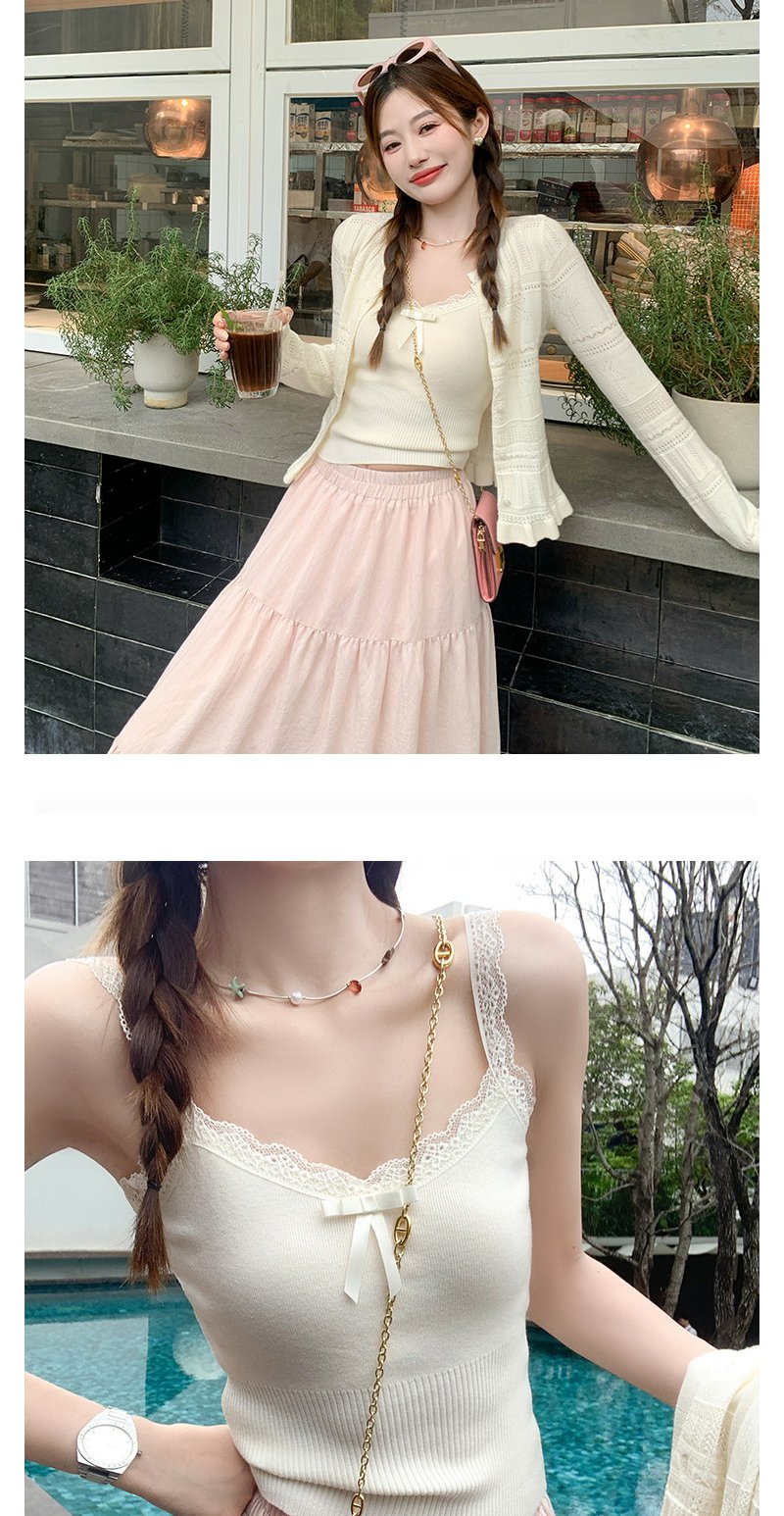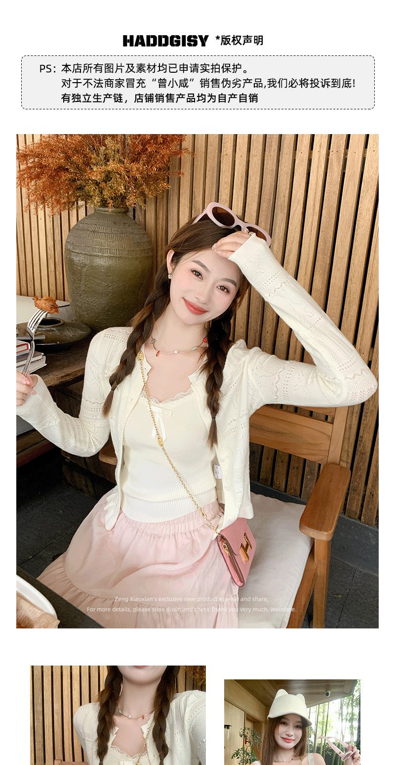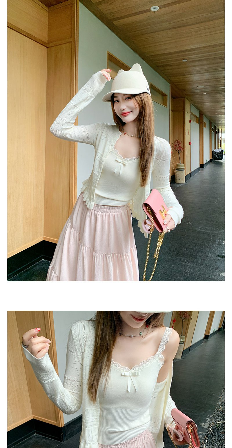 <曾小咸推荐> 白色毛织开衫吊带背心两件套
