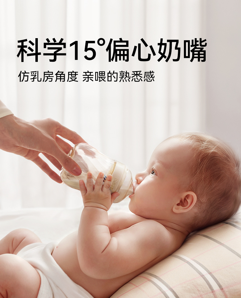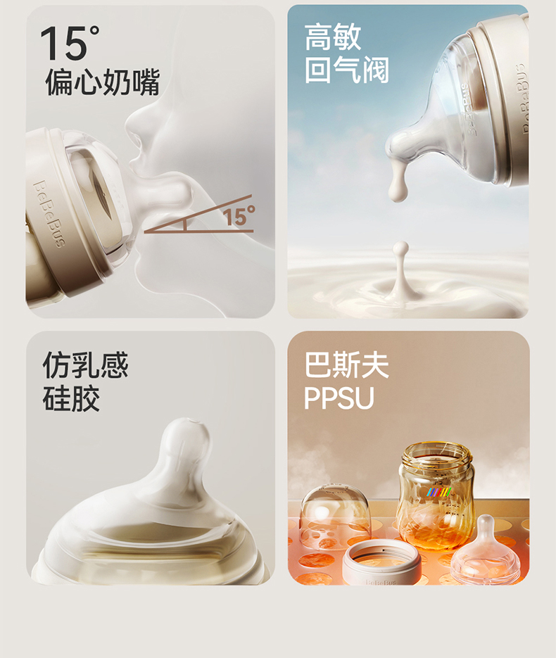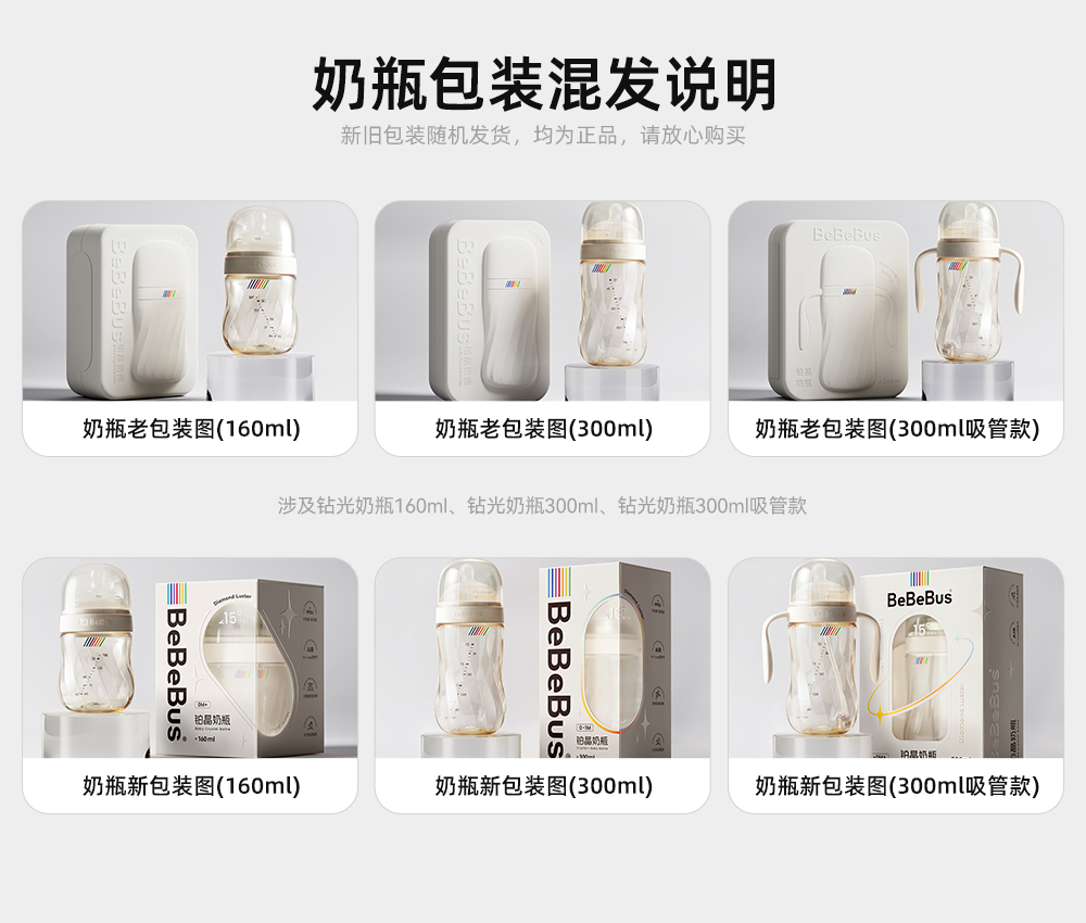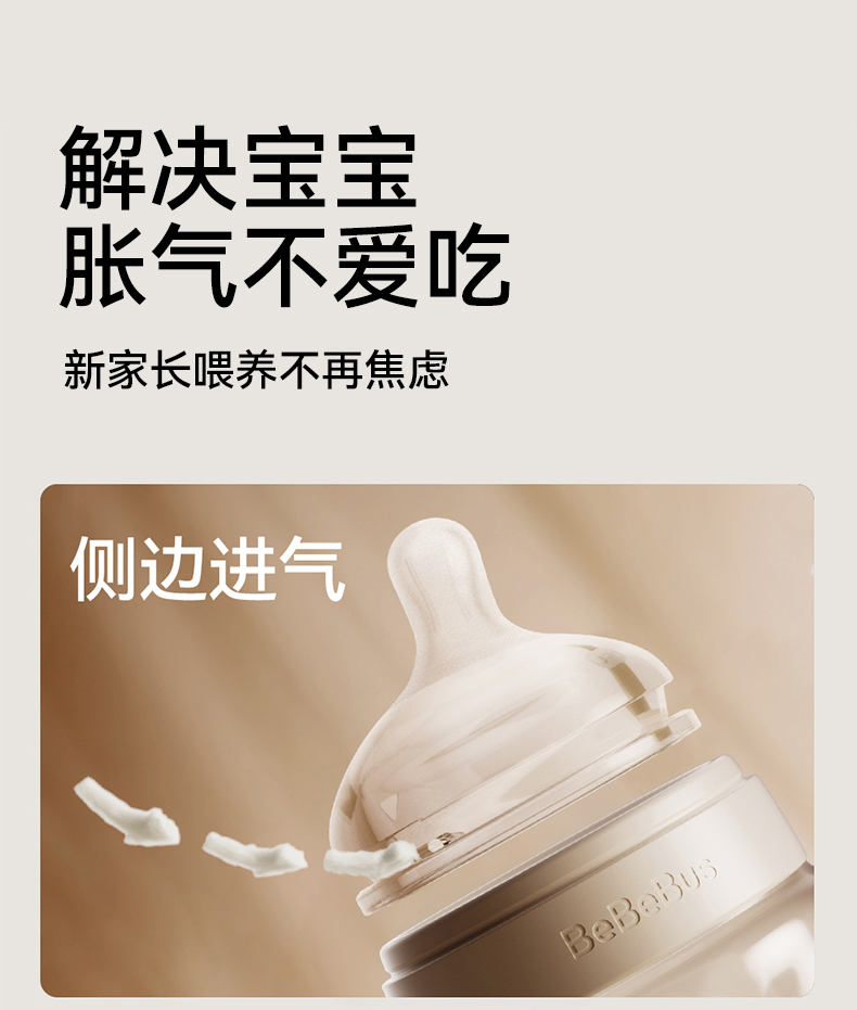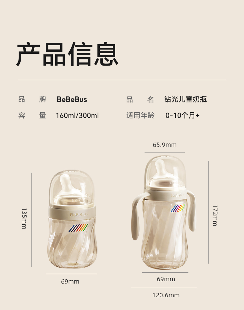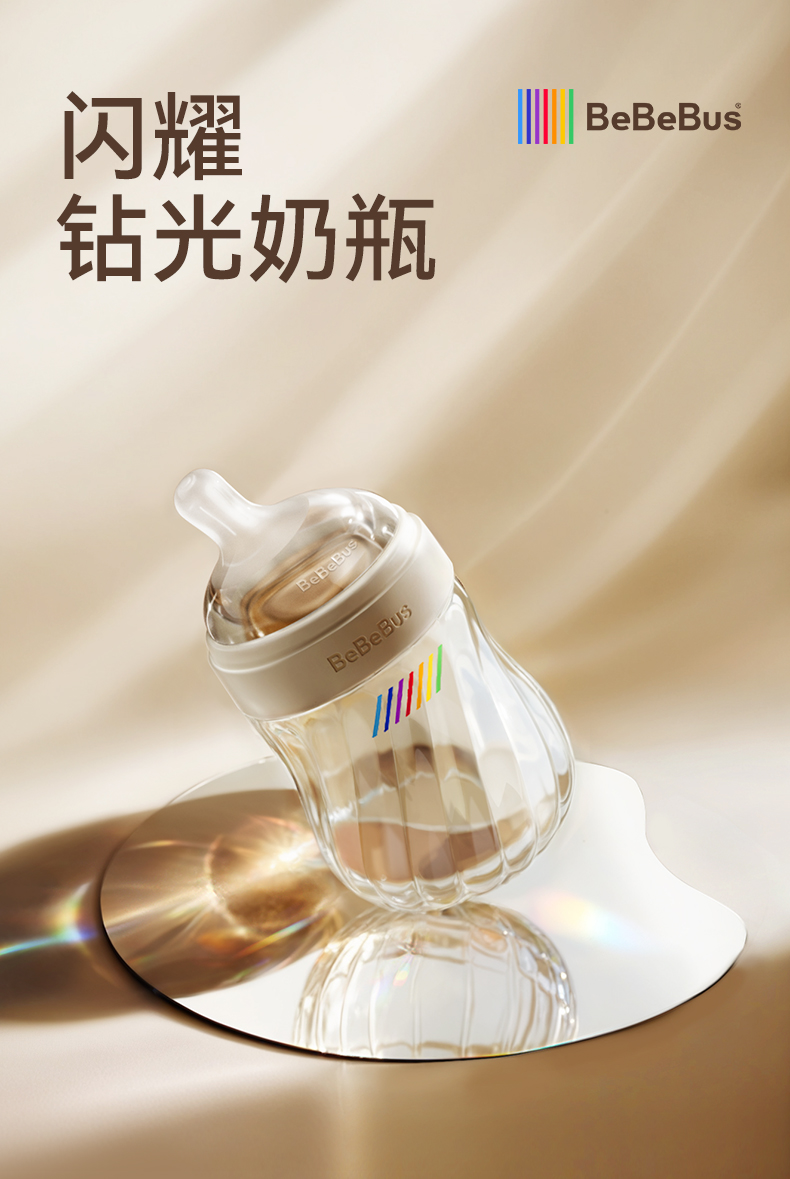 BeBeBus铂晶钻光奶瓶 新生婴儿奶瓶0-3-6月以上 歪头防胀气呛奶