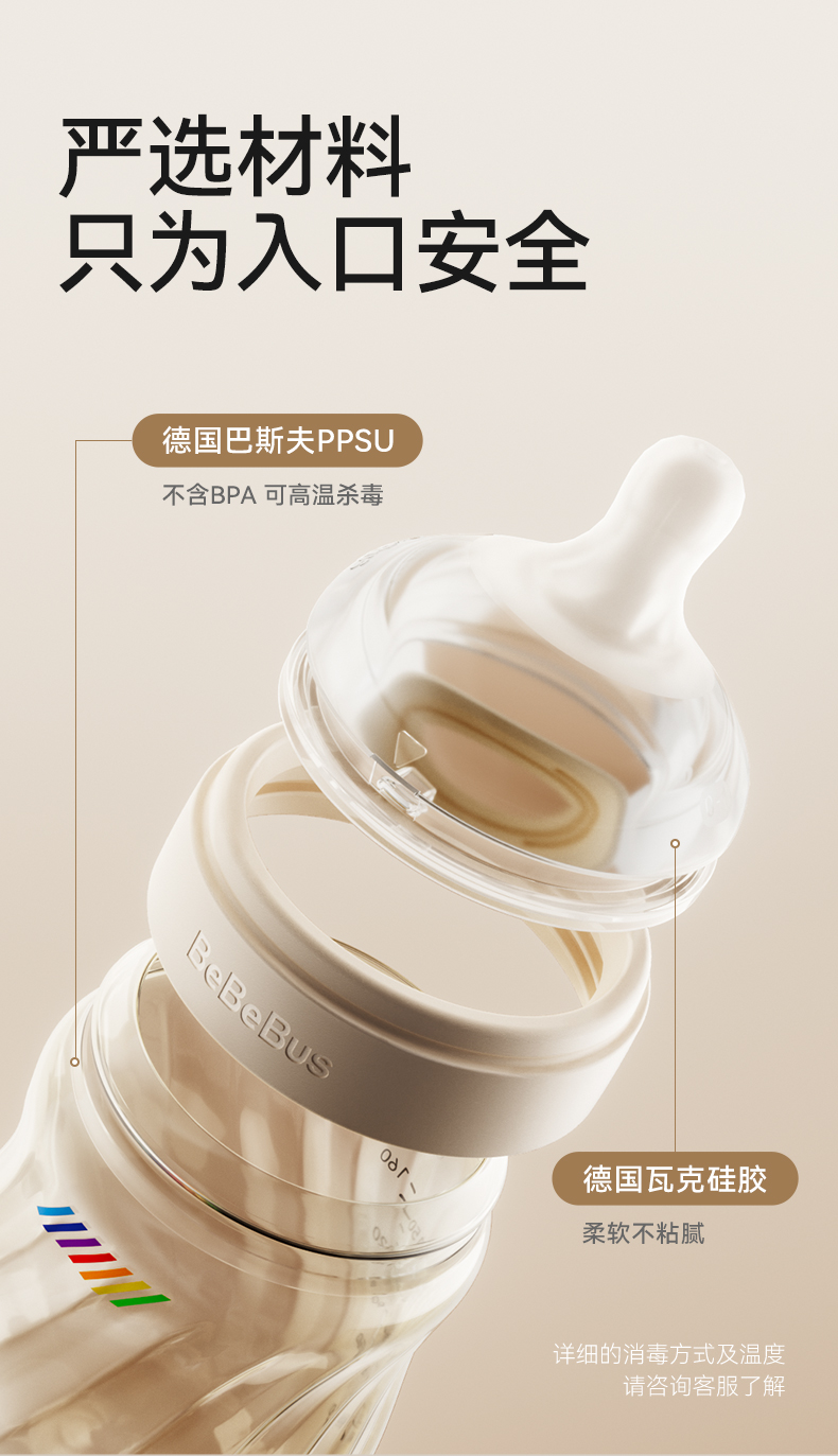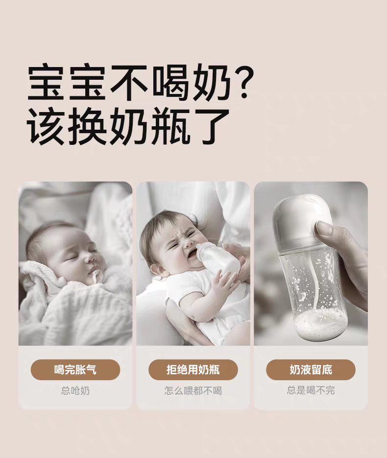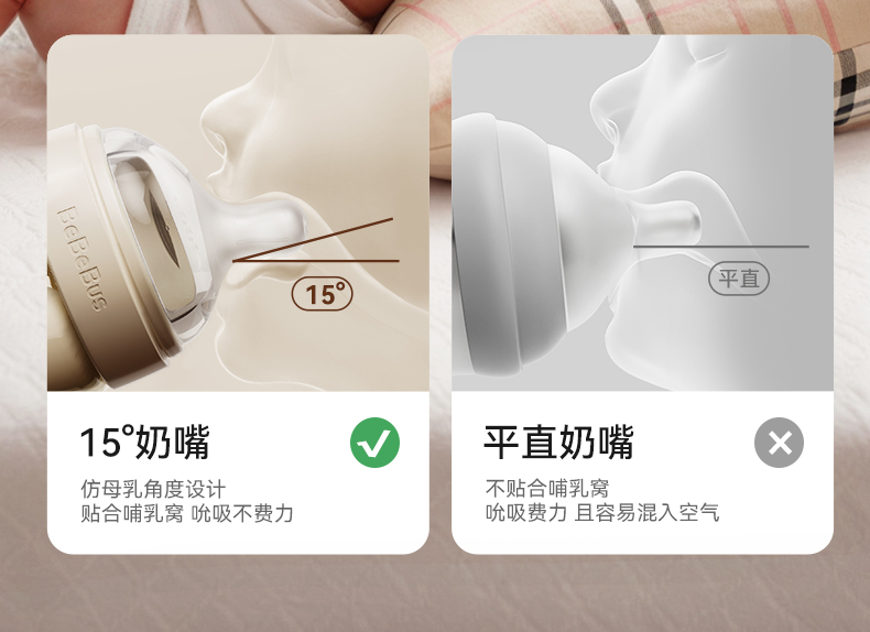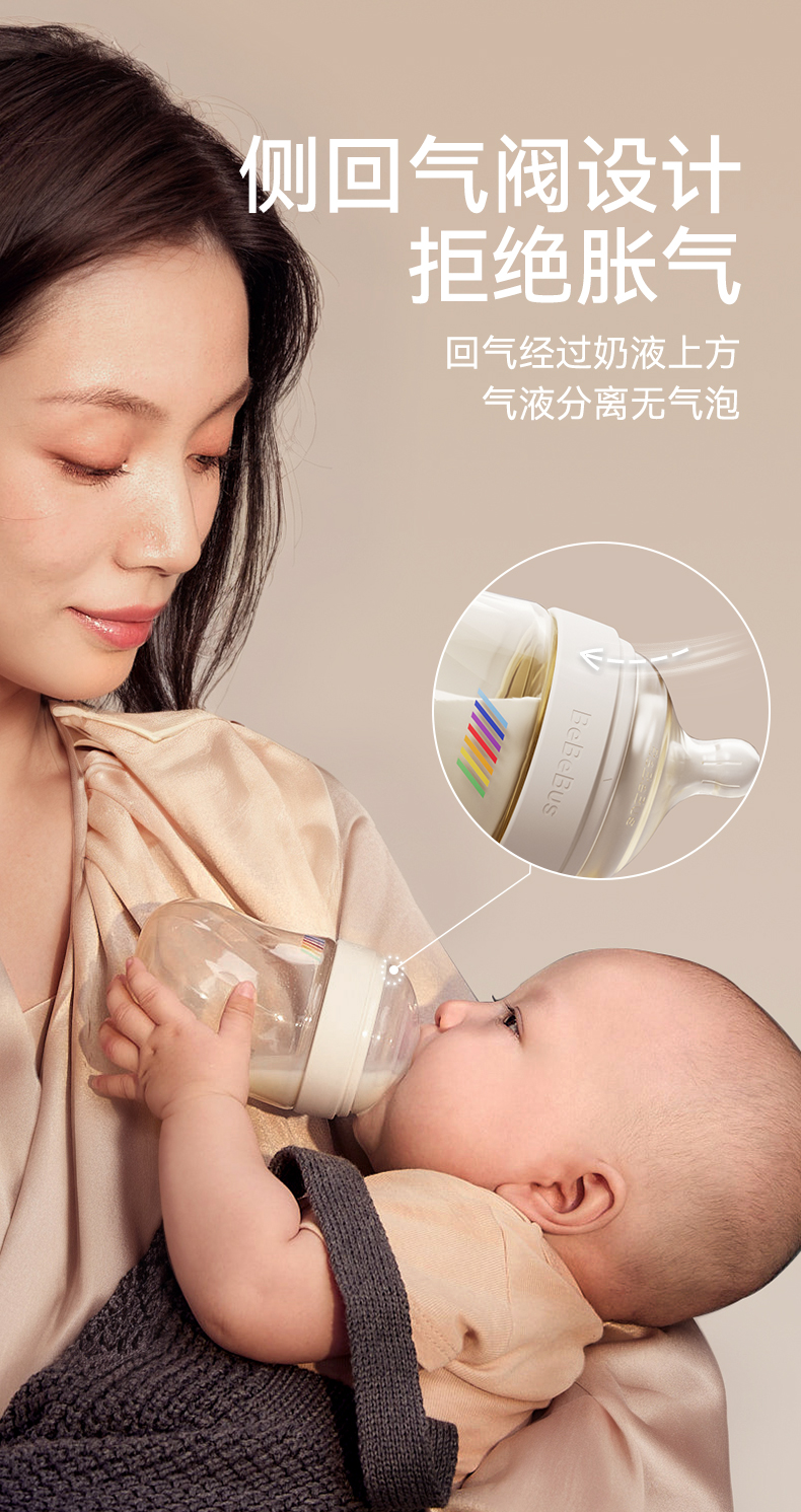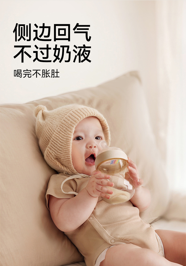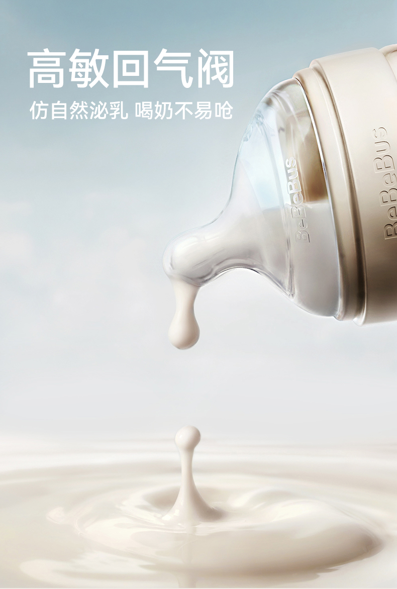 BeBeBus铂晶钻光奶瓶 新生婴儿奶瓶0-3-6月以上 歪头防胀气呛奶