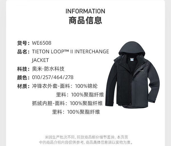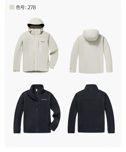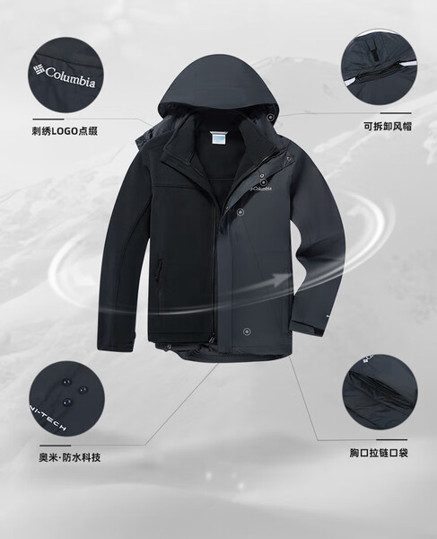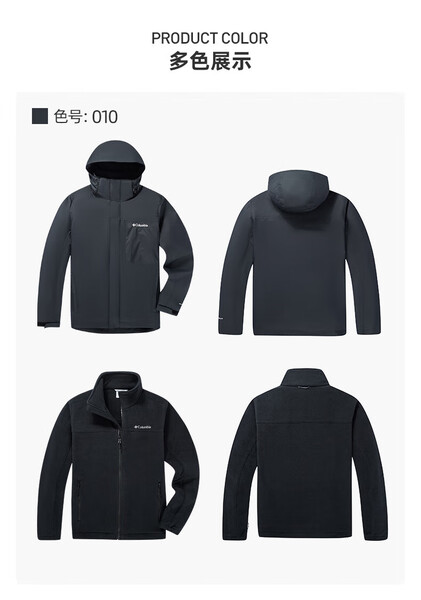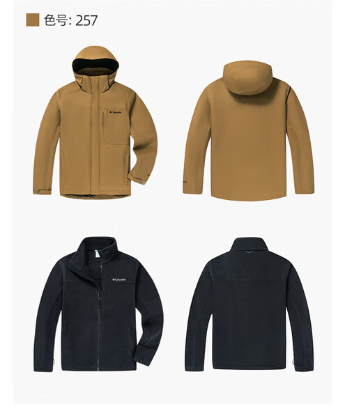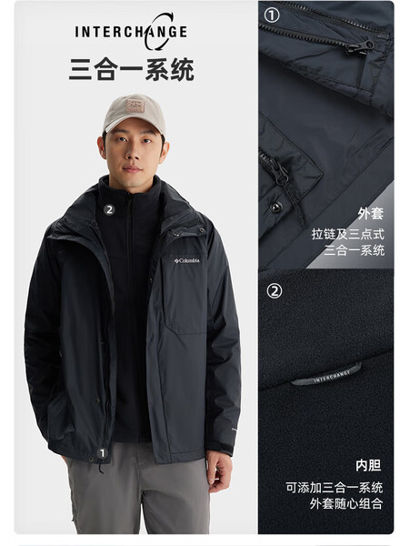 哥伦比亚男式抓绒内胆三合一外套WE6508