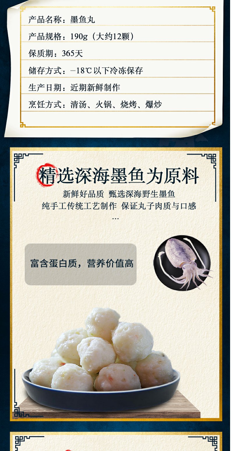 邵子牙贡丸手工墨鱼丸花枝丸纯鱼肉鱼丸火锅关东煮食材丸子冷冻