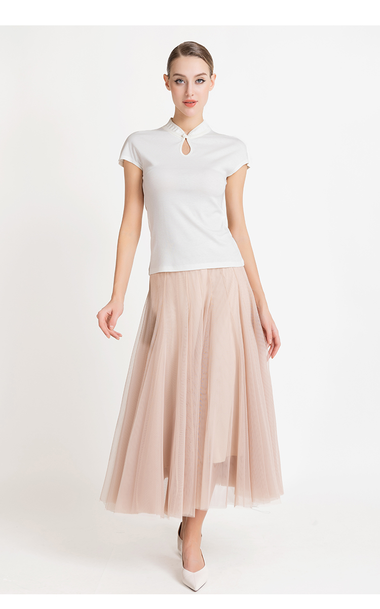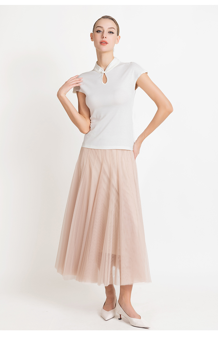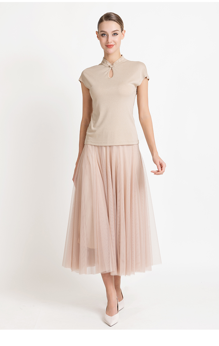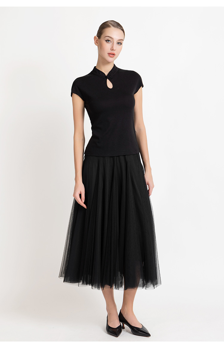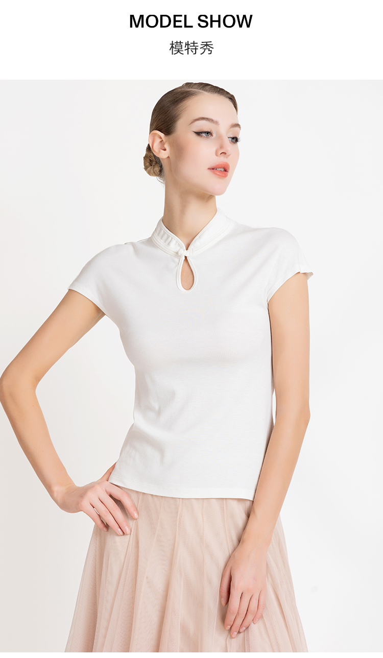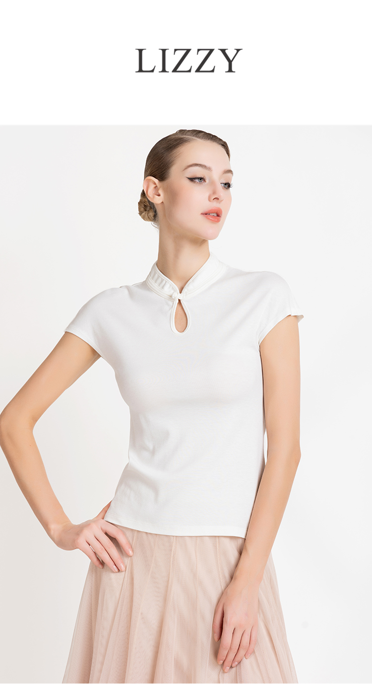 LIZZY 优雅时尚新中式国风盘扣立领百搭通勤上衣T恤8001
