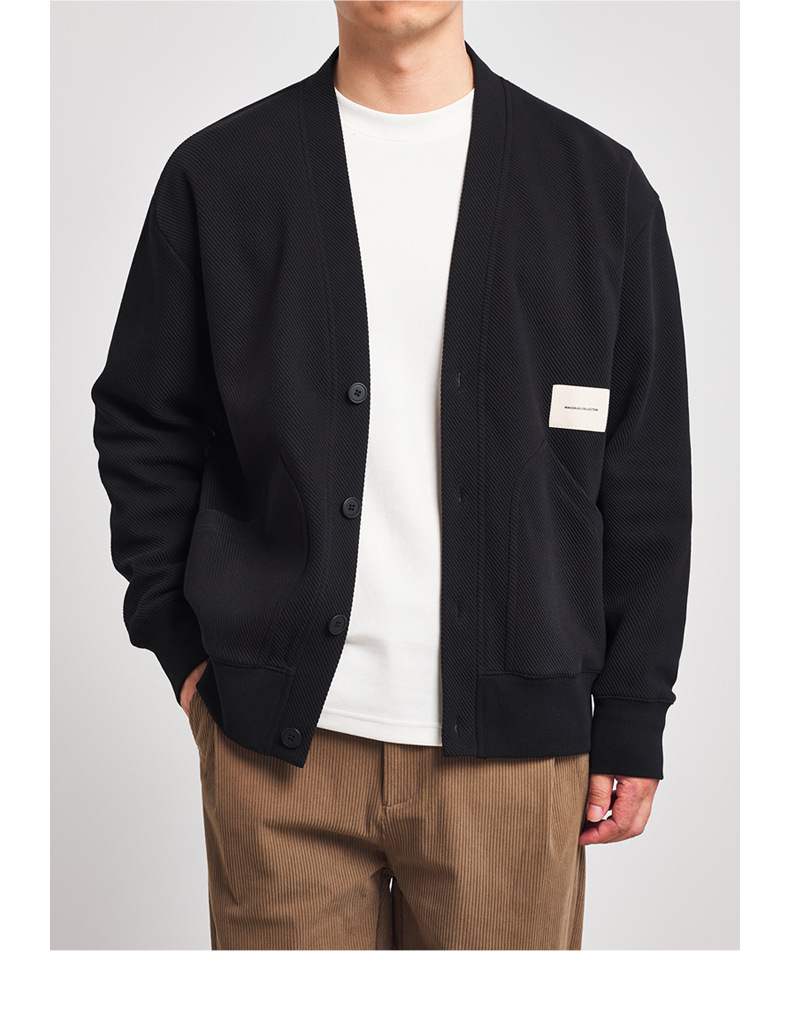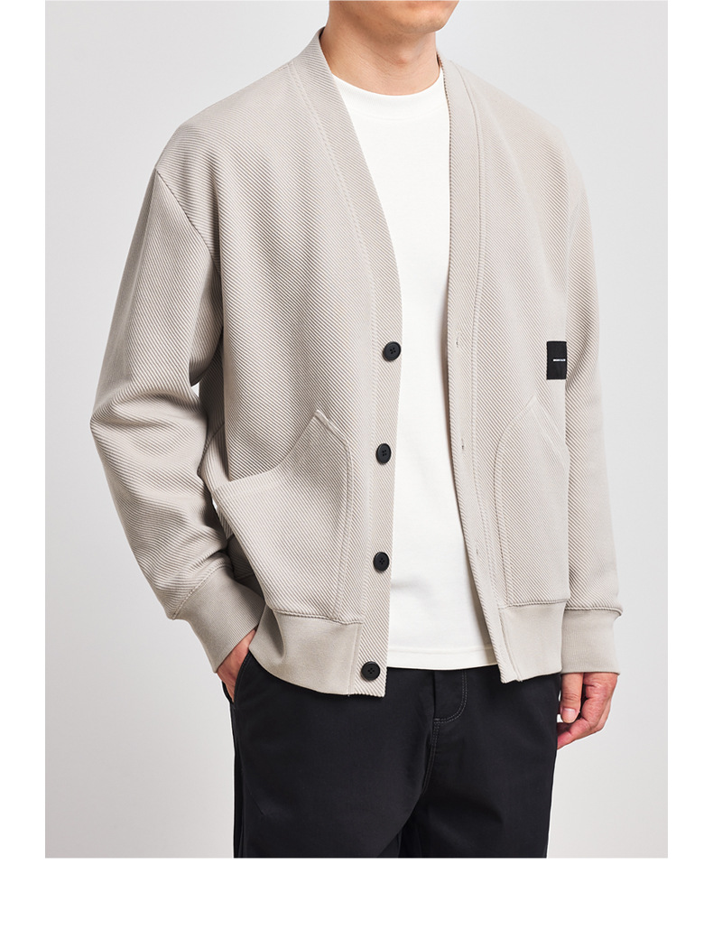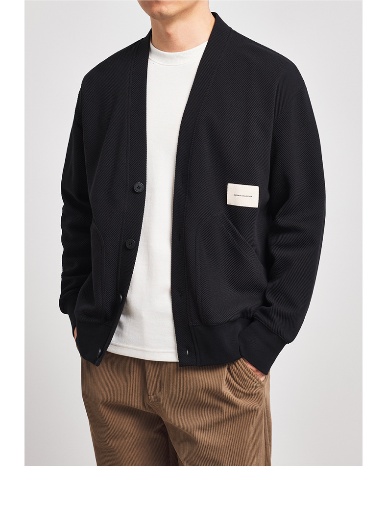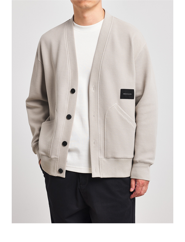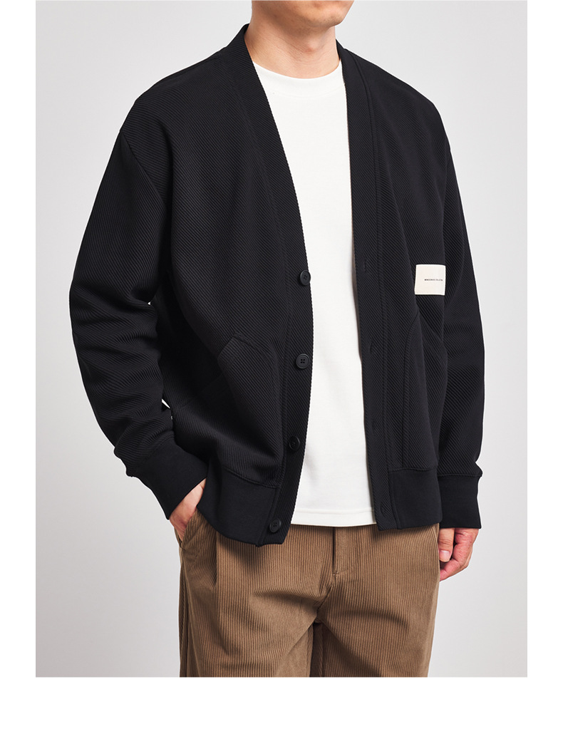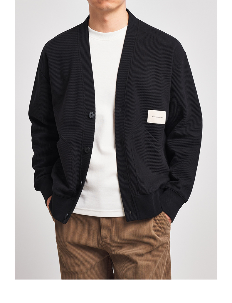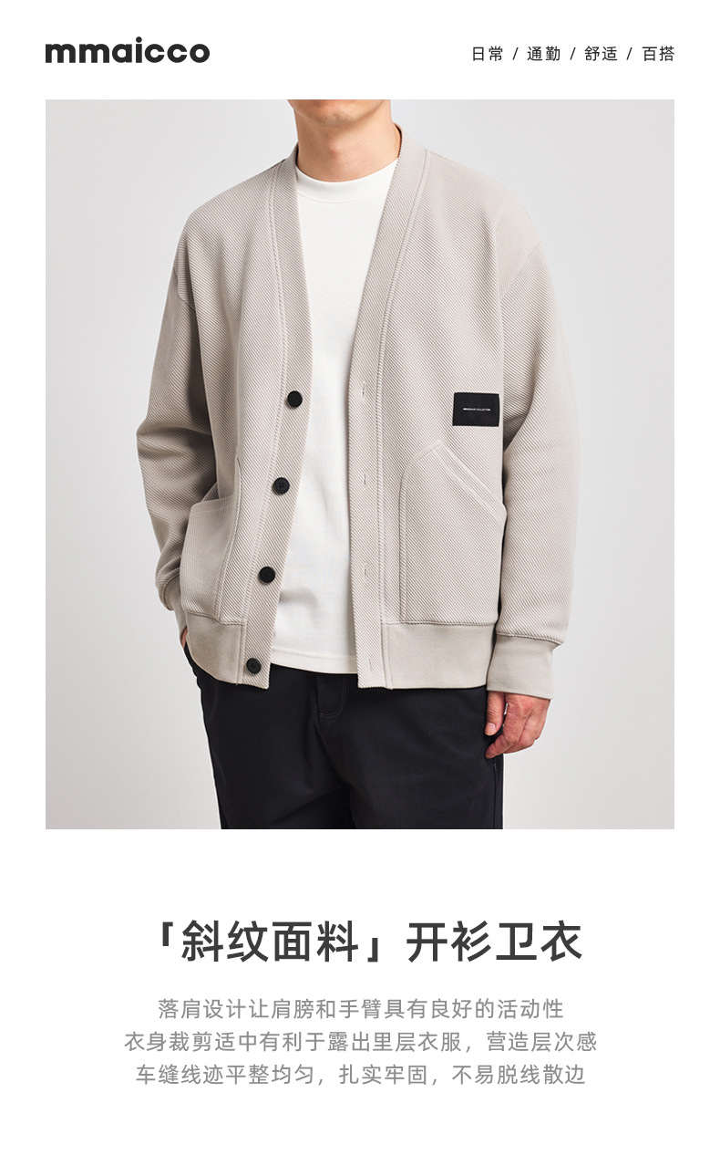 墨麦客V领斜纹肌理卫衣开衫男2023春秋季款简约男士休闲卫衣外套