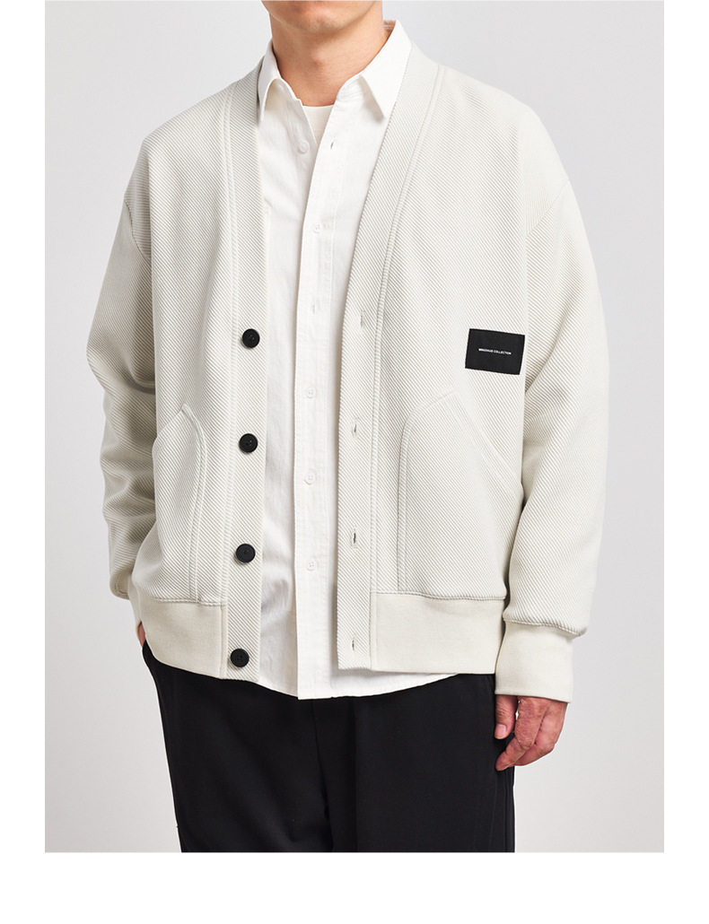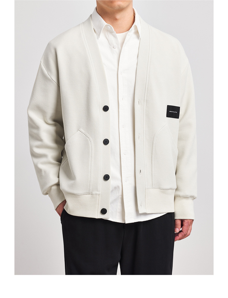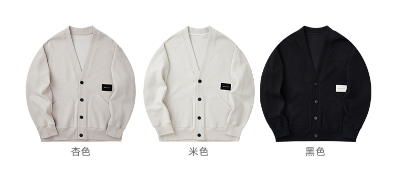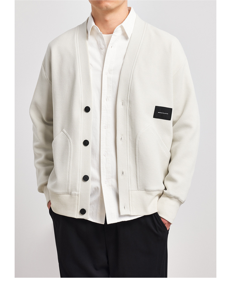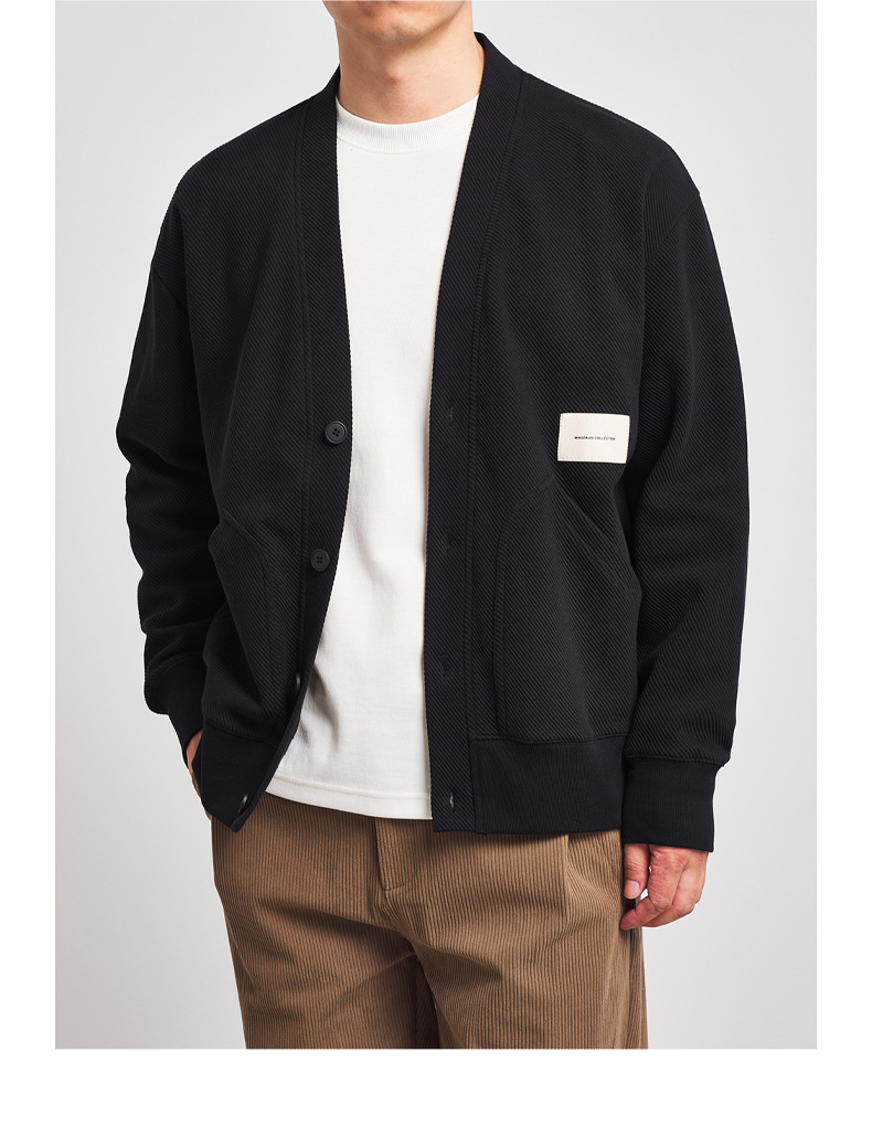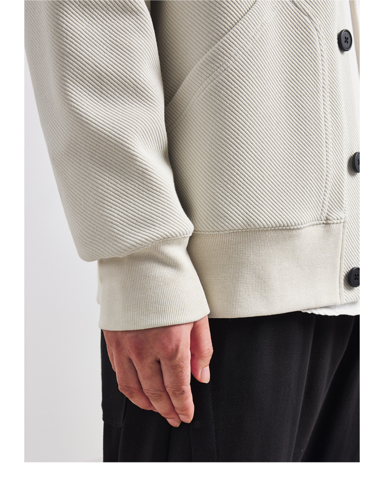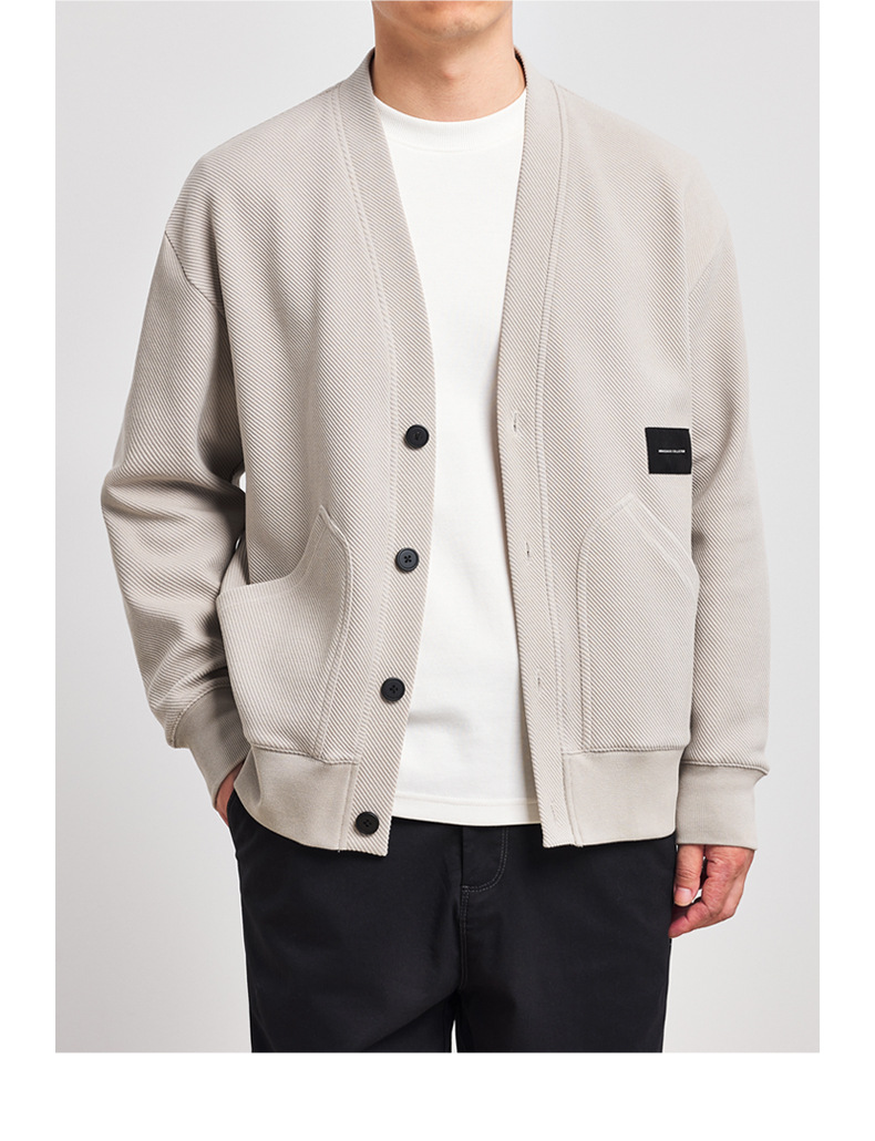 墨麦客V领斜纹肌理卫衣开衫男2023春秋季款简约男士休闲卫衣外套