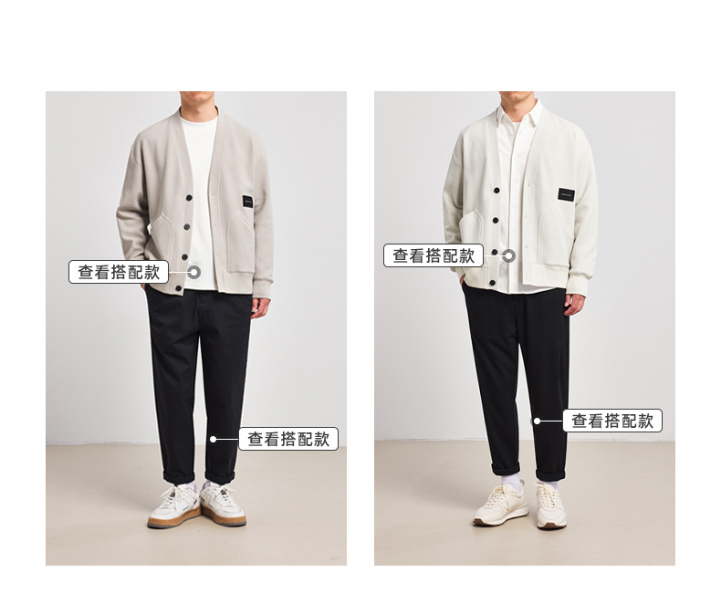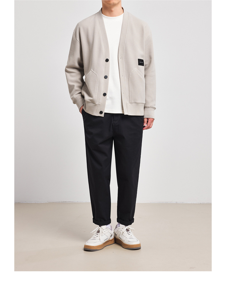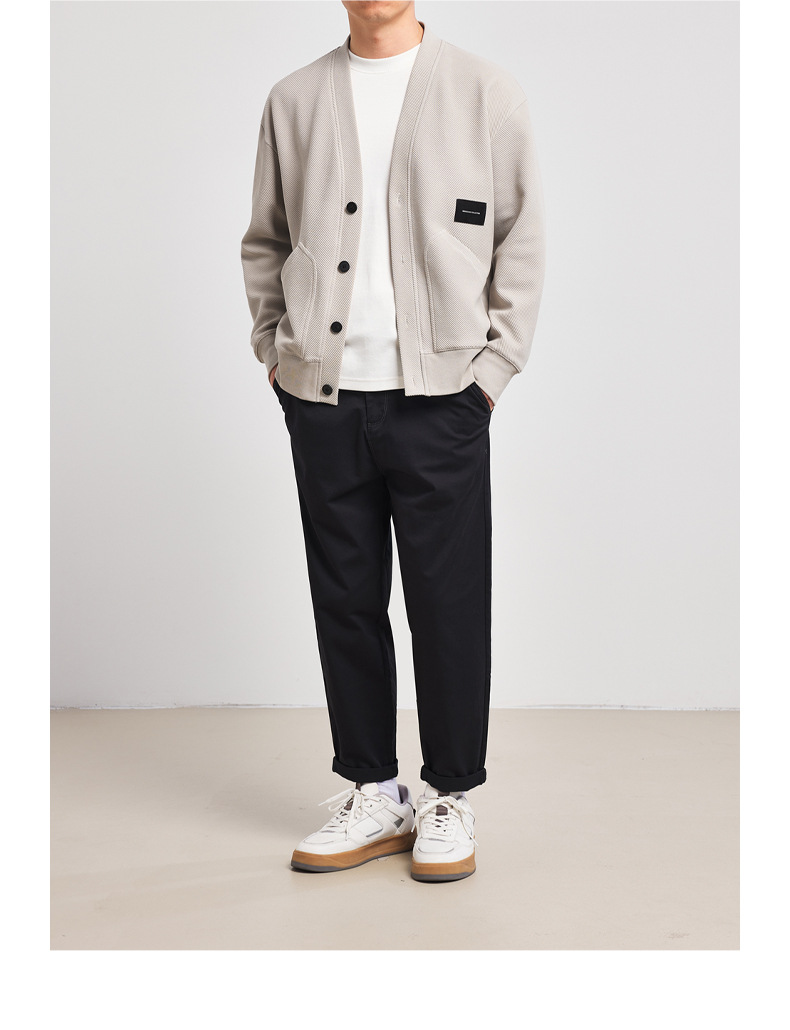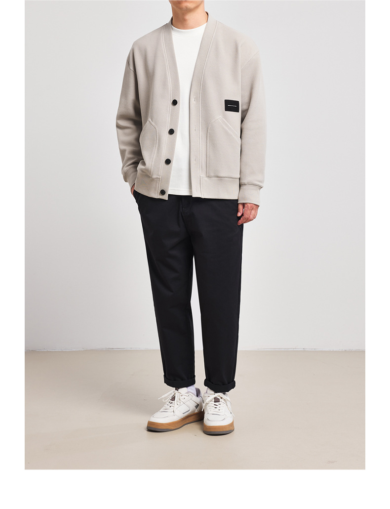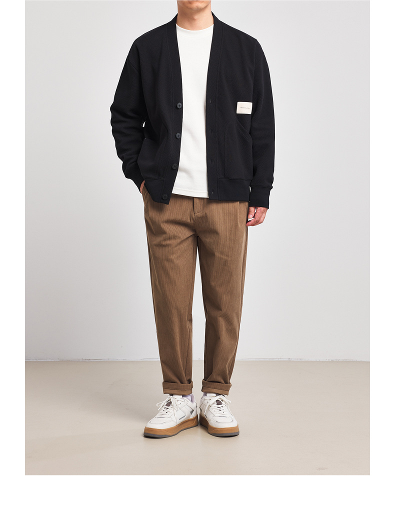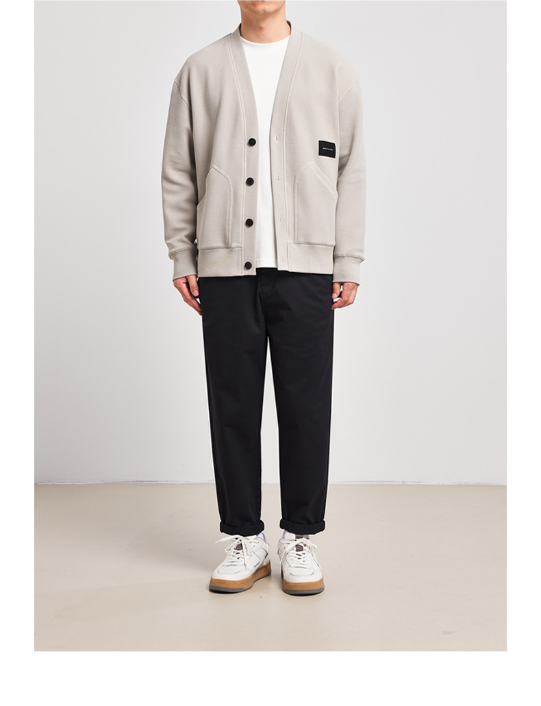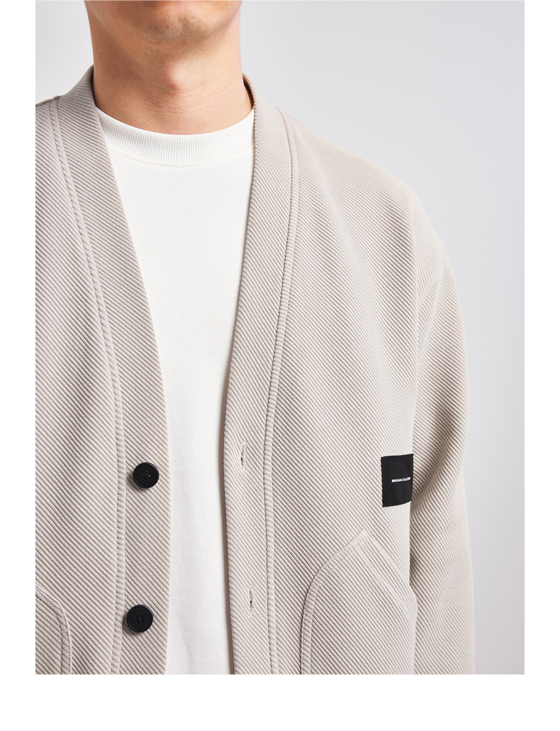墨麦客V领斜纹肌理卫衣开衫男2023春秋季款简约男士休闲卫衣外套