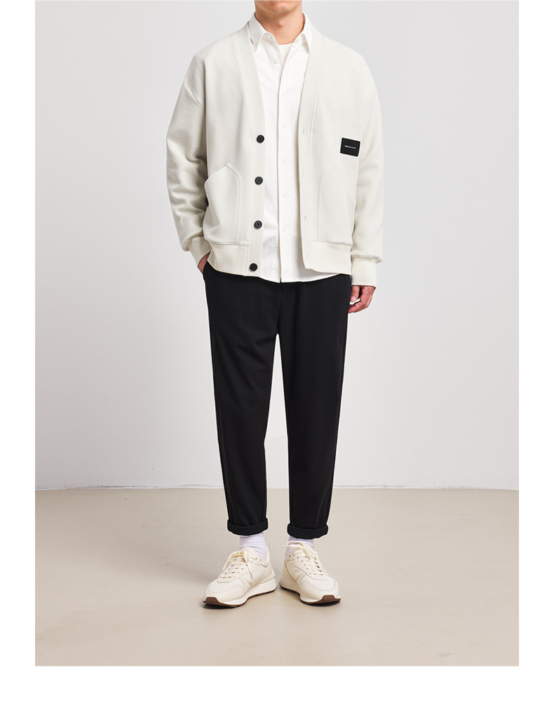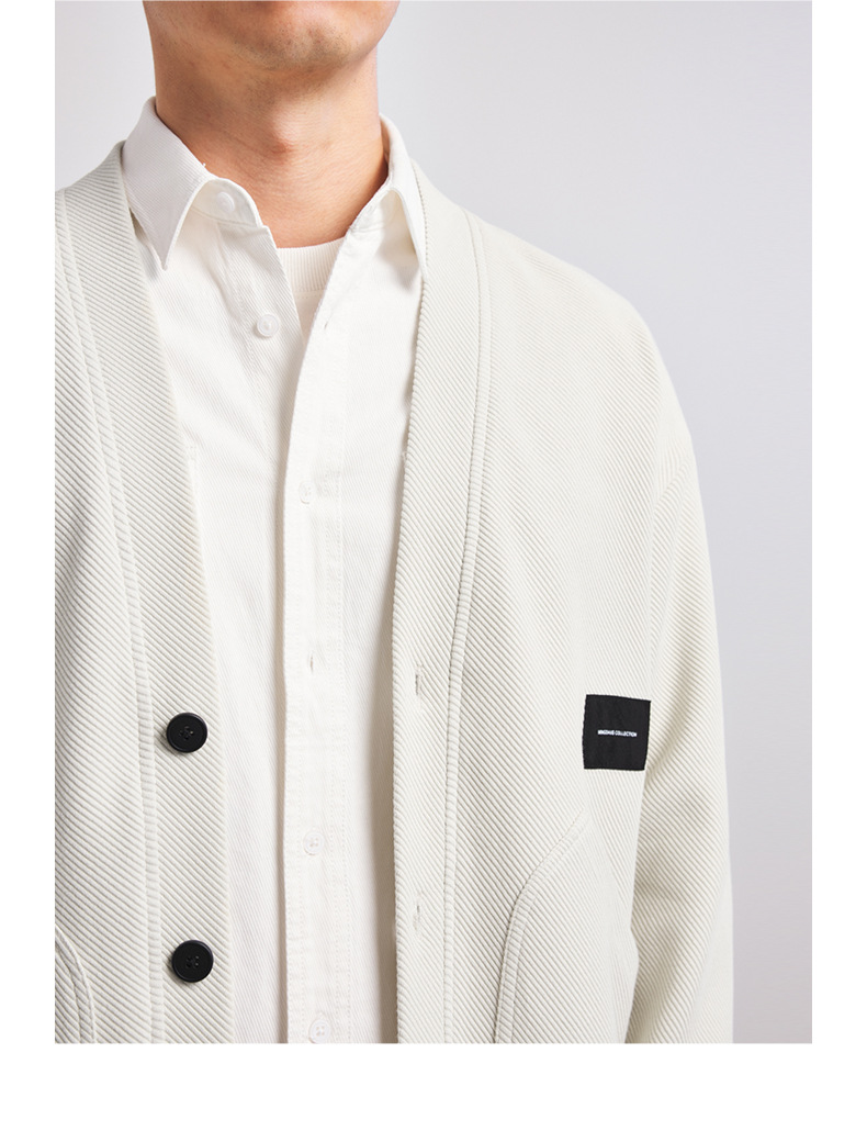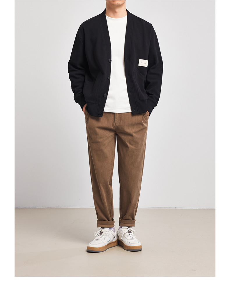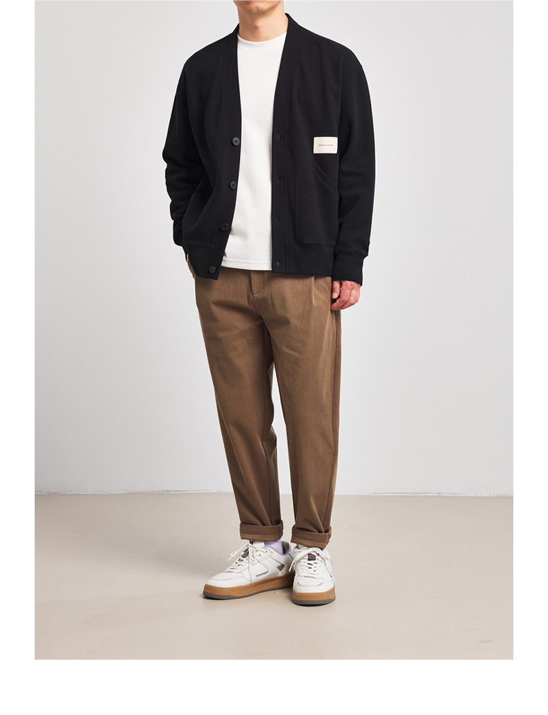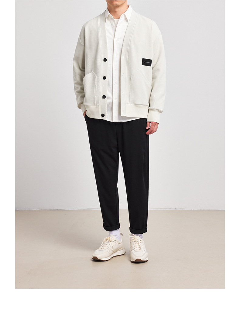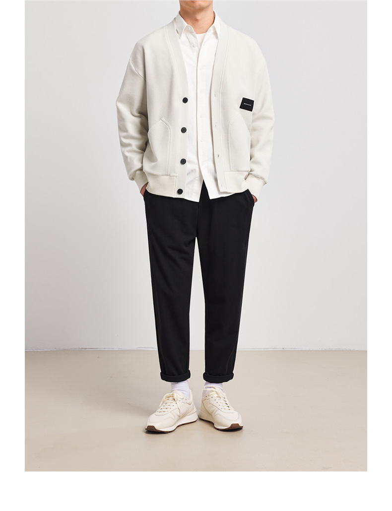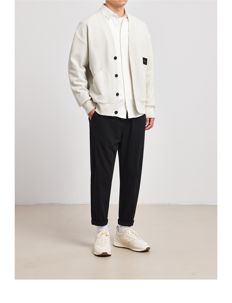 墨麦客V领斜纹肌理卫衣开衫男2023春秋季款简约男士休闲卫衣外套