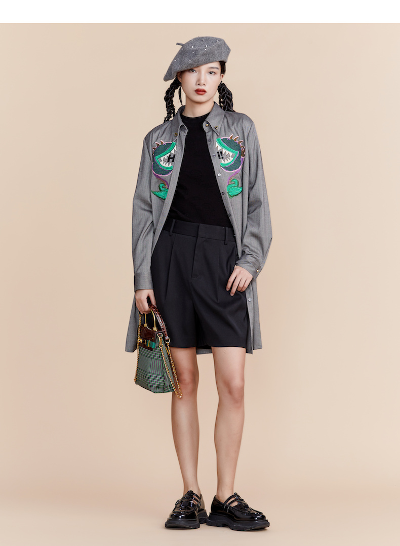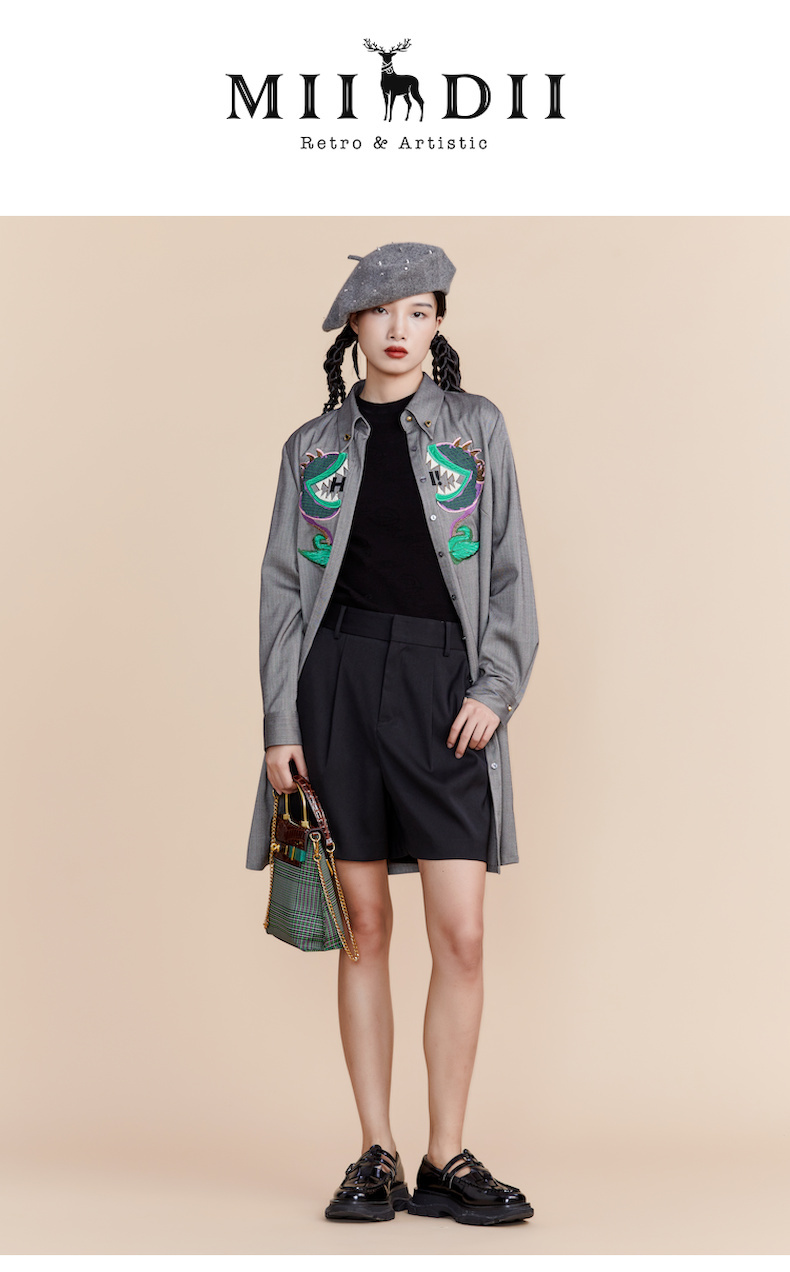 MIIDII谜底2022春新款时尚打底衫圆领刺绣套头针织衫女221MZ0370
