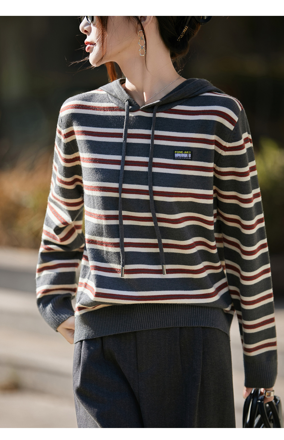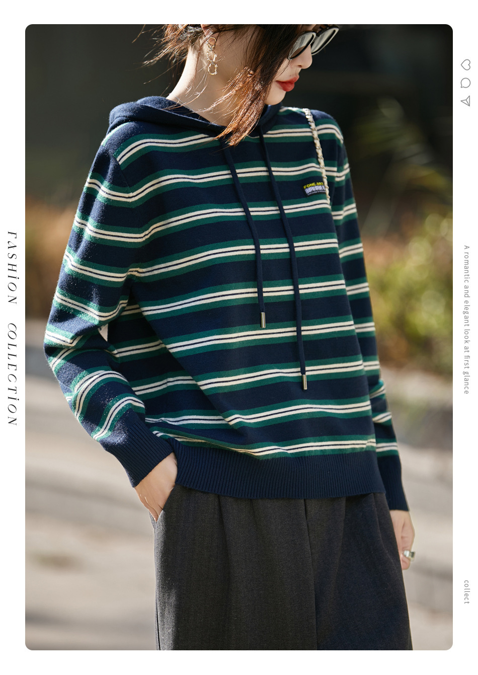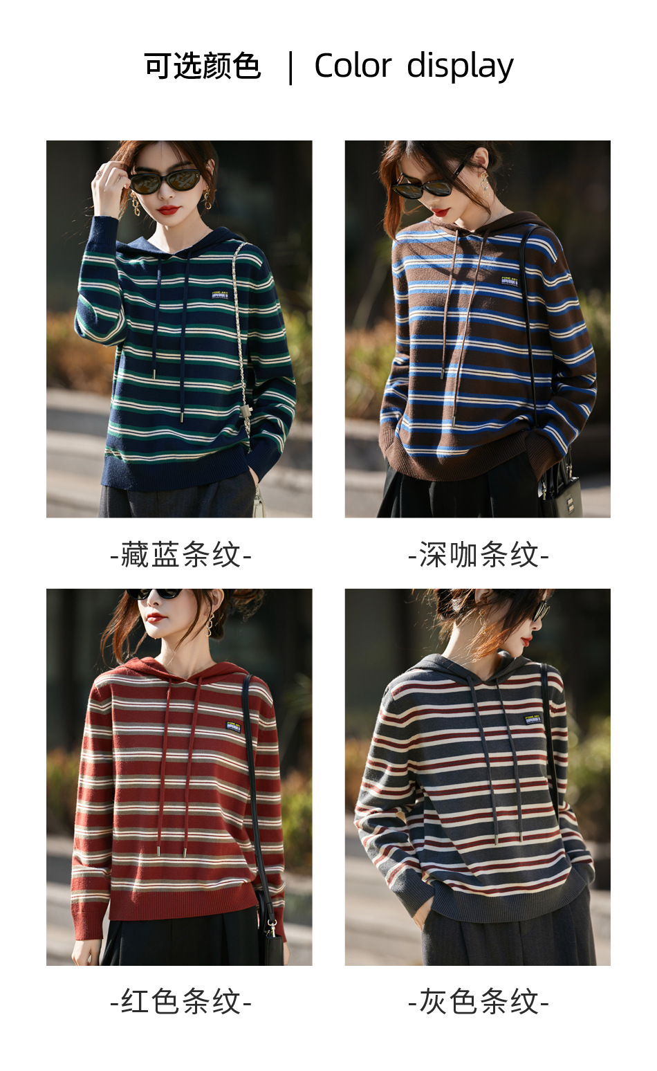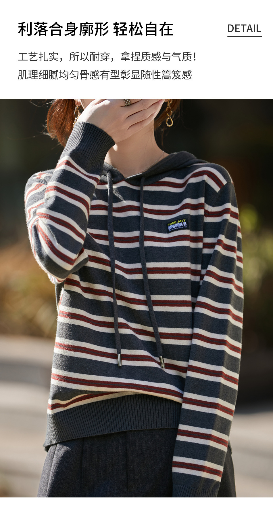 条纹针织衫女内搭外穿都有范 秋冬新款时尚宽松显瘦减龄休闲连帽长袖上衣新款新品女装