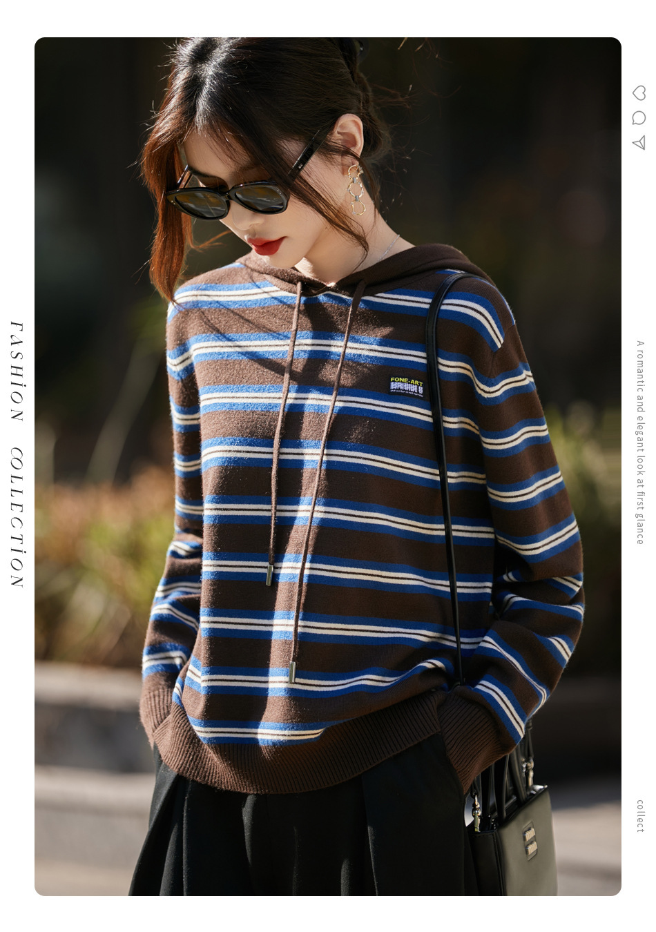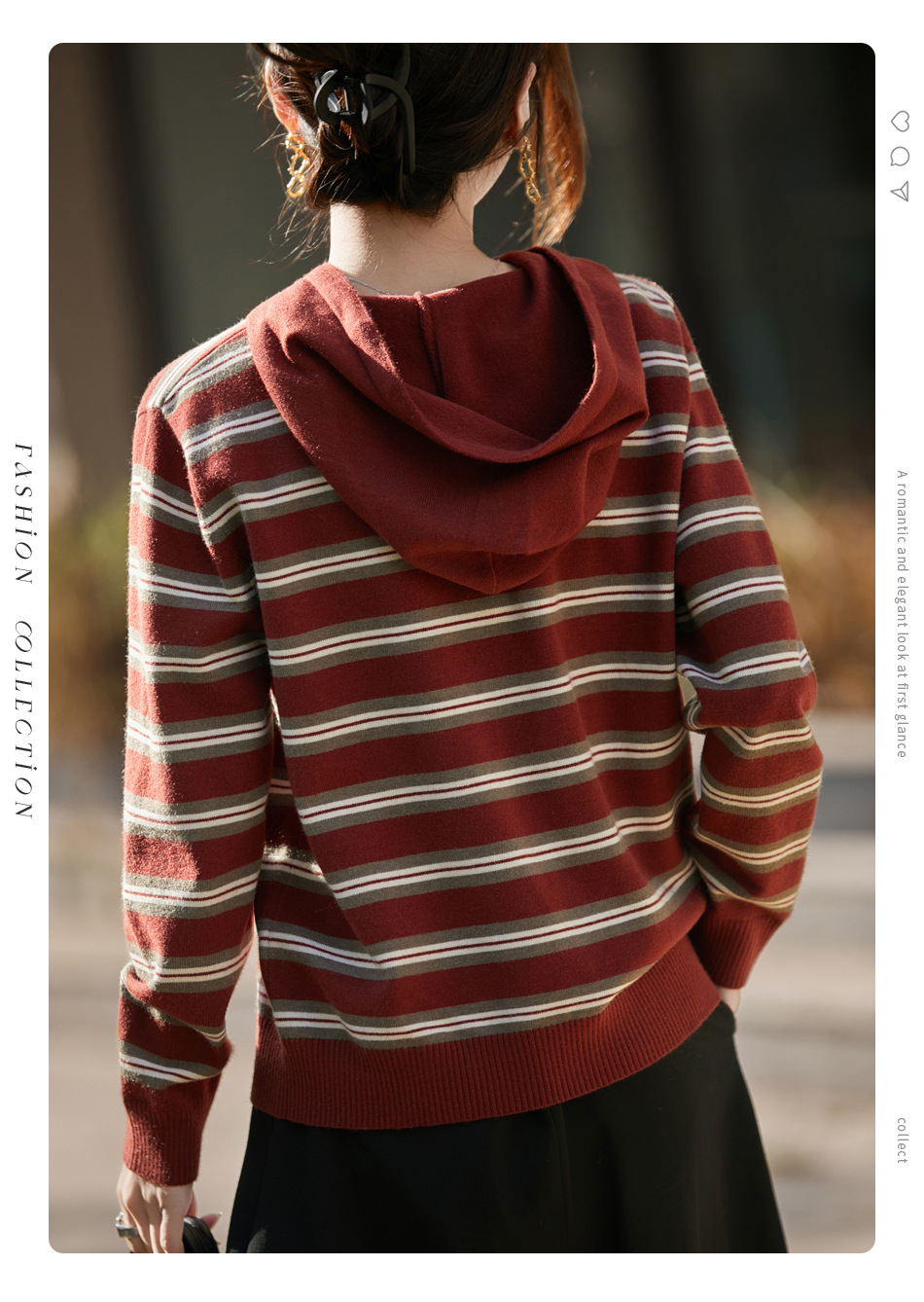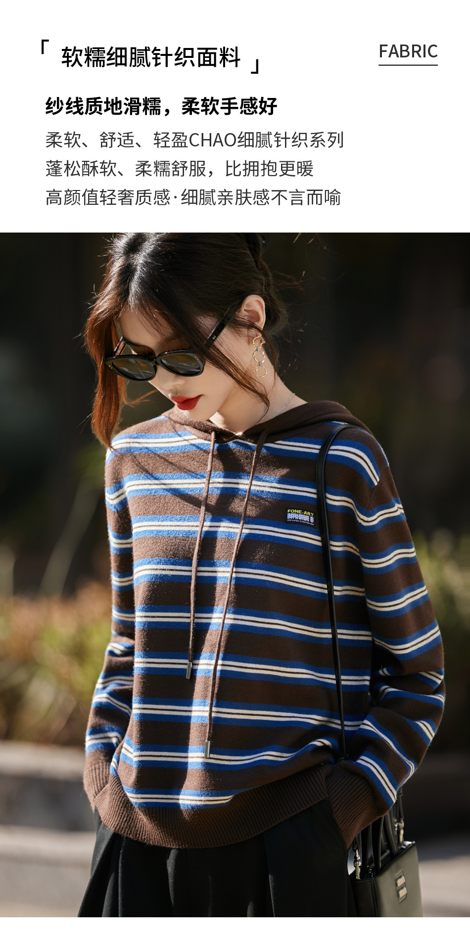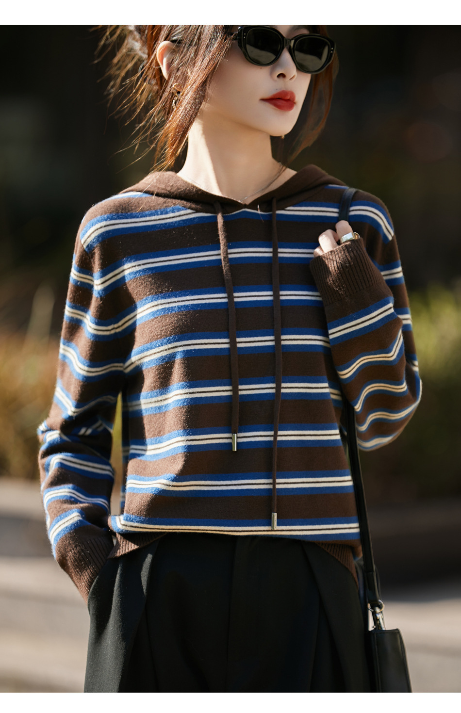 条纹针织衫女内搭外穿都有范 秋冬新款时尚宽松显瘦减龄休闲连帽长袖上衣新款新品女装
