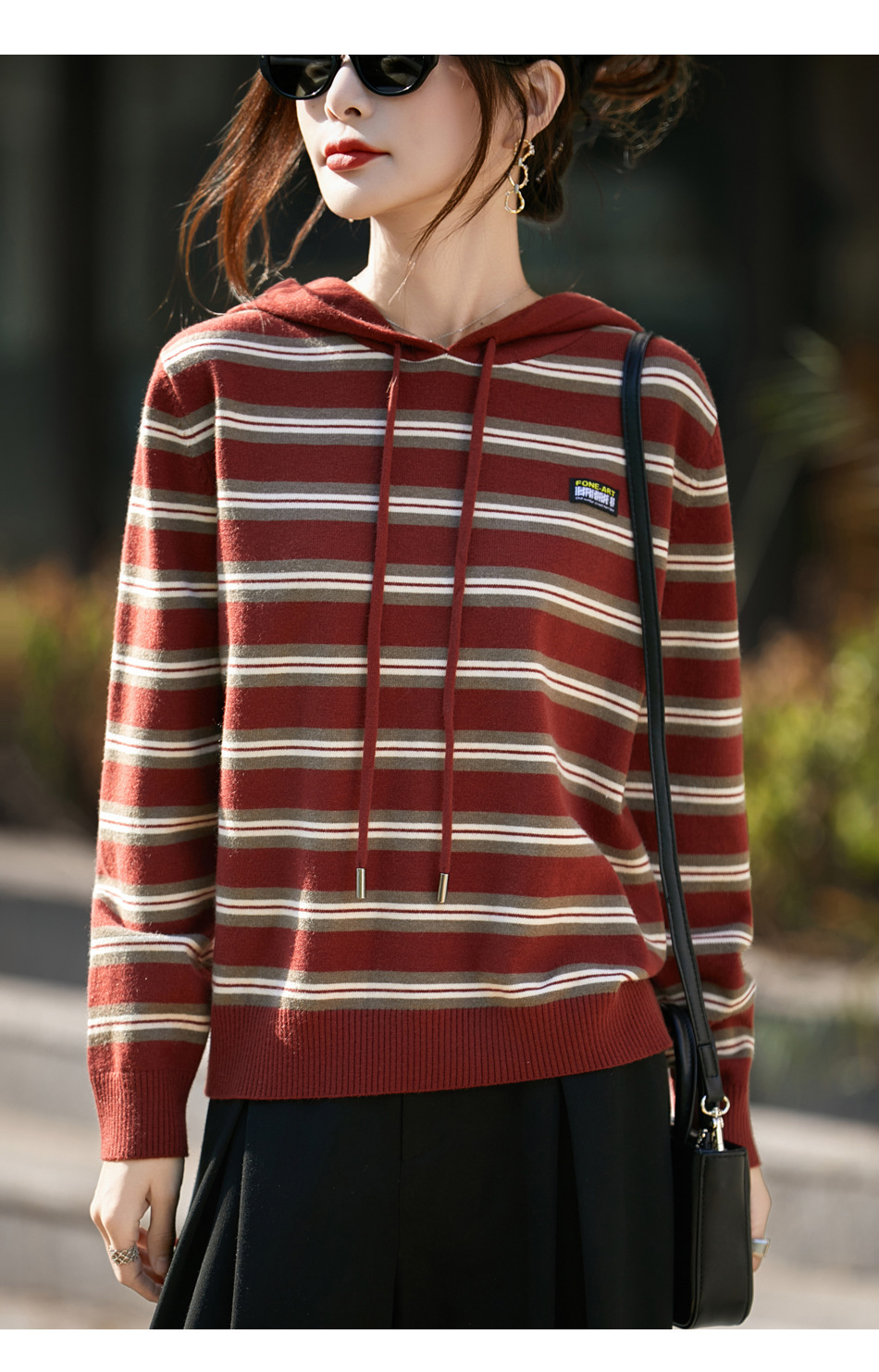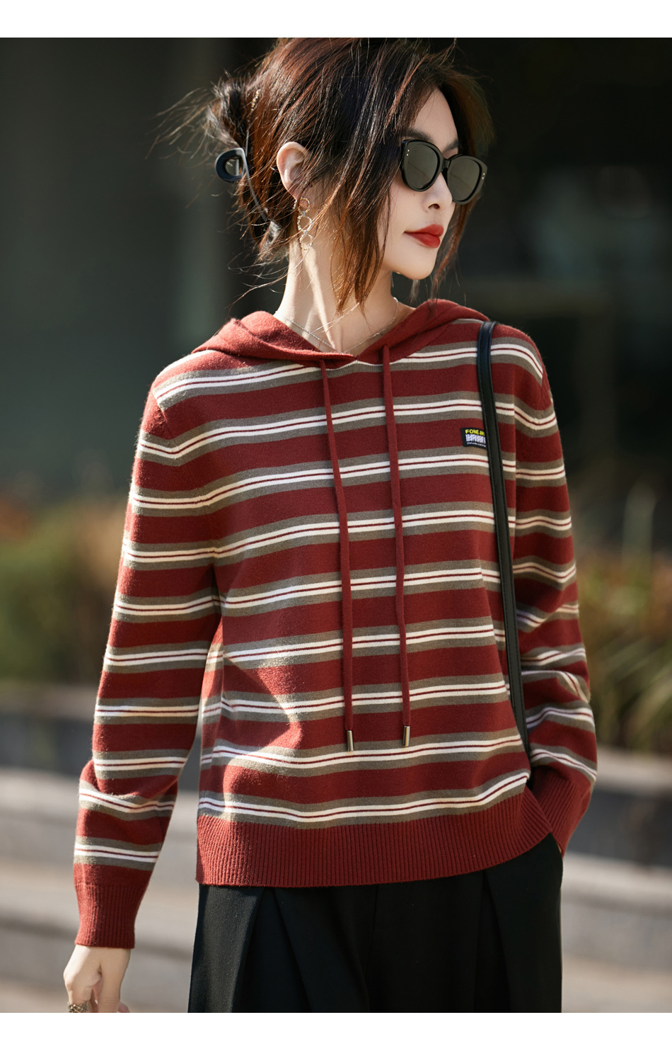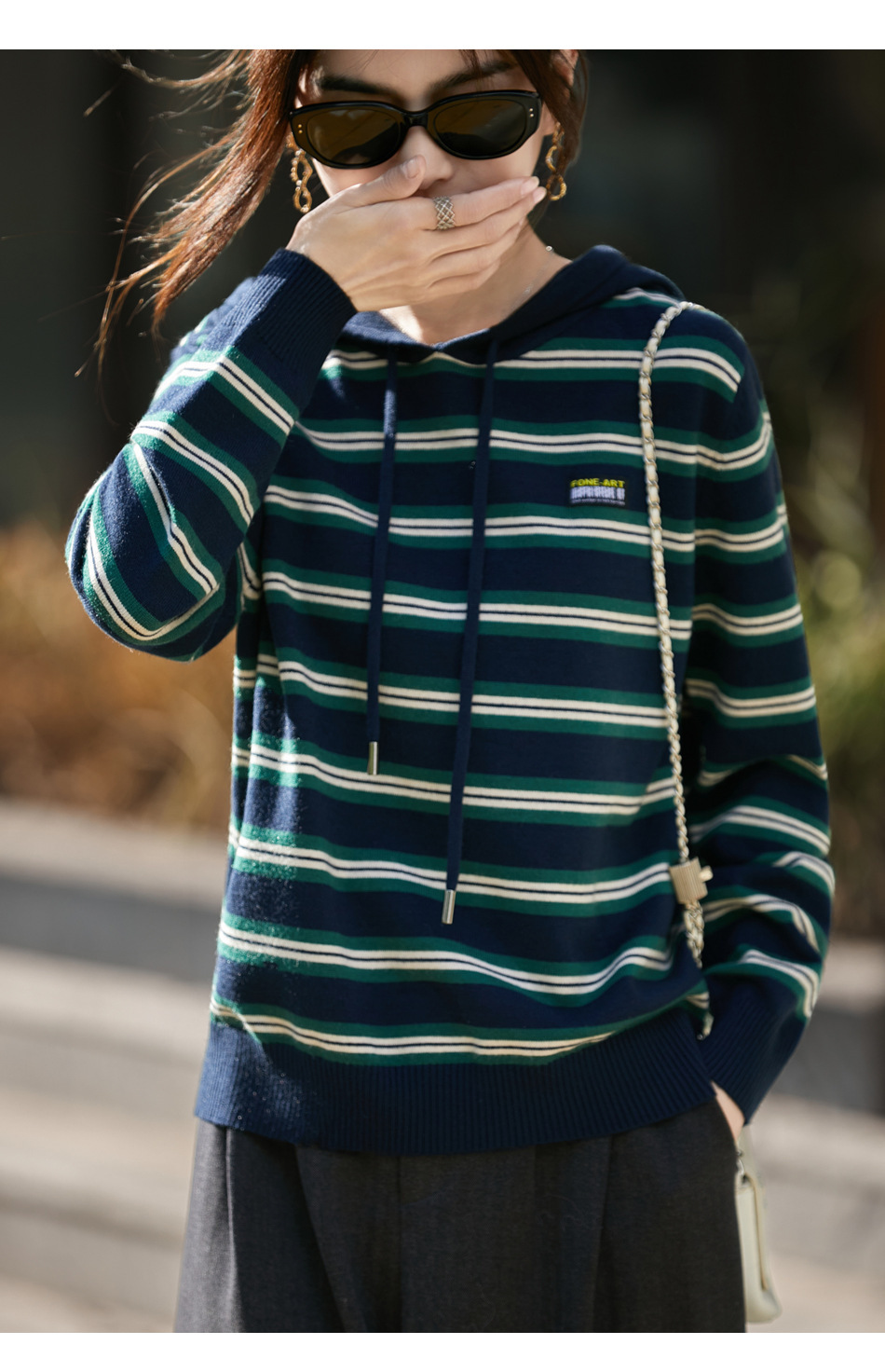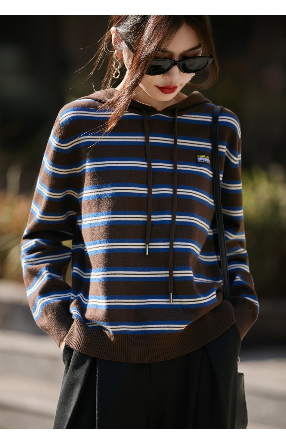条纹针织衫女内搭外穿都有范 秋冬新款时尚宽松显瘦减龄休闲连帽长袖上衣新款新品女装