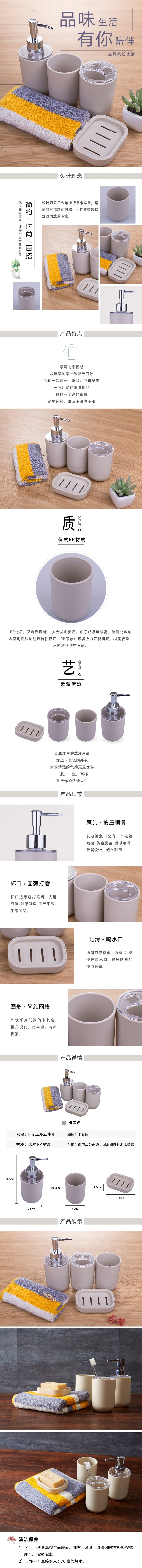 【多样屋专柜】Fin系列卫浴礼盒卡其色5件套外出出差浴室便携漱口杯肥皂盒