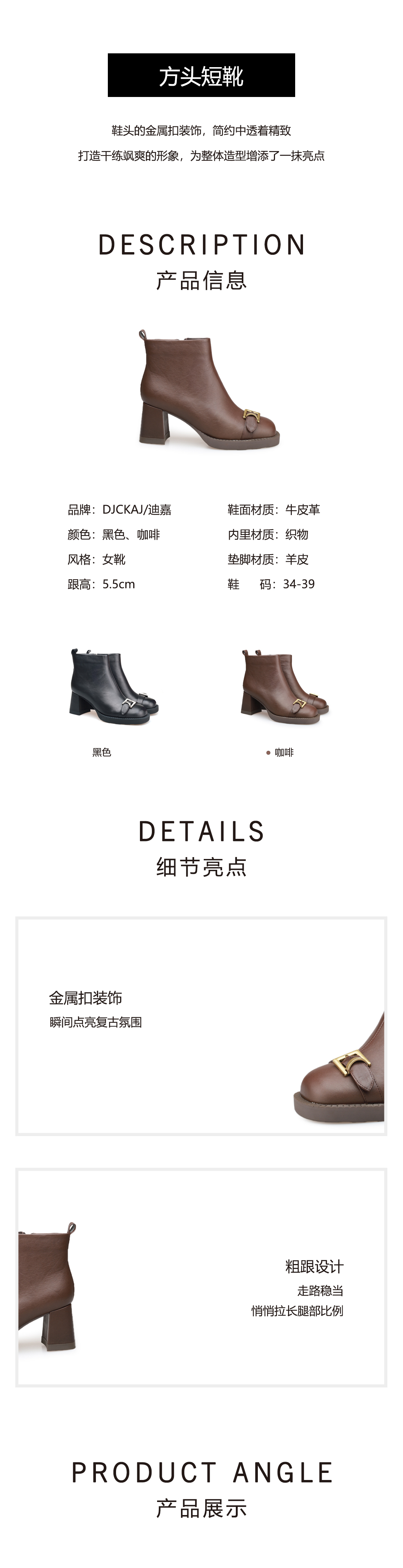 豪麟名鞋迪嘉女鞋牛皮革短靴DJYYA52WN005咖啡色