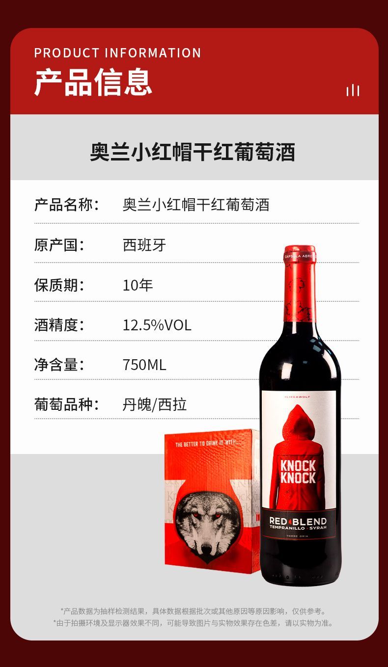 奥兰小红帽干红葡萄酒 西班牙原装进口 整箱750ml*6瓶包邮
