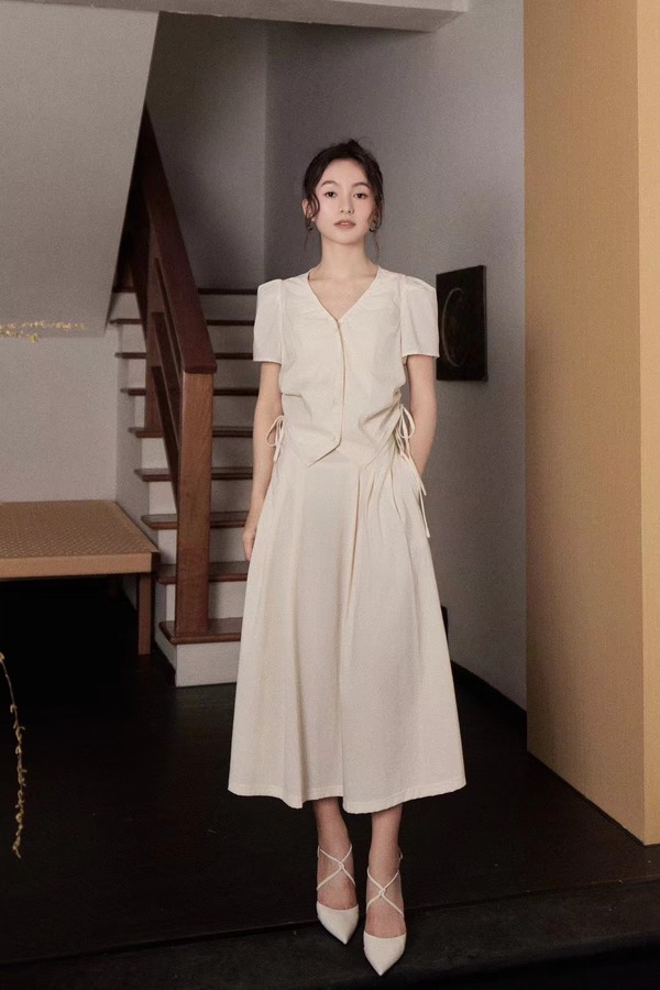 Le Malene 简约气质抽绳上衣半裙套装 20365