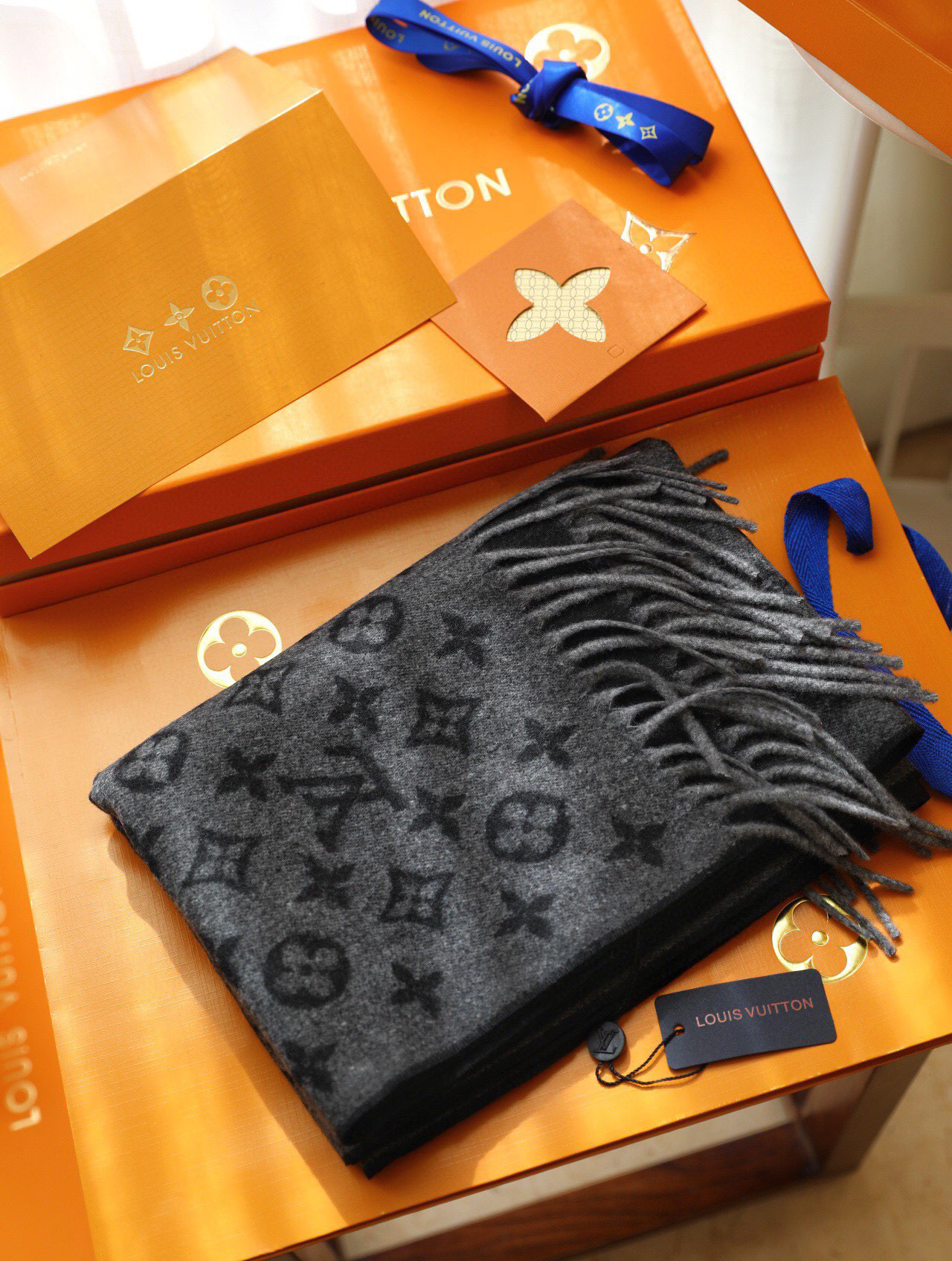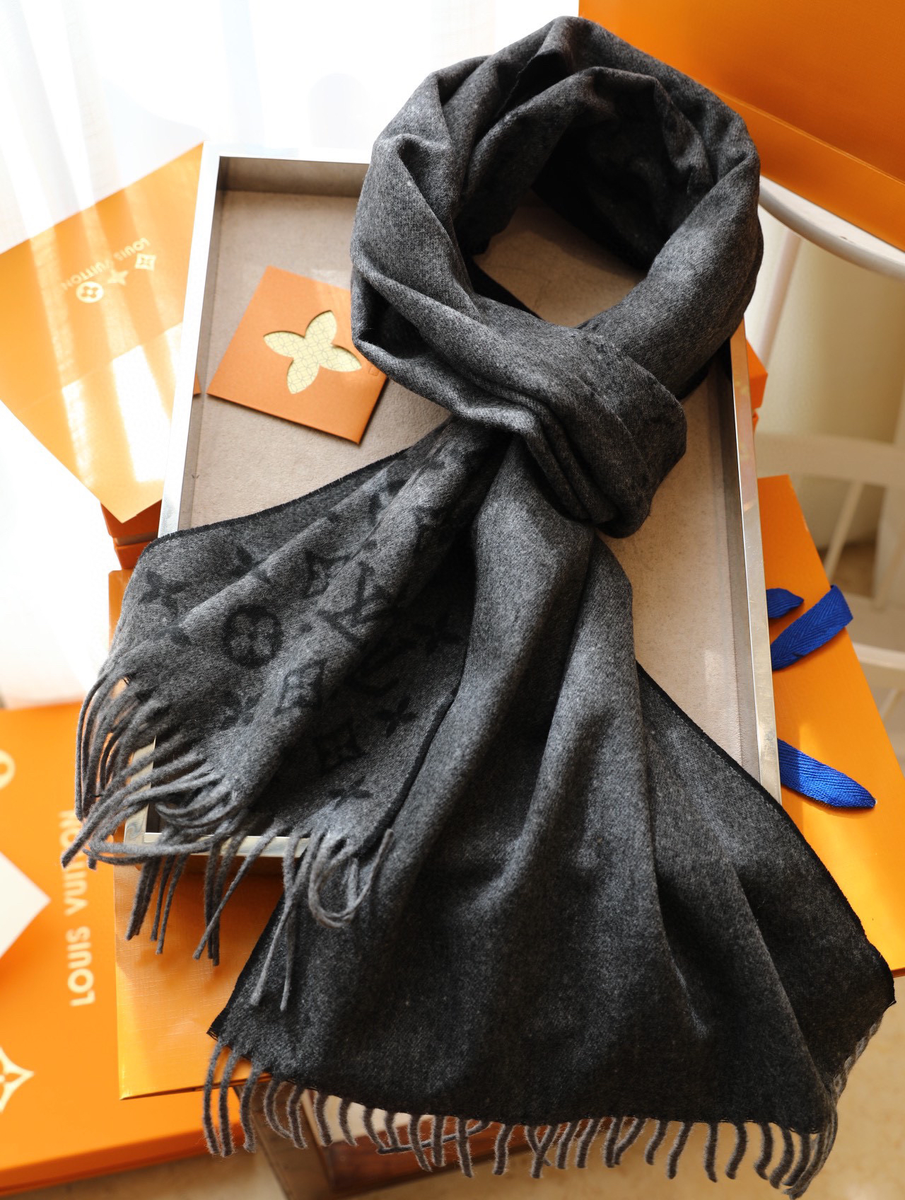 Lv针织围巾 My Monogram Eclipse 【渐变撞色边缘】