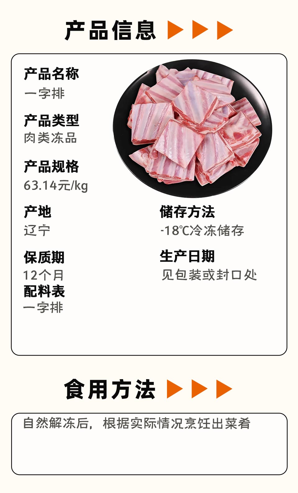 一字排 1kg/块 63.14元/kg 称重退补差价