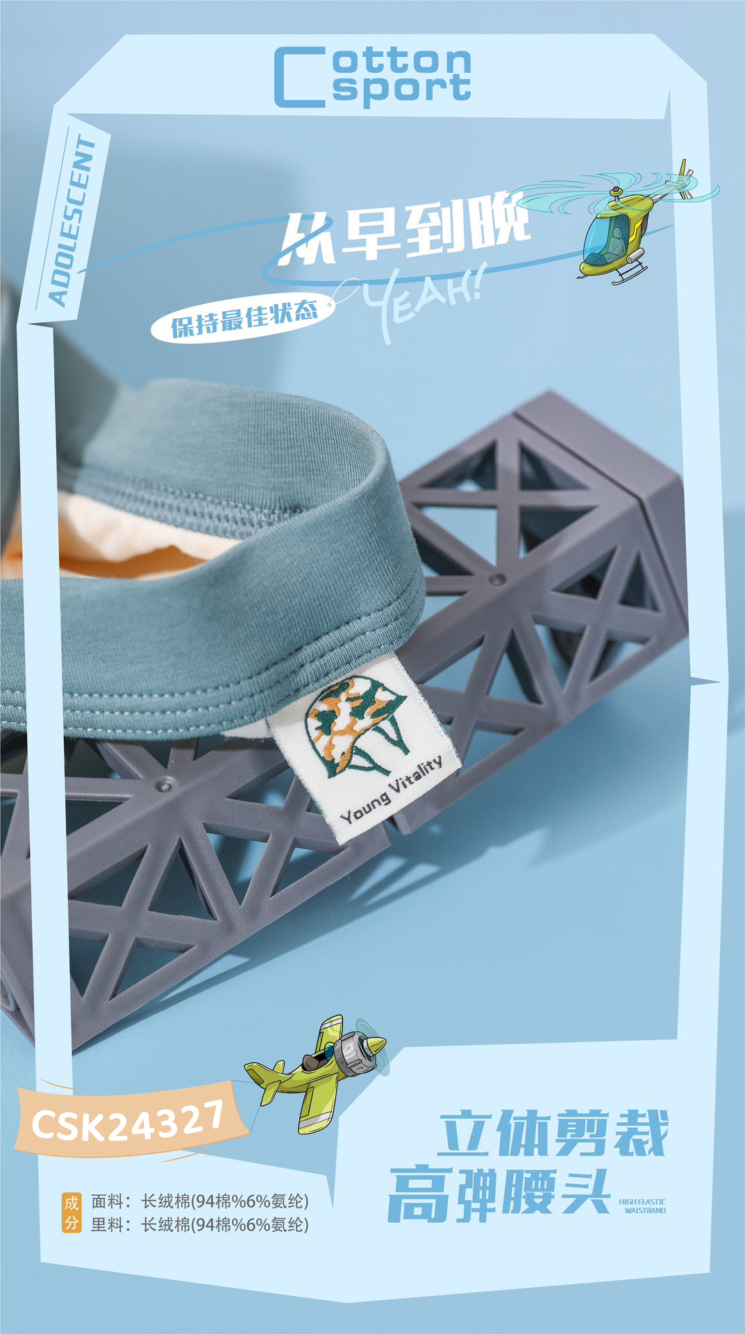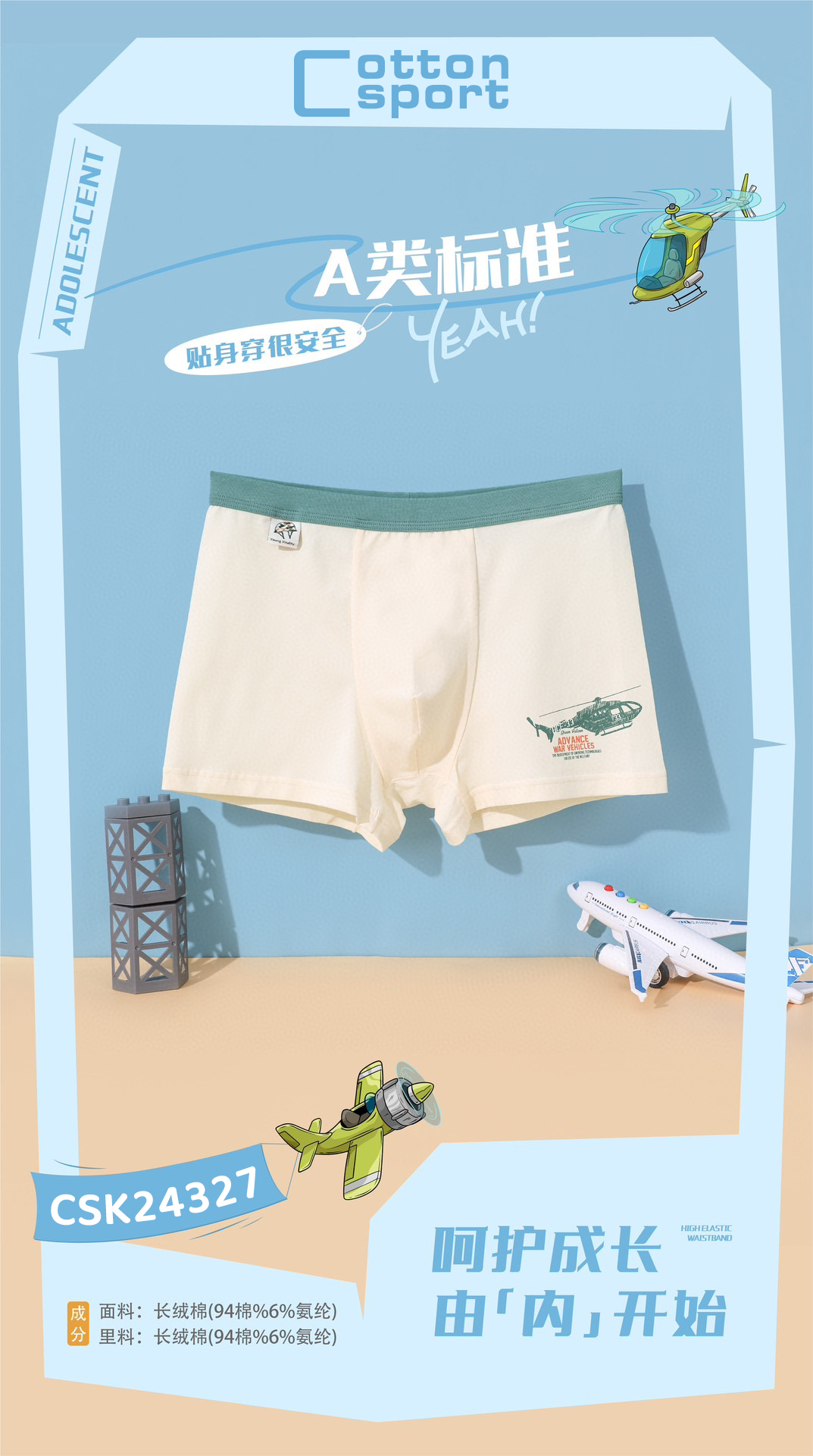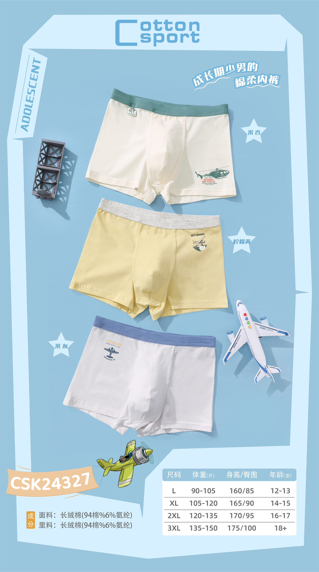 【3条装】青少年棉内裤平角裤男底裤【CSK24327】