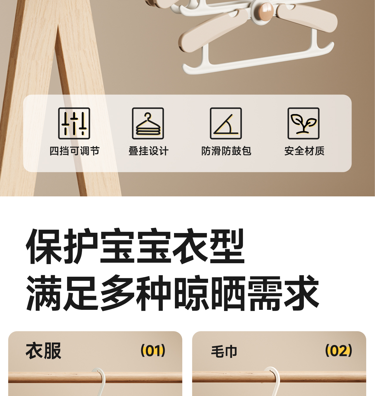 【冬日暖拥】曼龙婴儿衣架儿童可伸缩衣架宝宝可用新生儿多功能防滑晾衣架