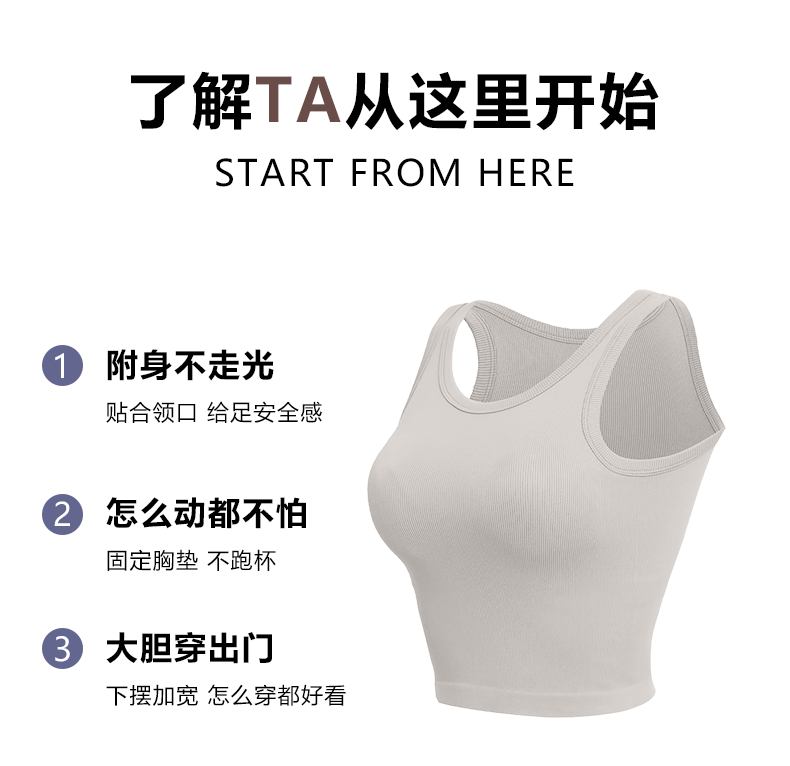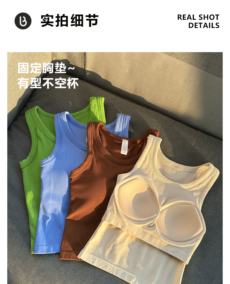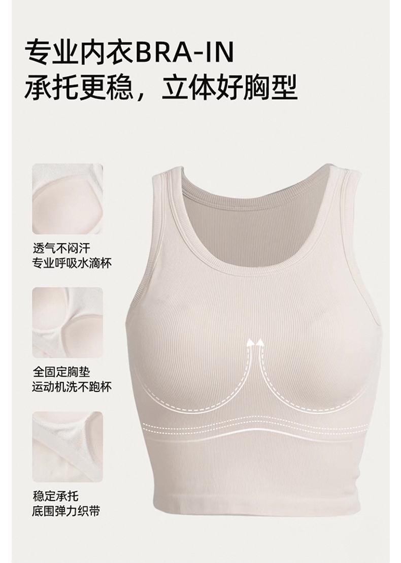 beemen一体杯运动背心 无缝一体织工艺 轻薄柔软 舒适不勒 瑜伽健身普拉提运动背心