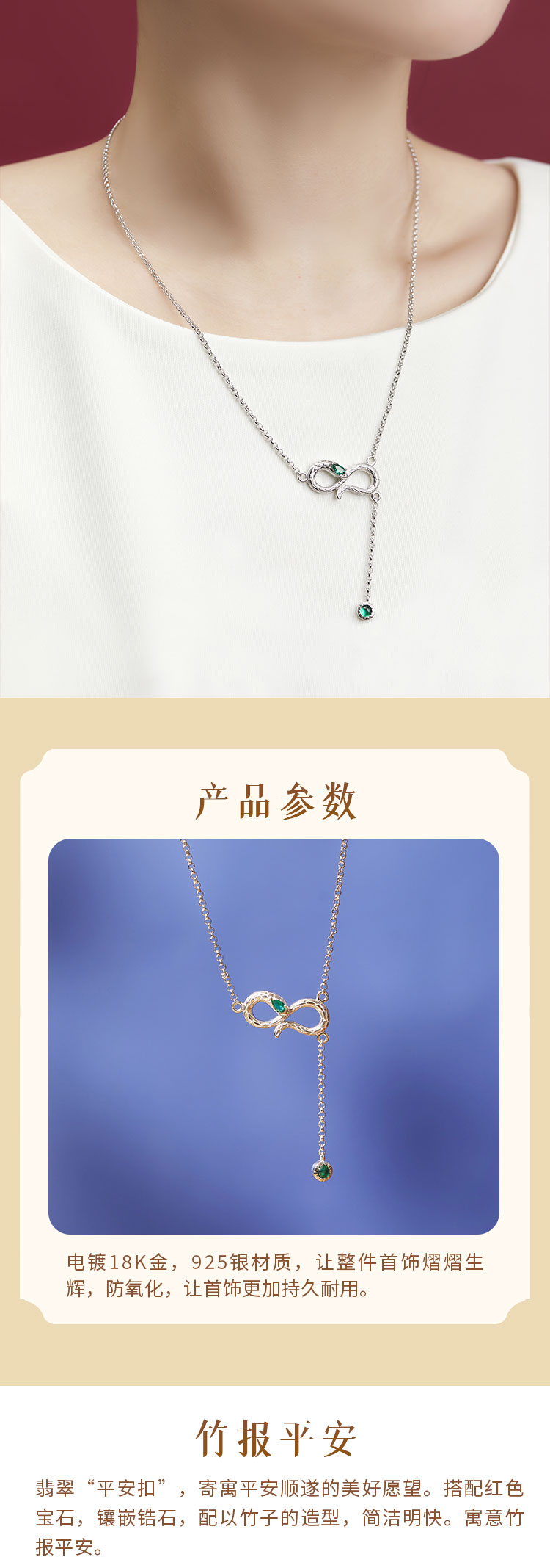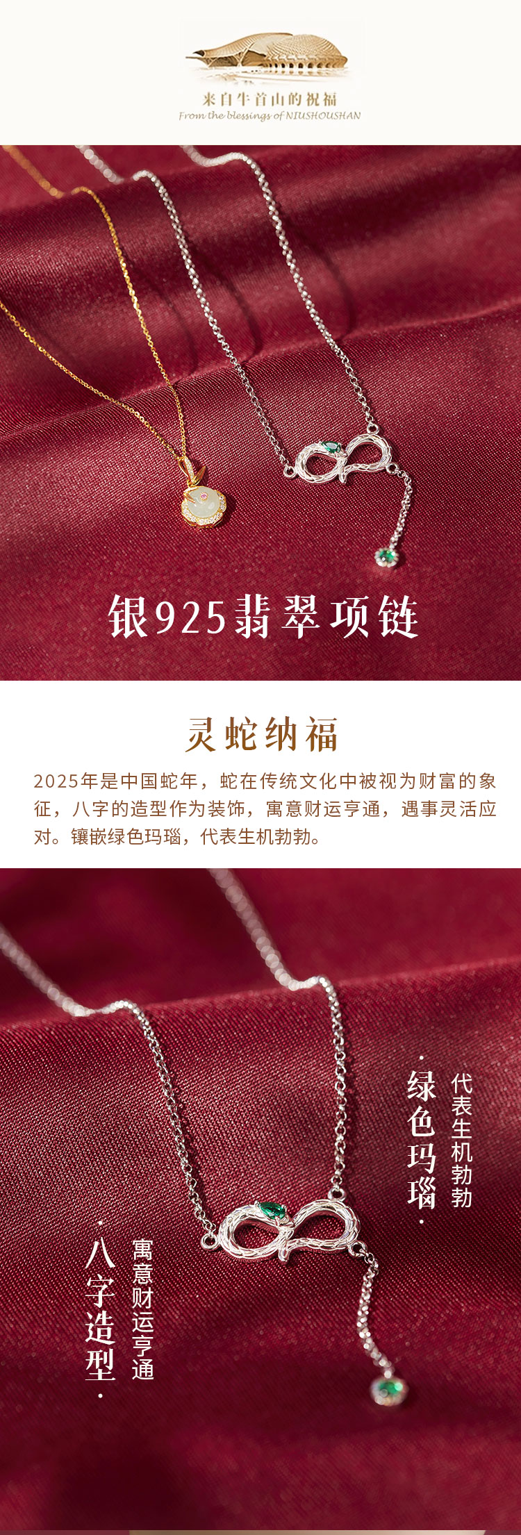 牛首山灵蛇纳福S925银项链玛瑙翡翠吊坠银饰小众气质锁骨链送女友